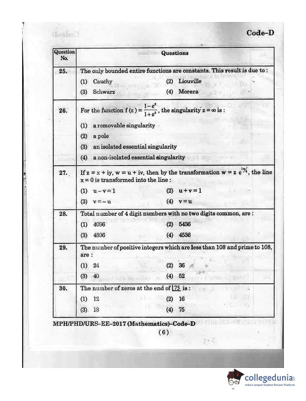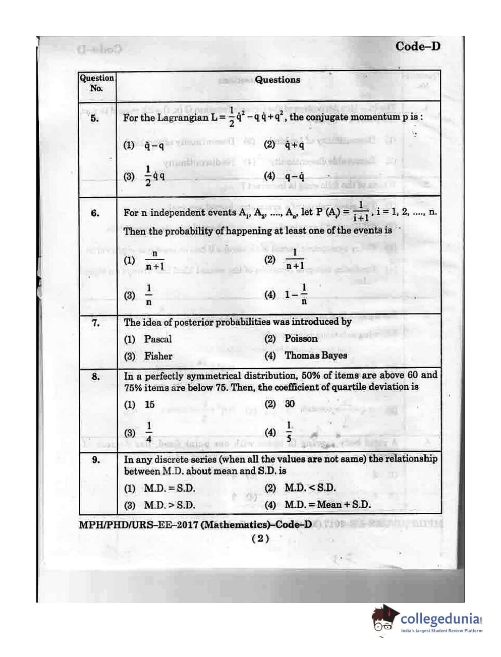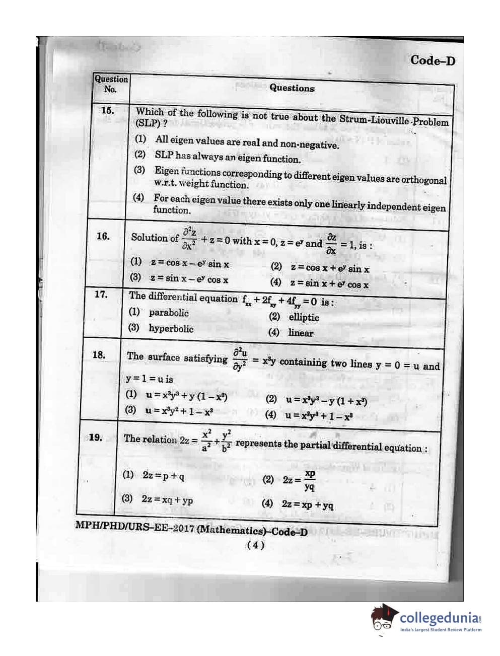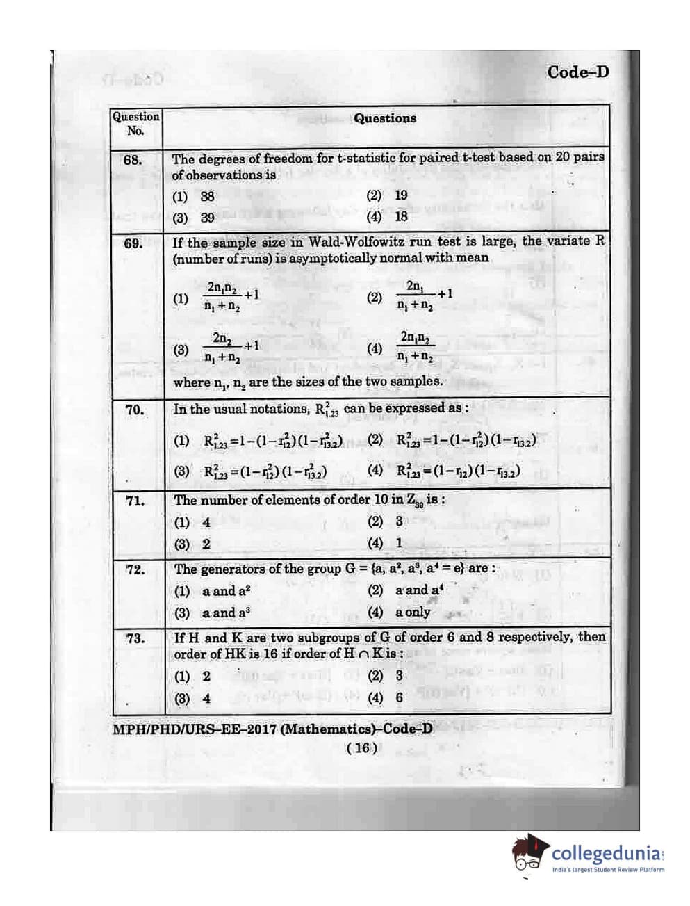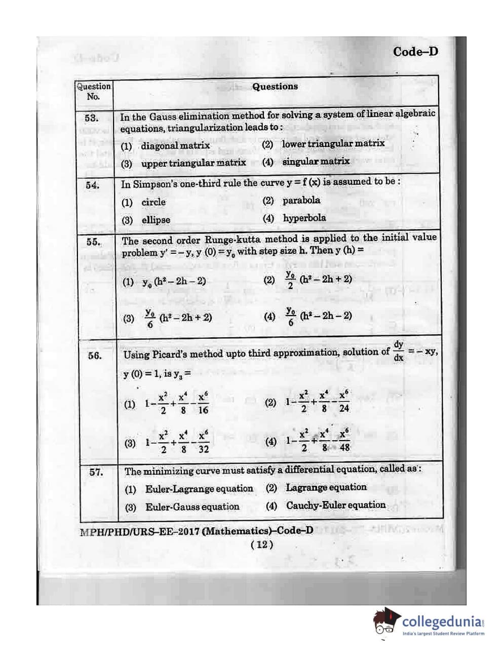 | MDUCEE 2016 Ph.D/URS/M.Phil (Mathematics) Set D Question Paper PDF | MDUCEE 2016 Ph.D/URS/M.Phil (Mathematics) Set D Answer Key PDF |