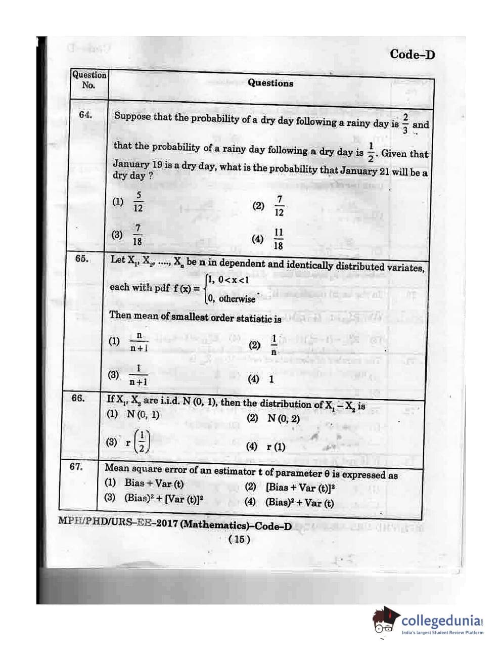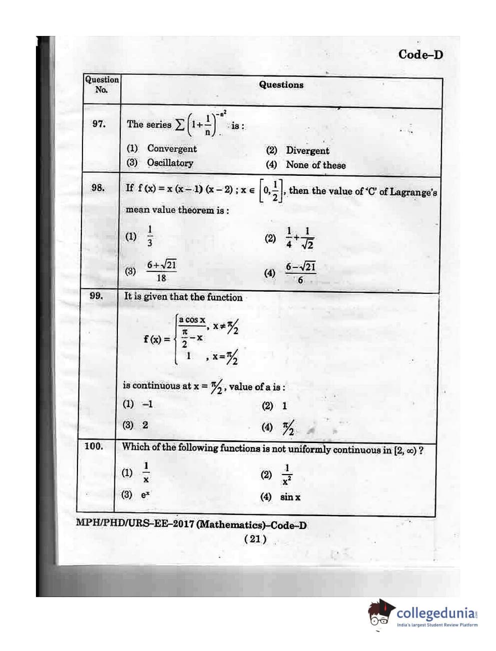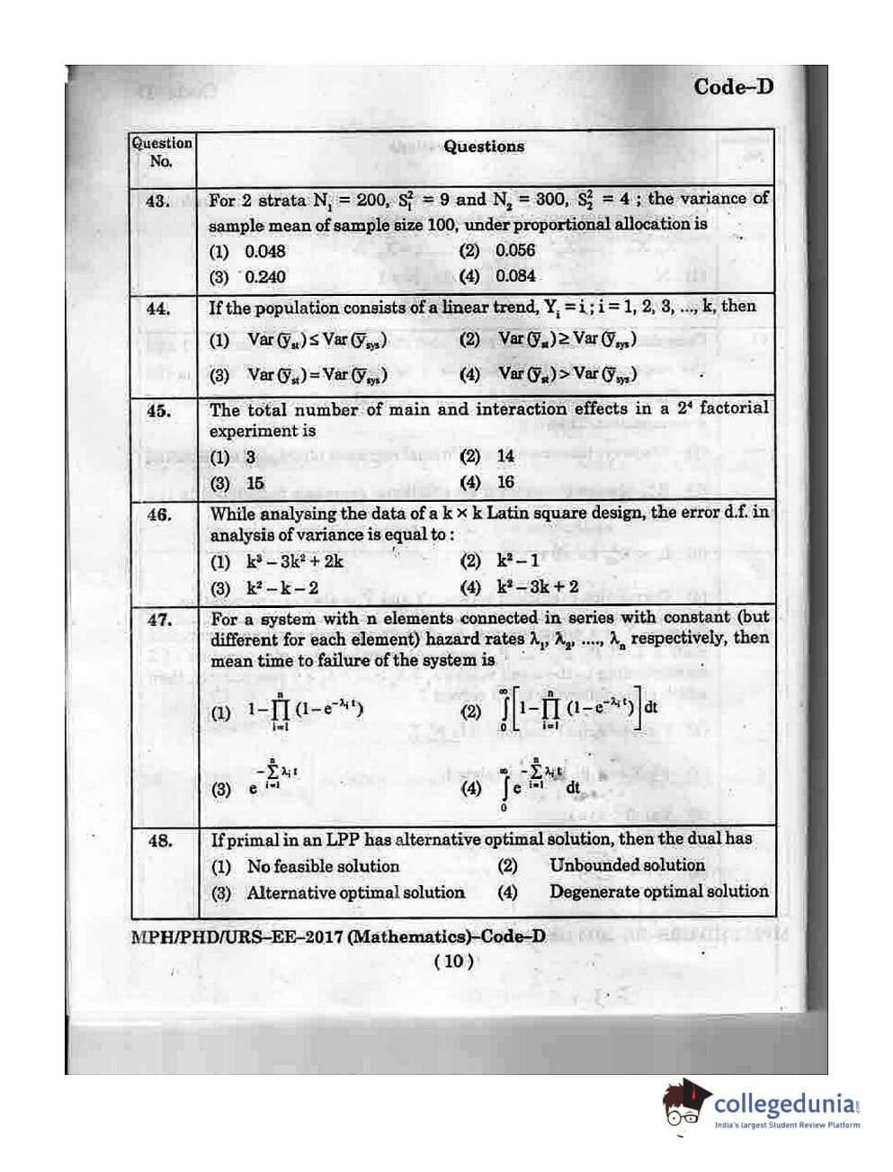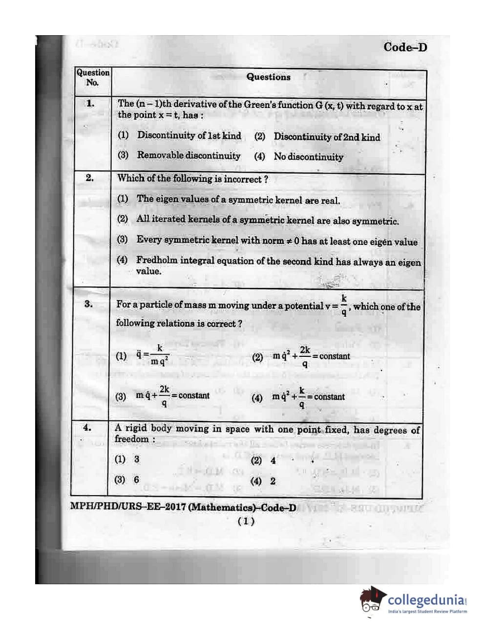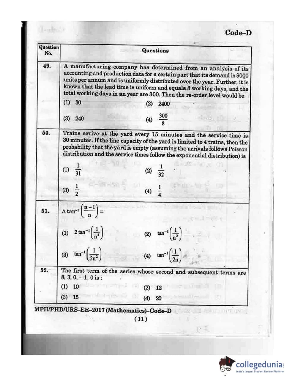 | MDUCEE 2016 Ph.D/URS/M.Phil (Mathematics) Set D Question Paper PDF | MDUCEE 2016 Ph.D/URS/M.Phil (Mathematics) Set D Answer Key PDF |