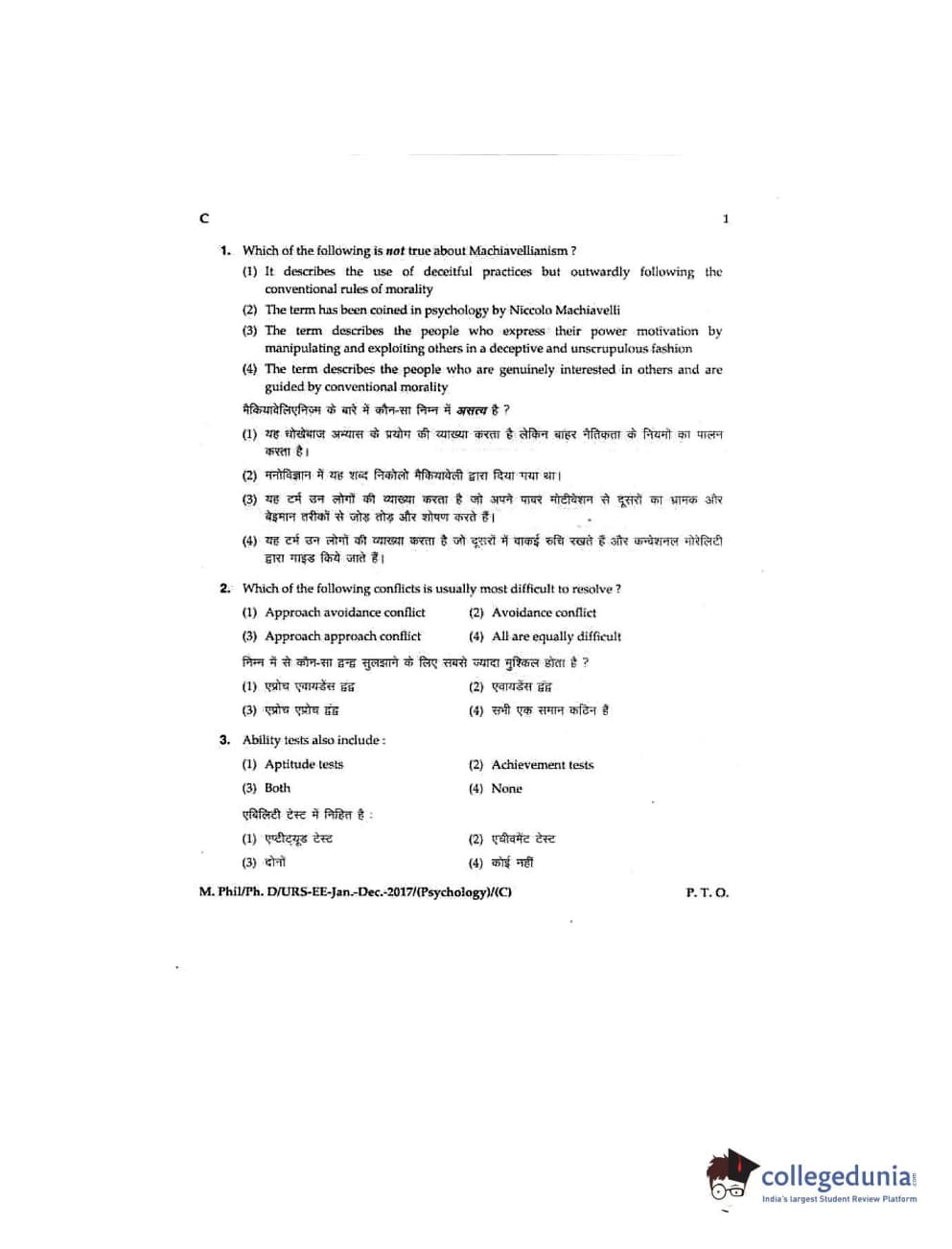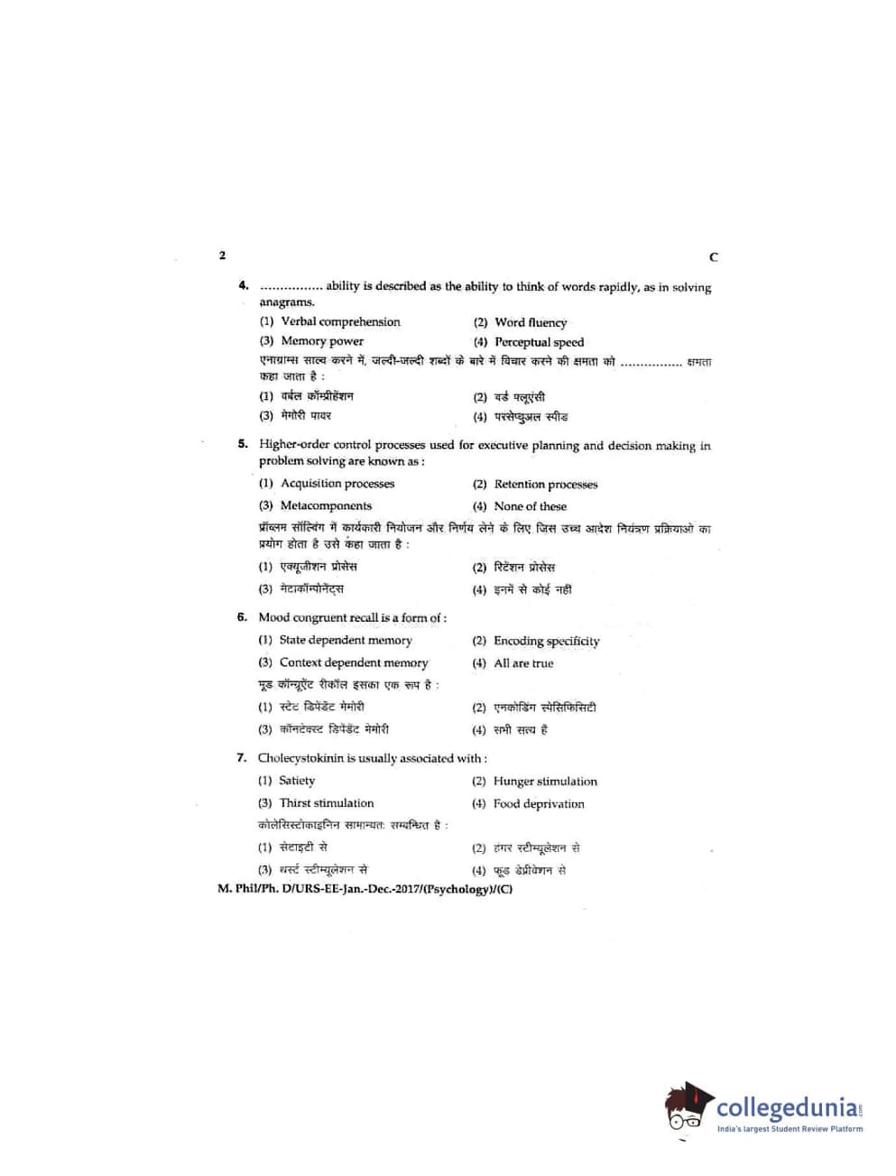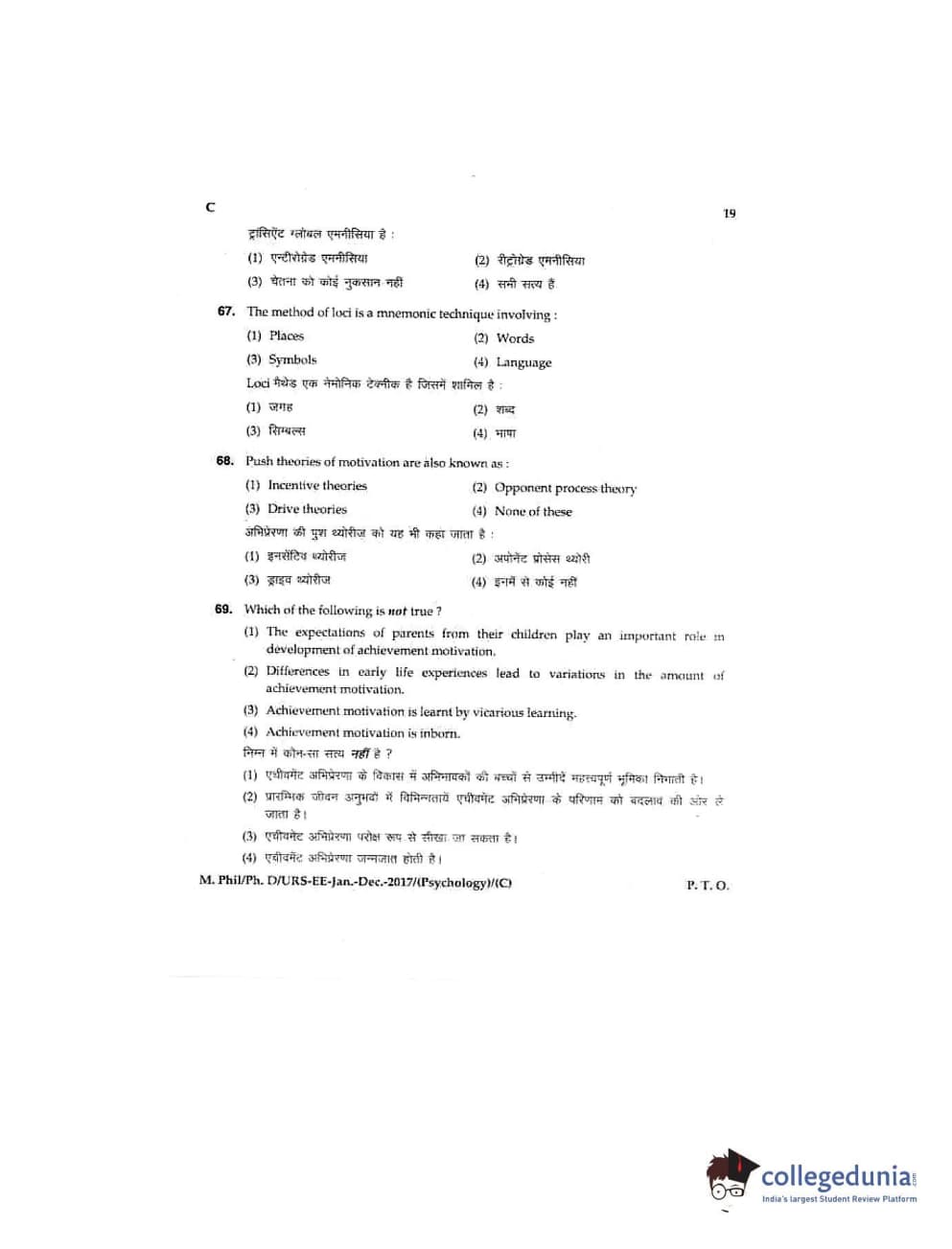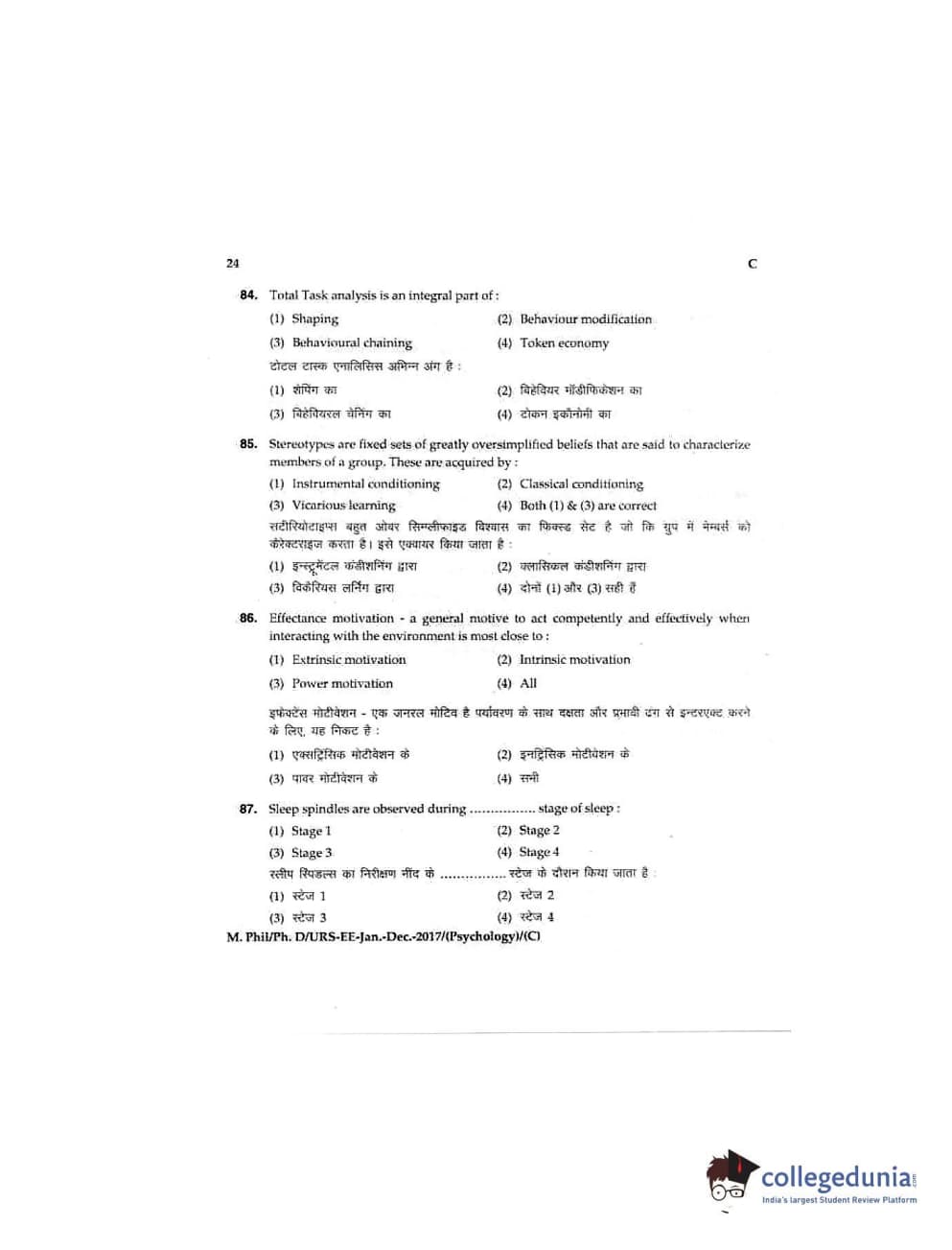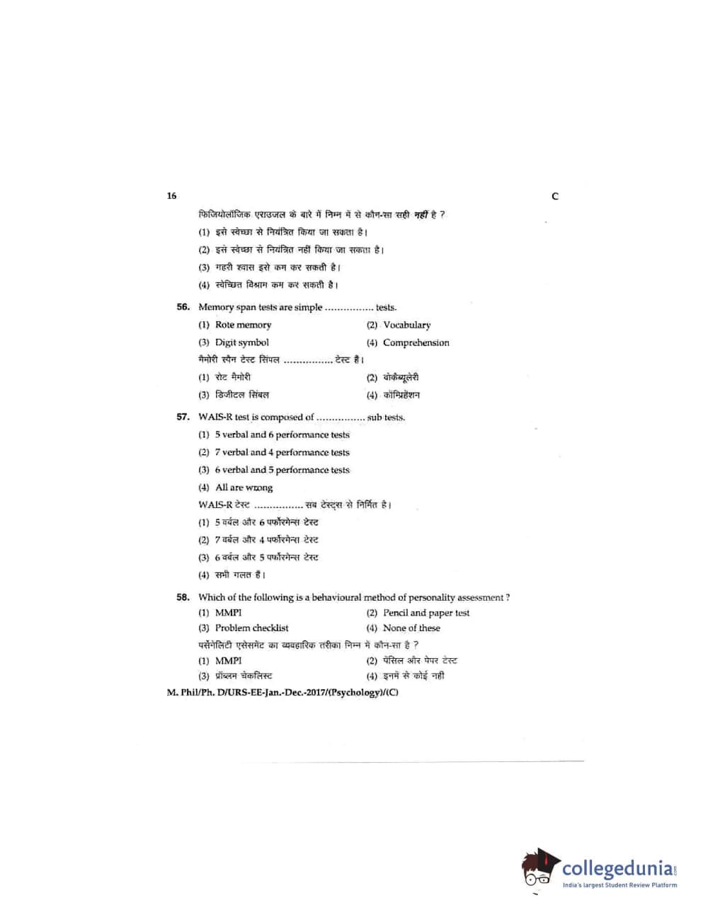 MDUCEE 2016 Ph.D/URS/M.Phil (Psychology) Set C Question Paper with Answer Key PDFs