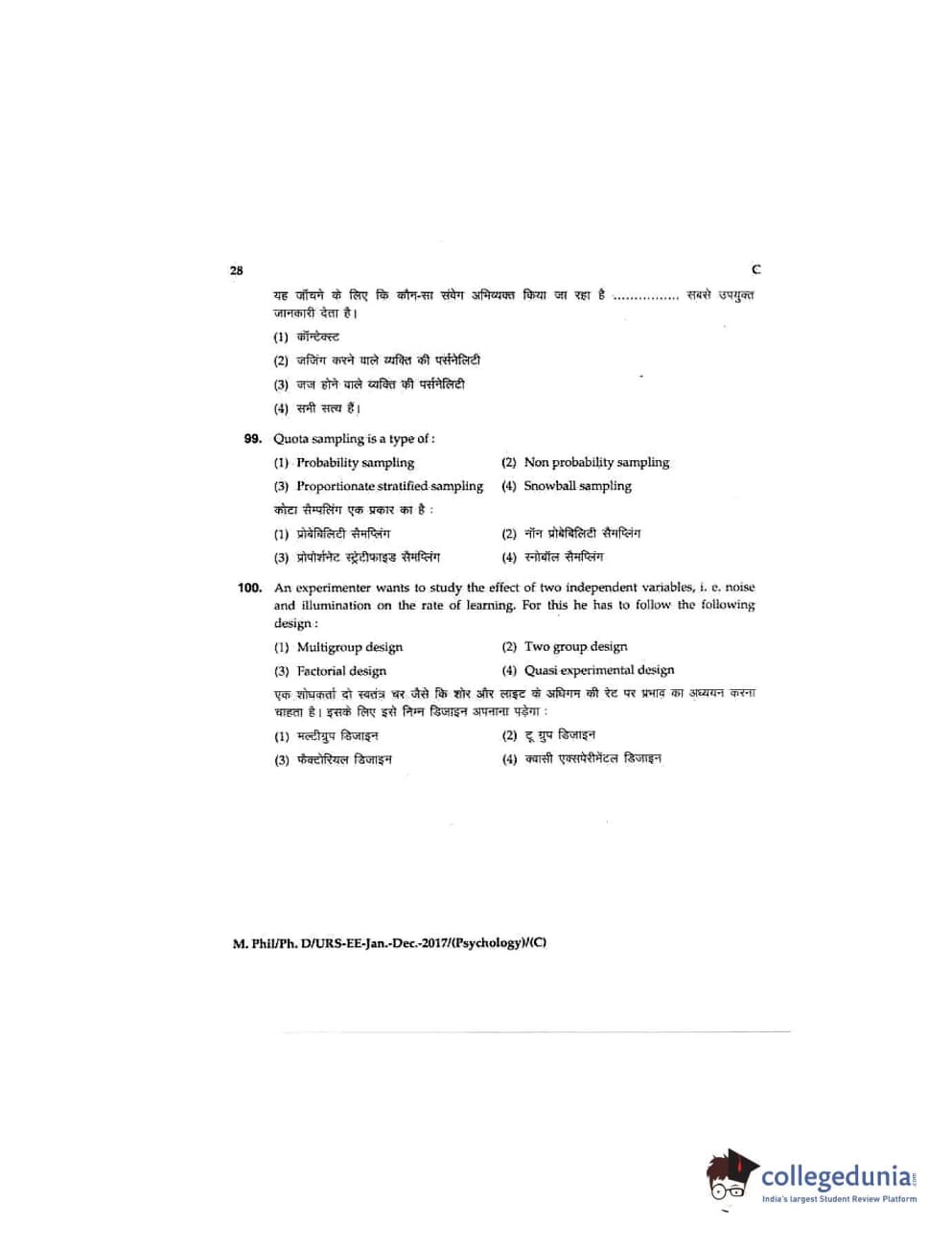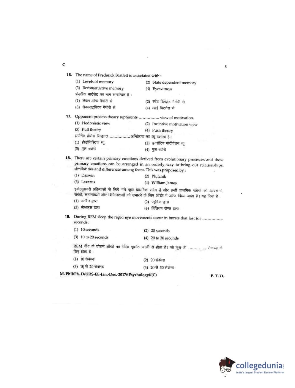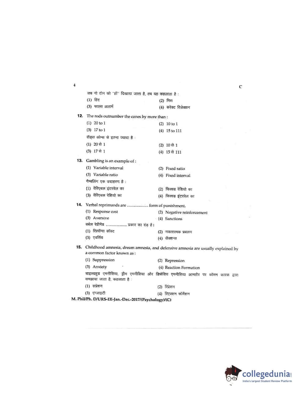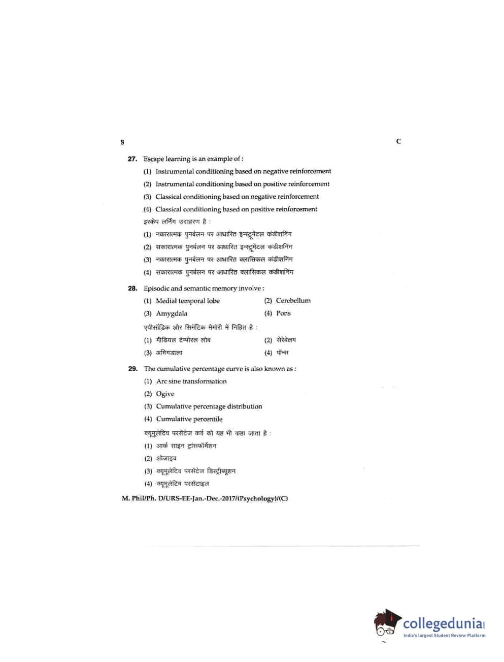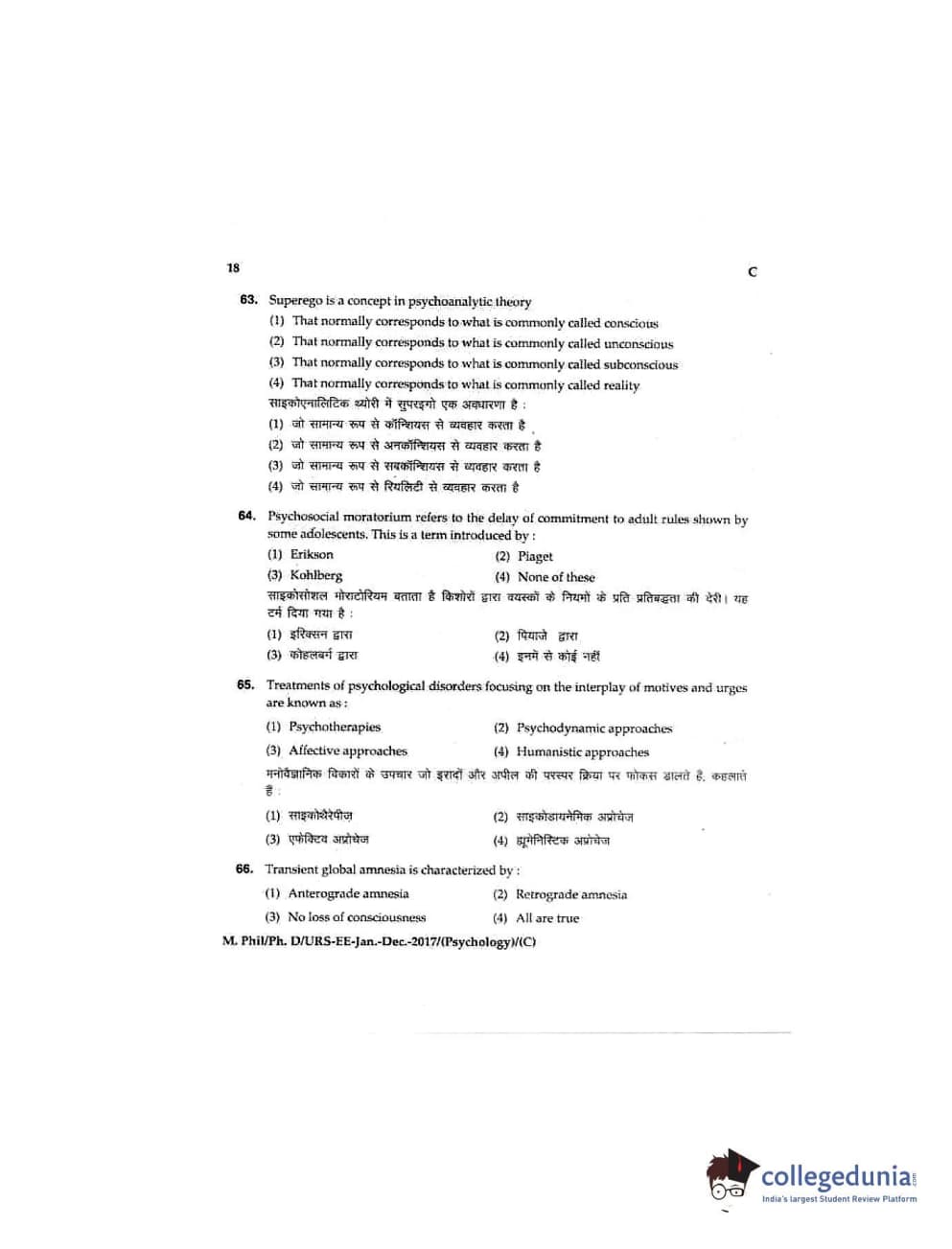 MDUCEE 2016 Ph.D/URS/M.Phil (Psychology) Set C Question Paper with Answer Key PDFs