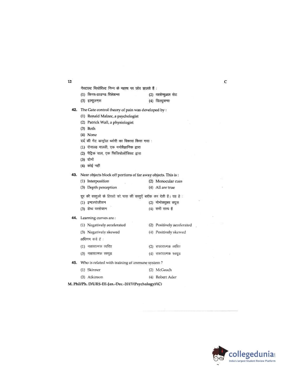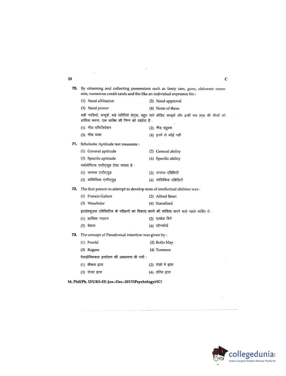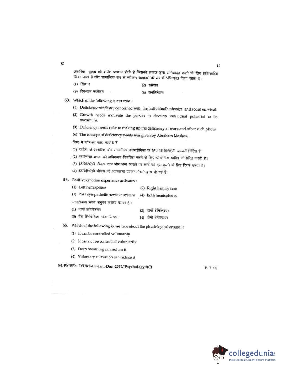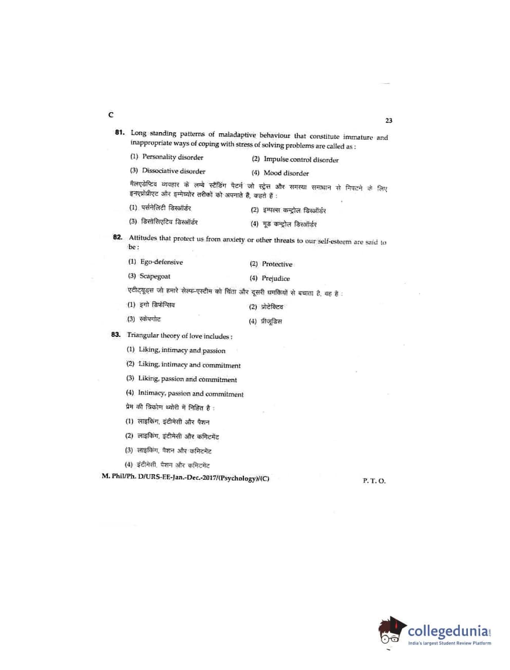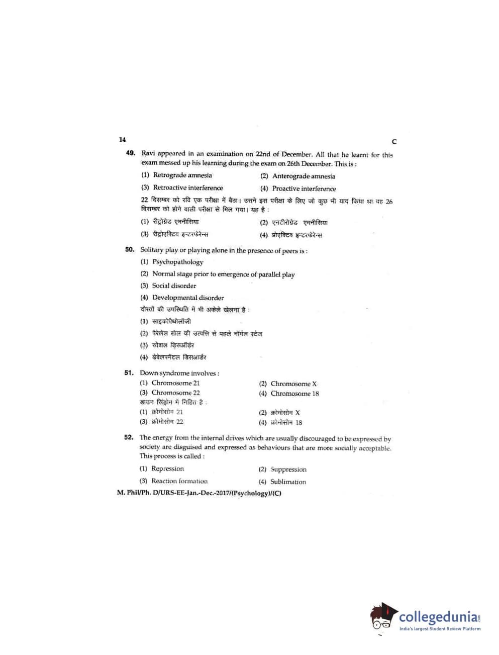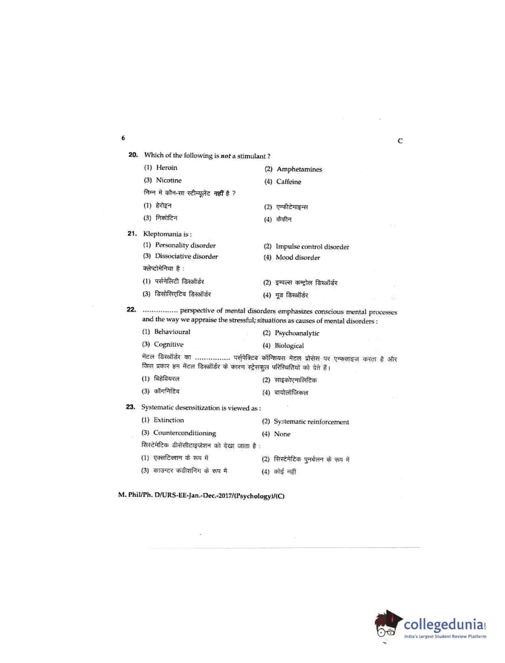 MDUCEE 2016 Ph.D/URS/M.Phil (Psychology) Set C Question Paper with Answer Key PDFs