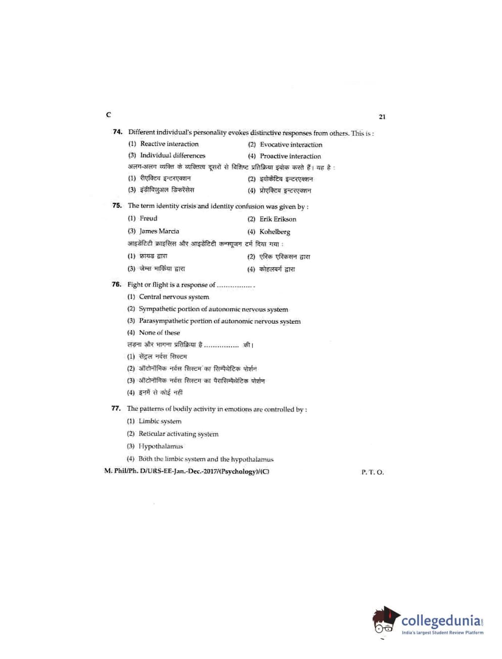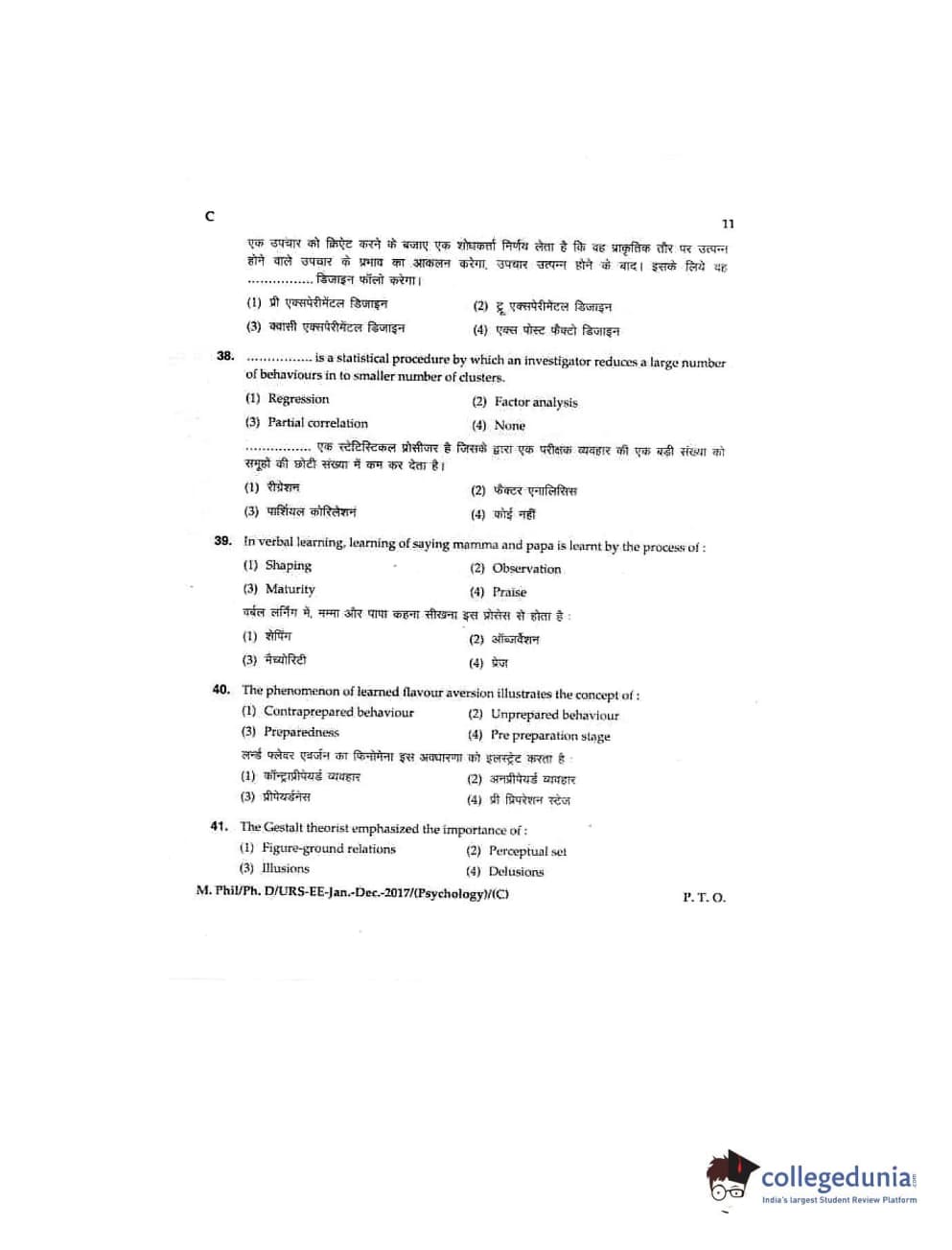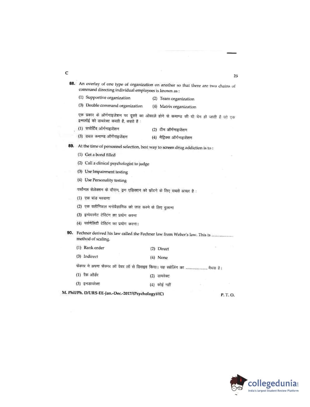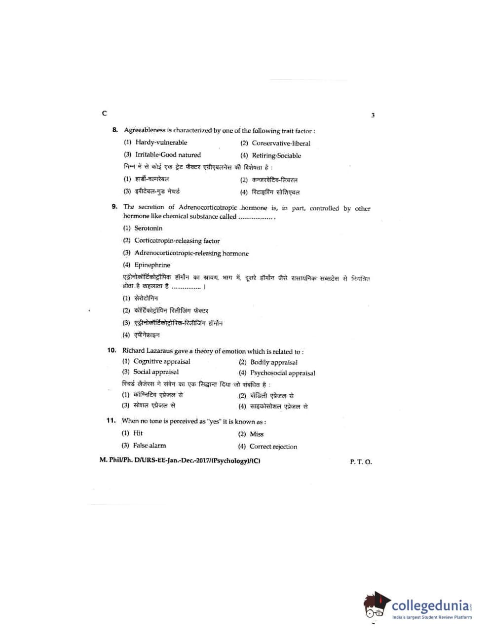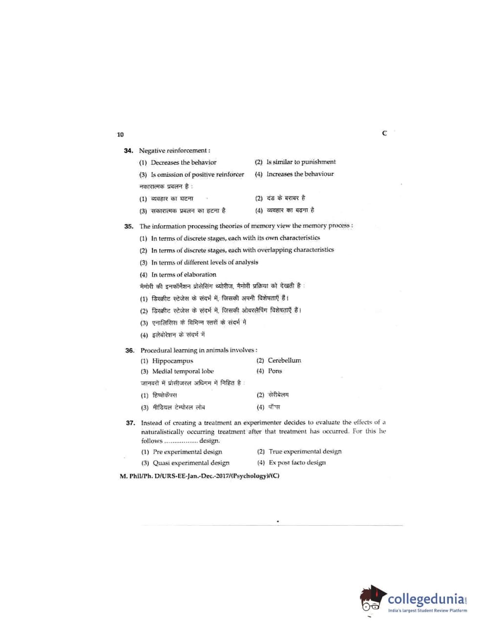 MDUCEE 2016 Ph.D/URS/M.Phil (Psychology) Set C Question Paper with Answer Key PDFs