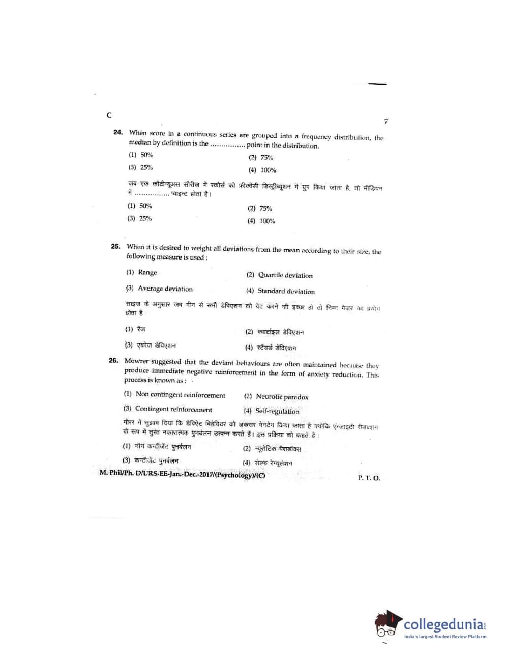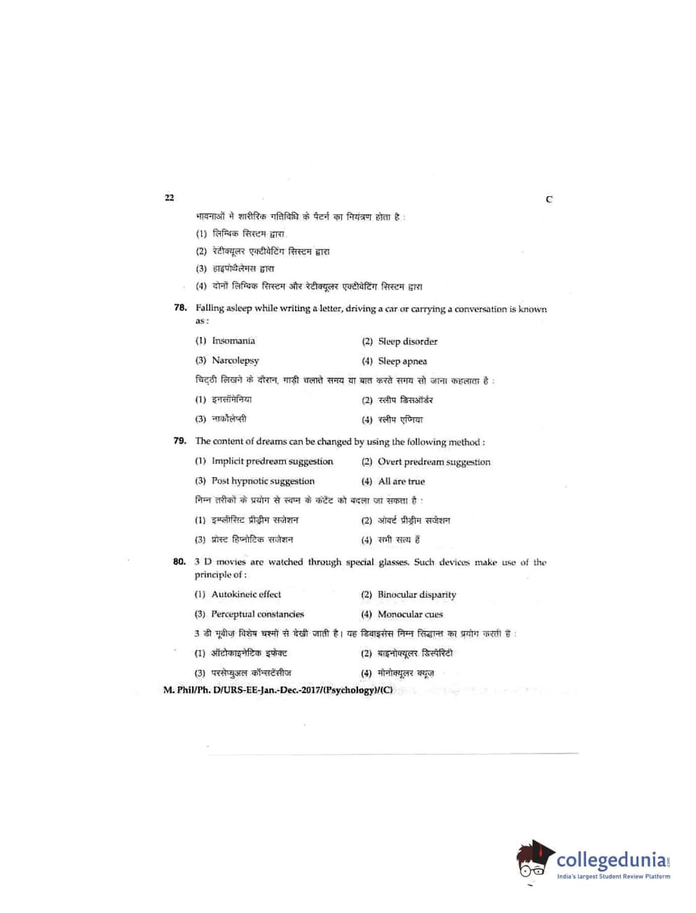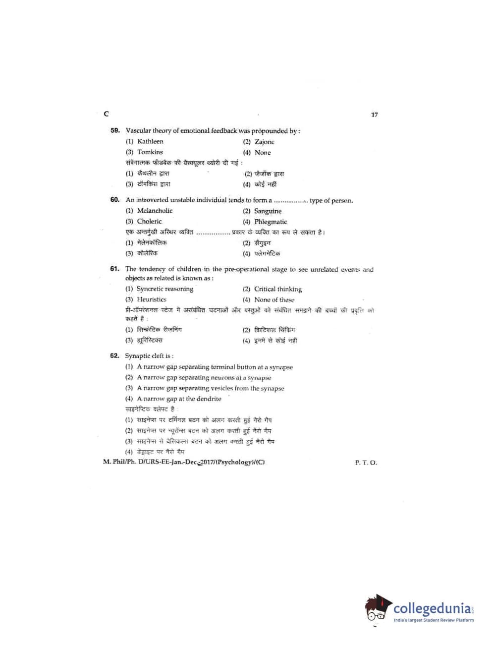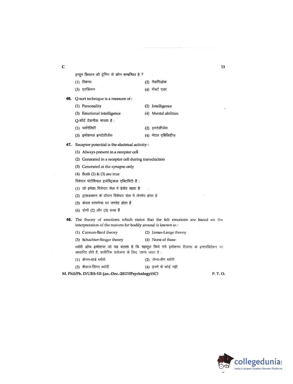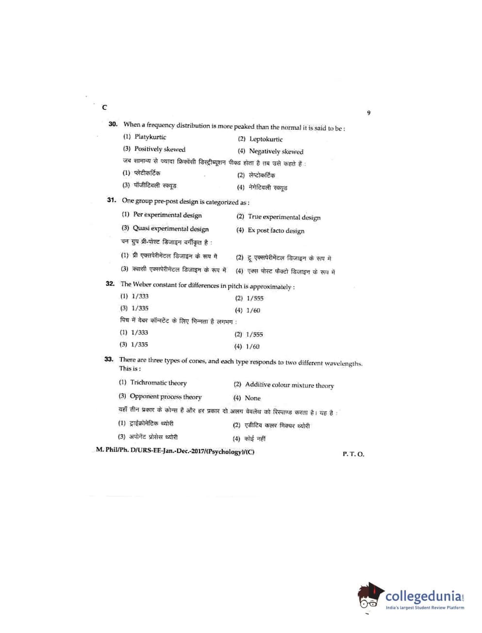MDUCEE 2016 Ph.D/URS/M.Phil (Psychology) Set C Question Paper with Answer Key PDFs