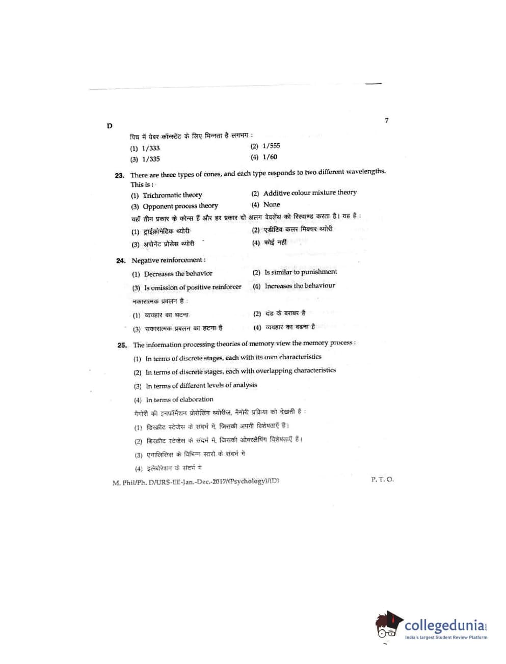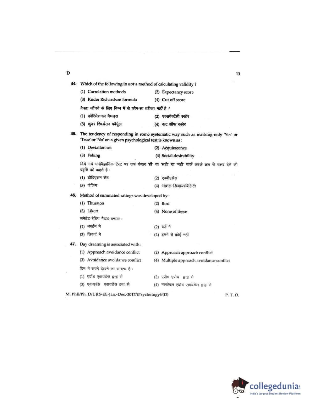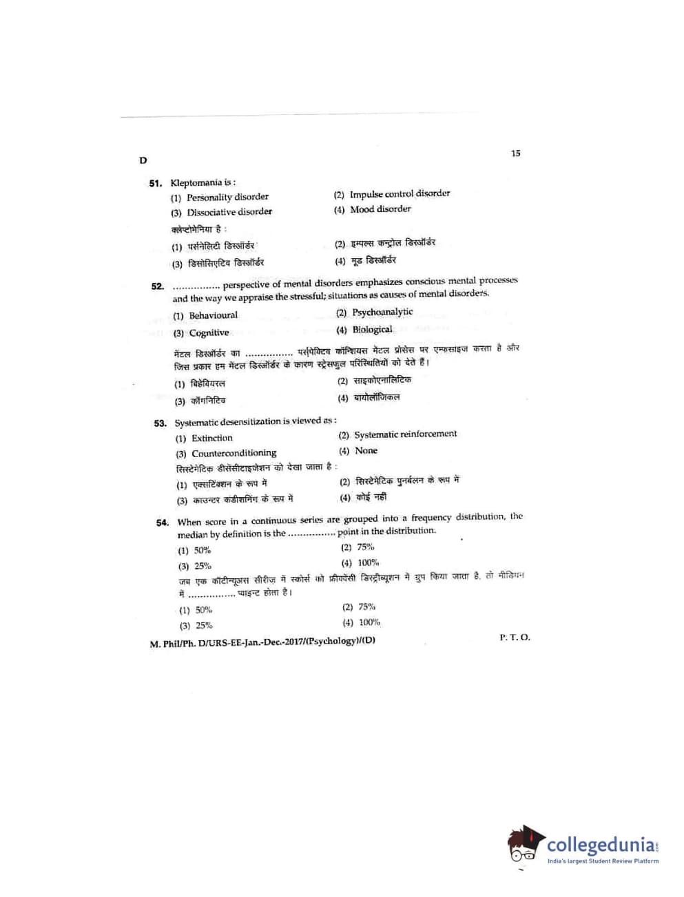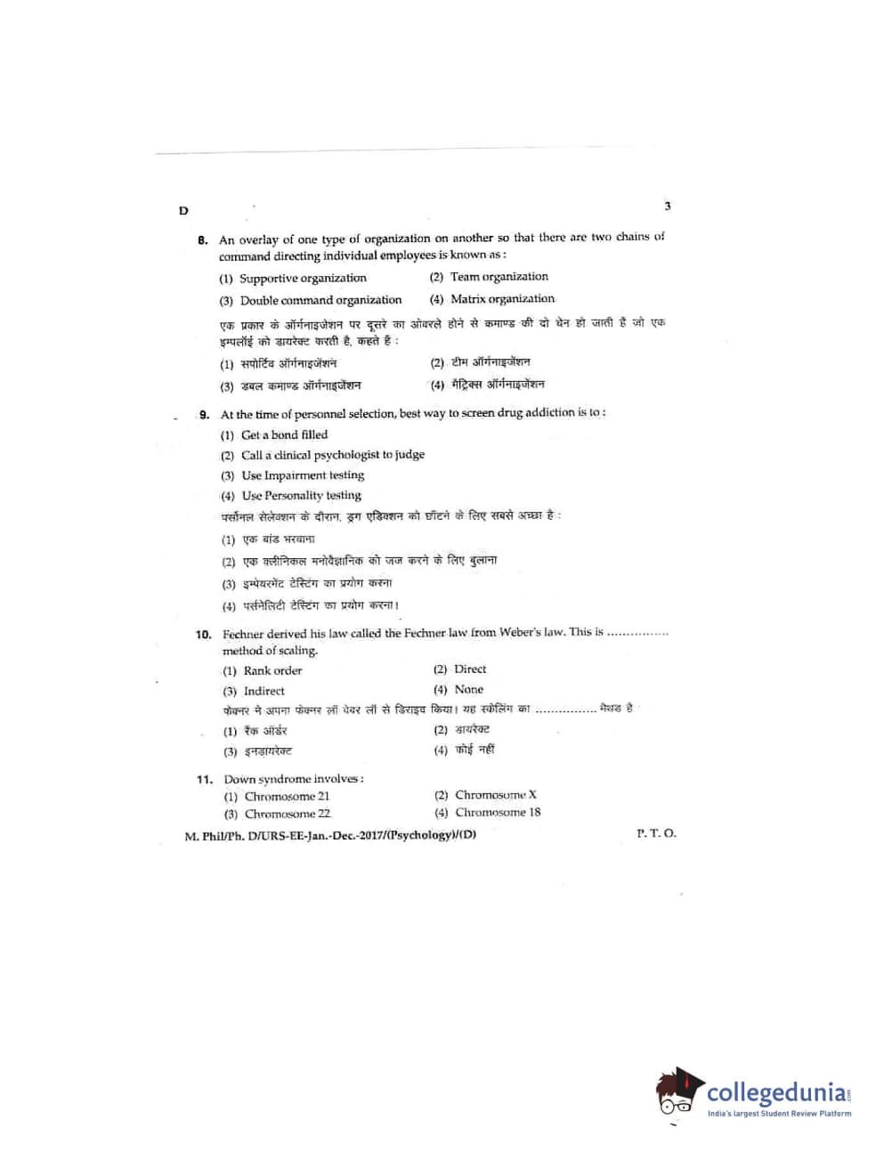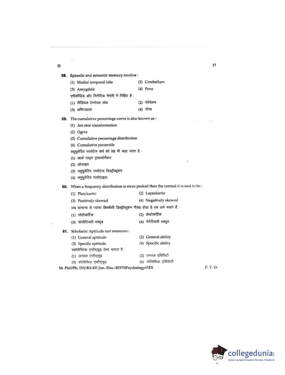 MDUCEE 2016 Ph.D/URS/M.Phil (Psychology) Set D Question Paper with Answer Key PDFs