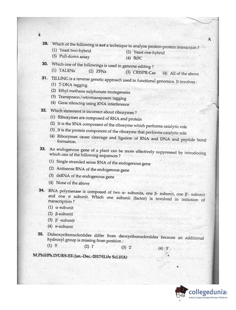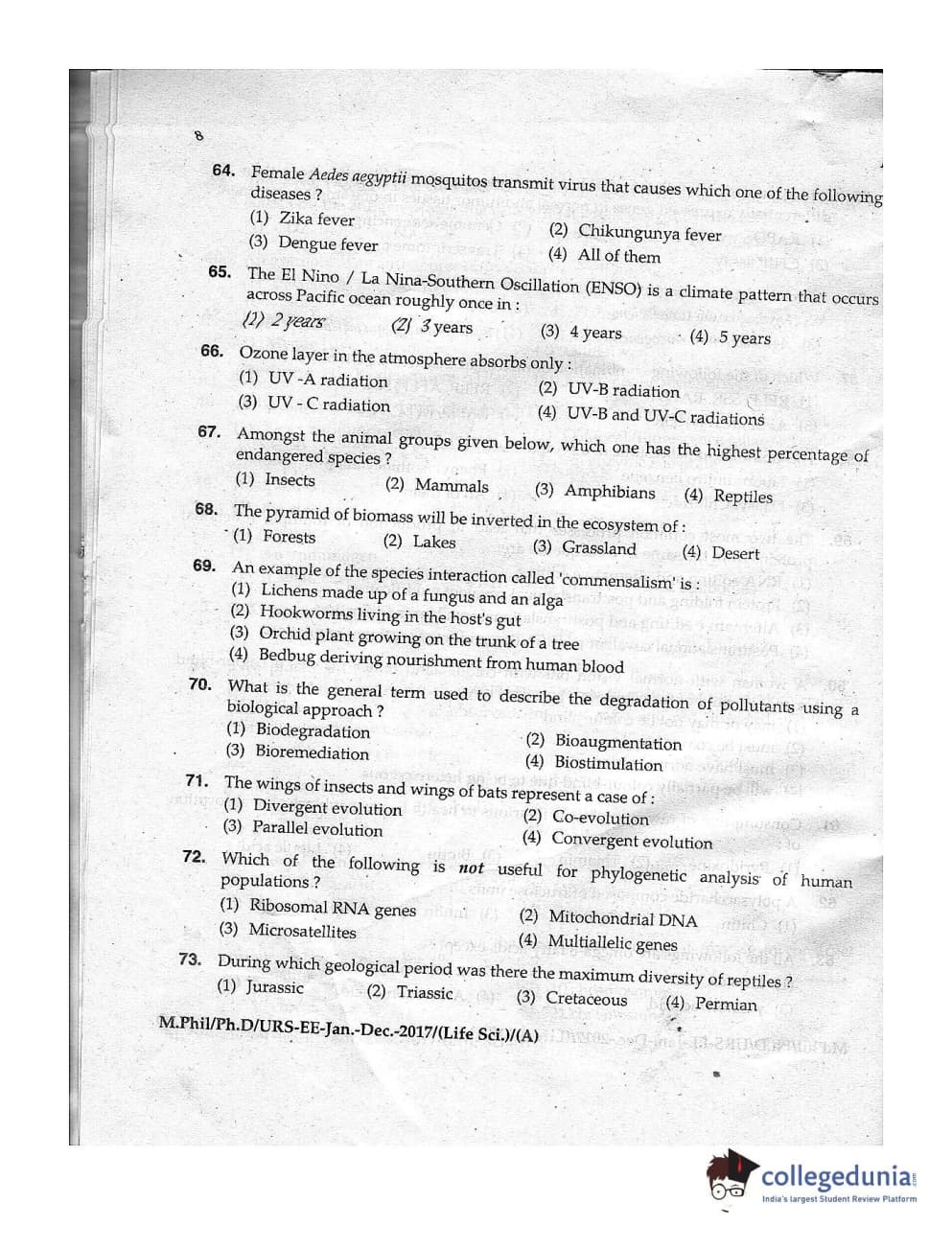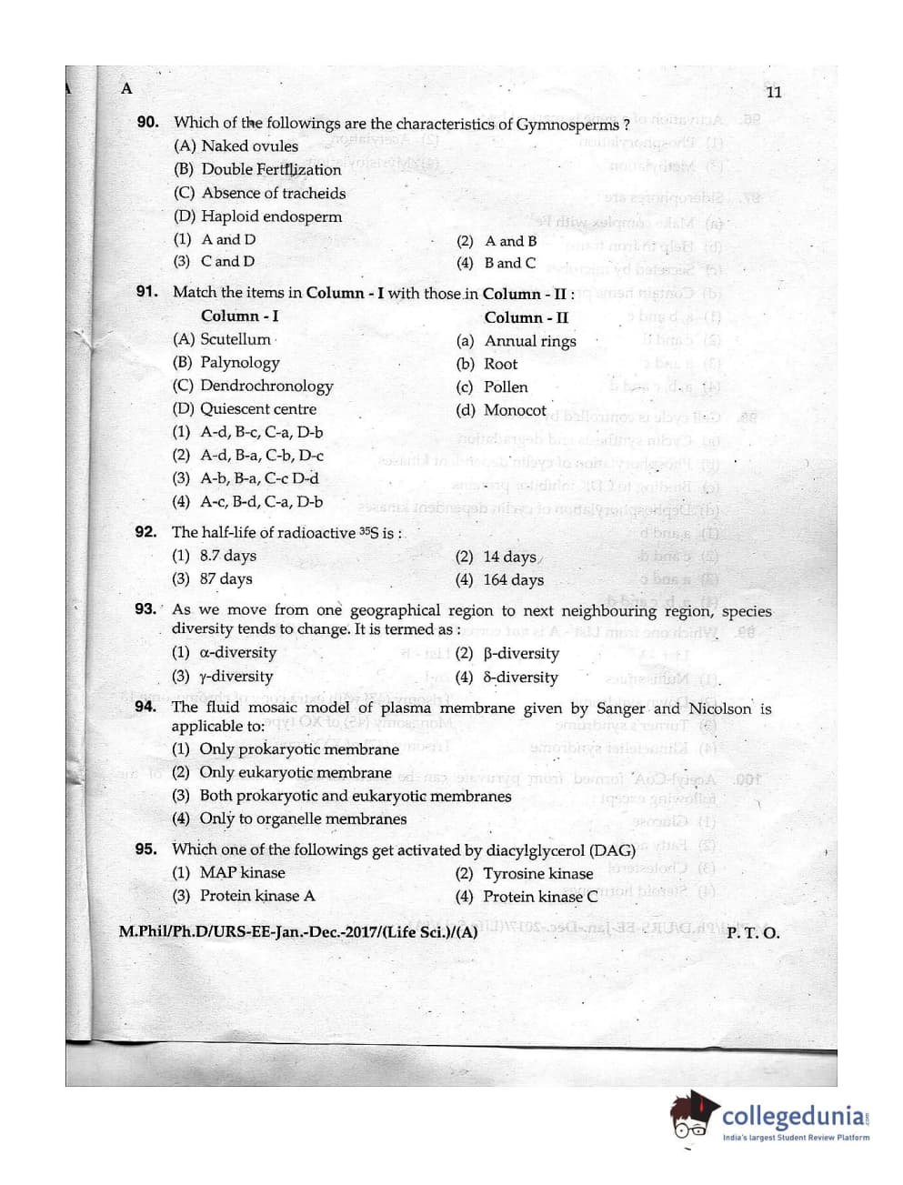 MDUCEE 2016 Ph.D/URS Life Science Set A Question Paper with Answer Key PDFs