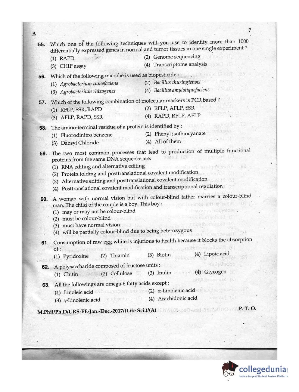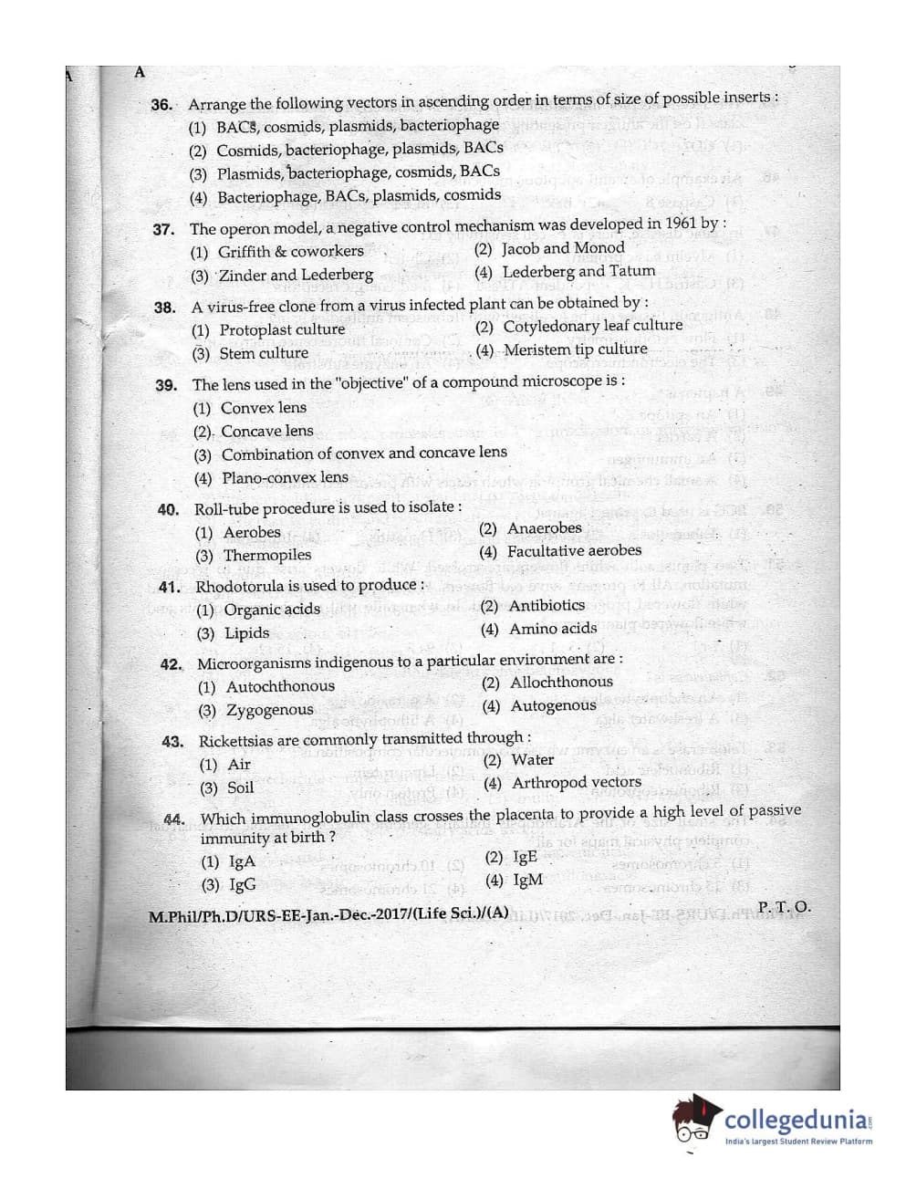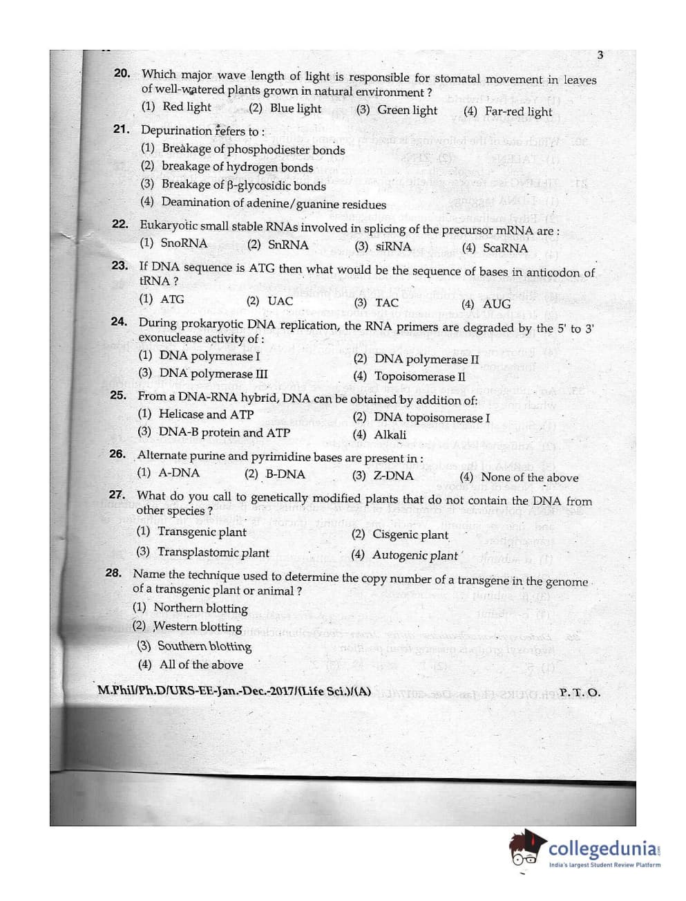 MDUCEE 2016 Ph.D/URS Life Science Set A Question Paper with Answer Key PDFs