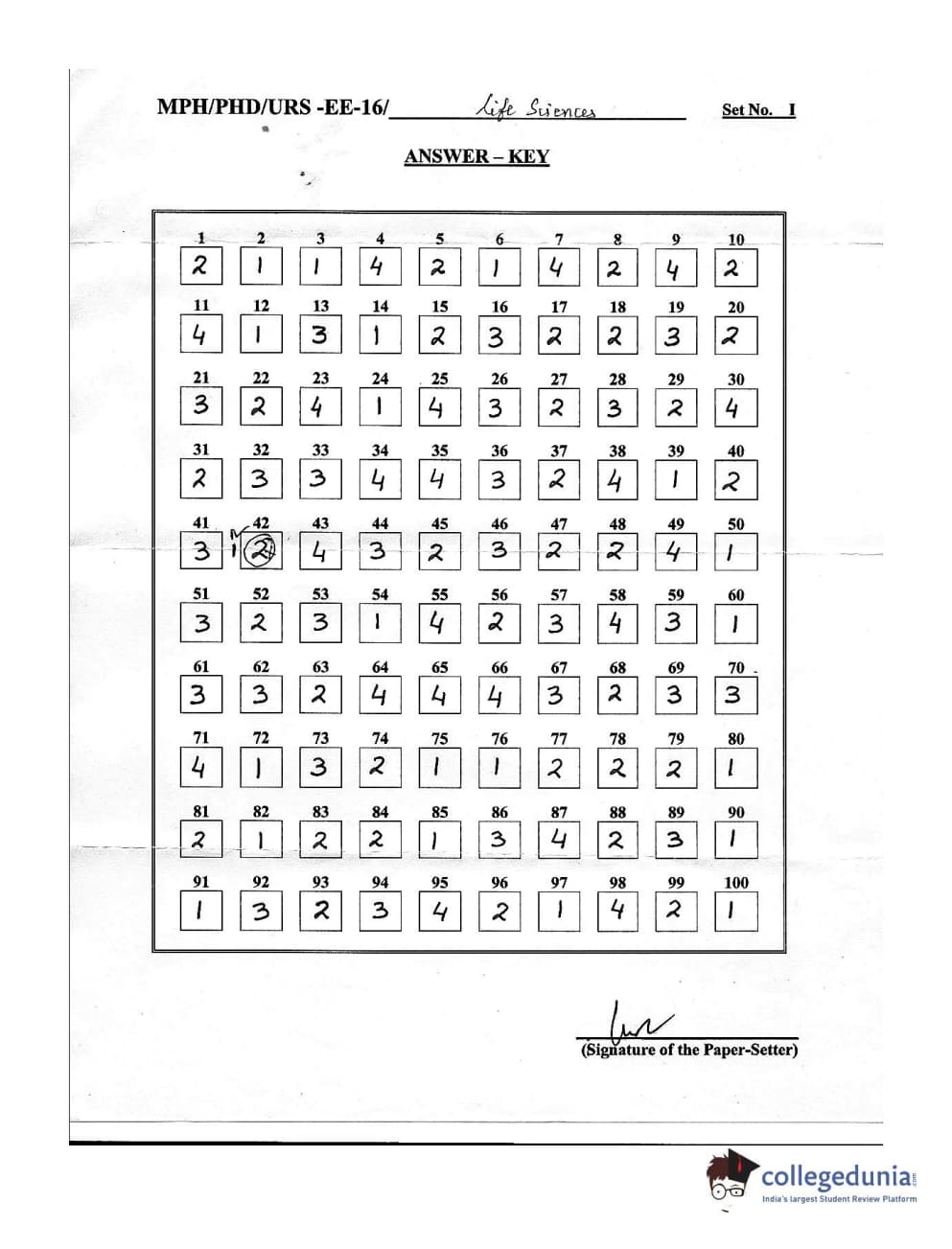 | MDUCEE 2016 Ph.D/URS Life Science Set A Question Paper PDF | MDUCEE 2016 Ph.D/URS Life Science Set A Answer Key PDF |