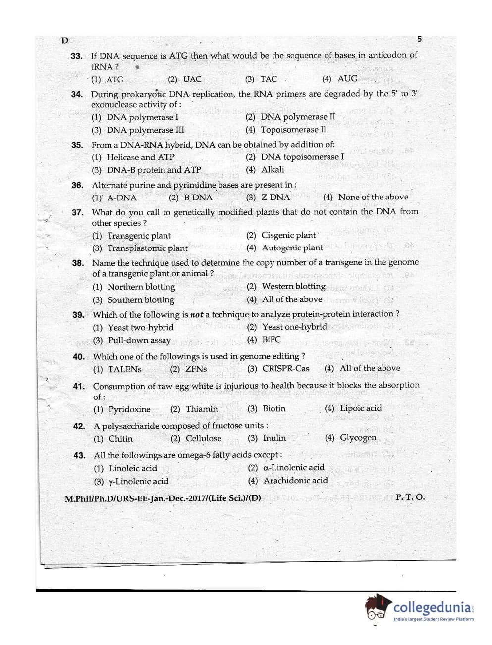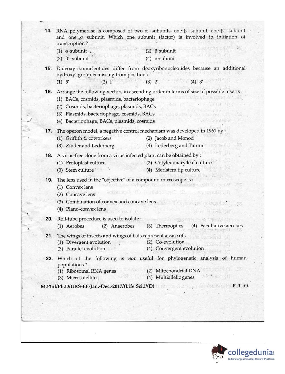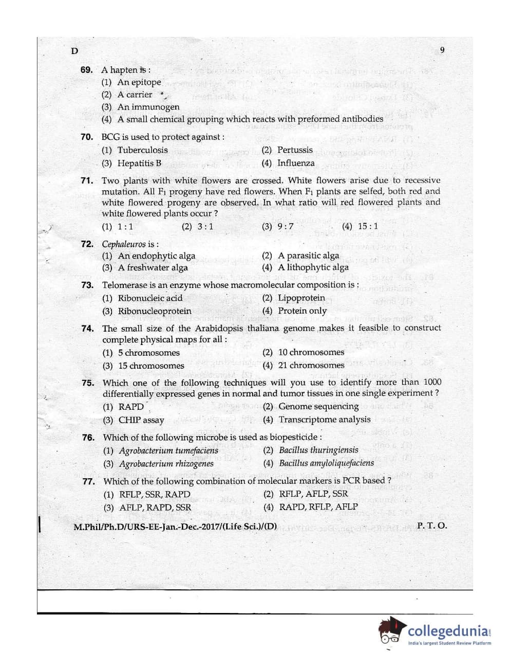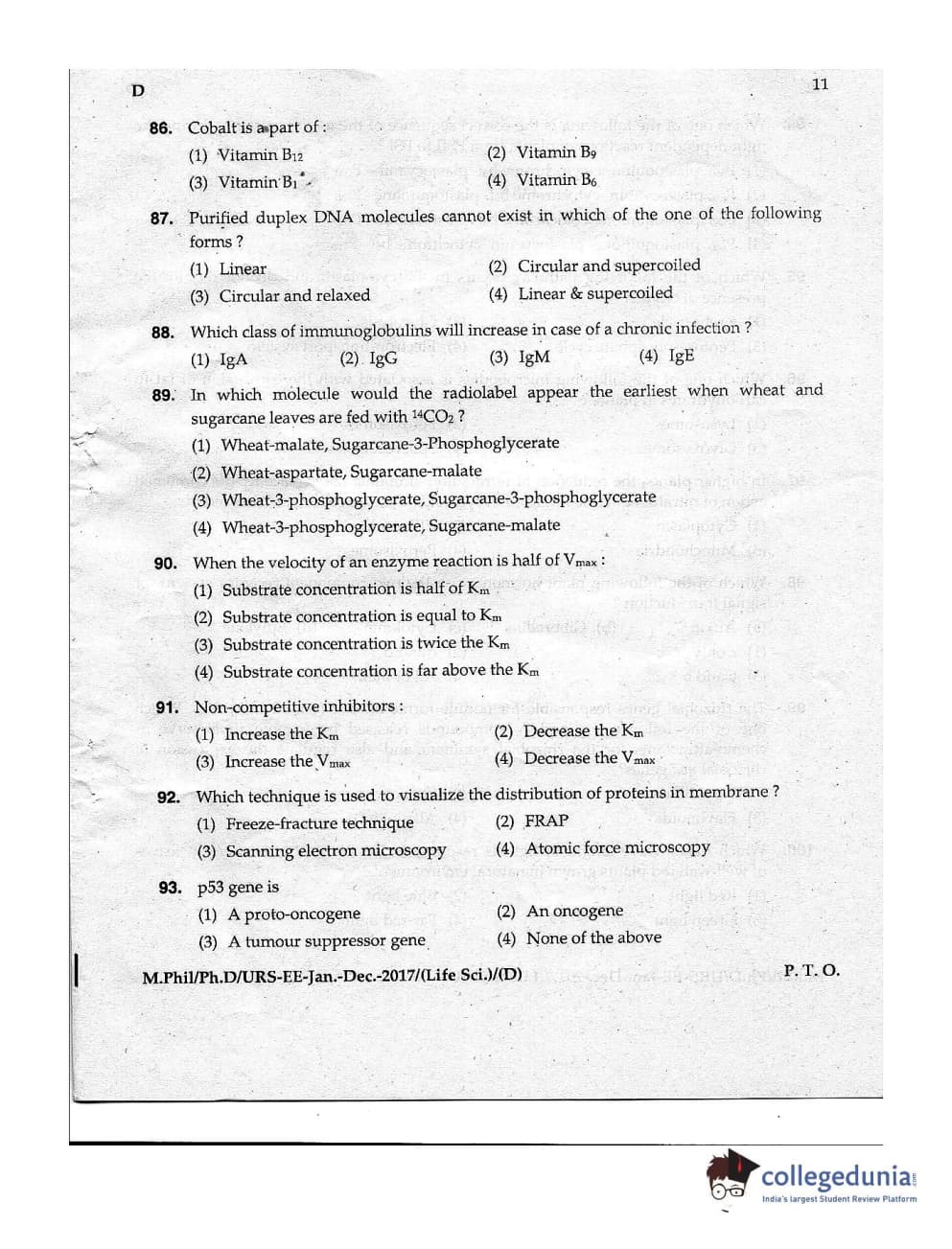 | MDUCEE 2016 Ph.D/URS Life Science Set D Question Paper PDF | MDUCEE 2016 Ph.D/URS Life Science Set D Answer Key PDF |