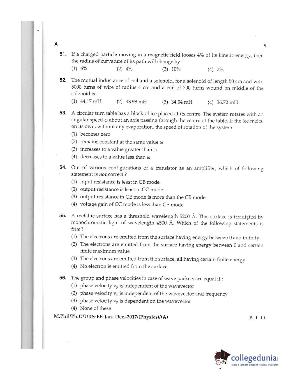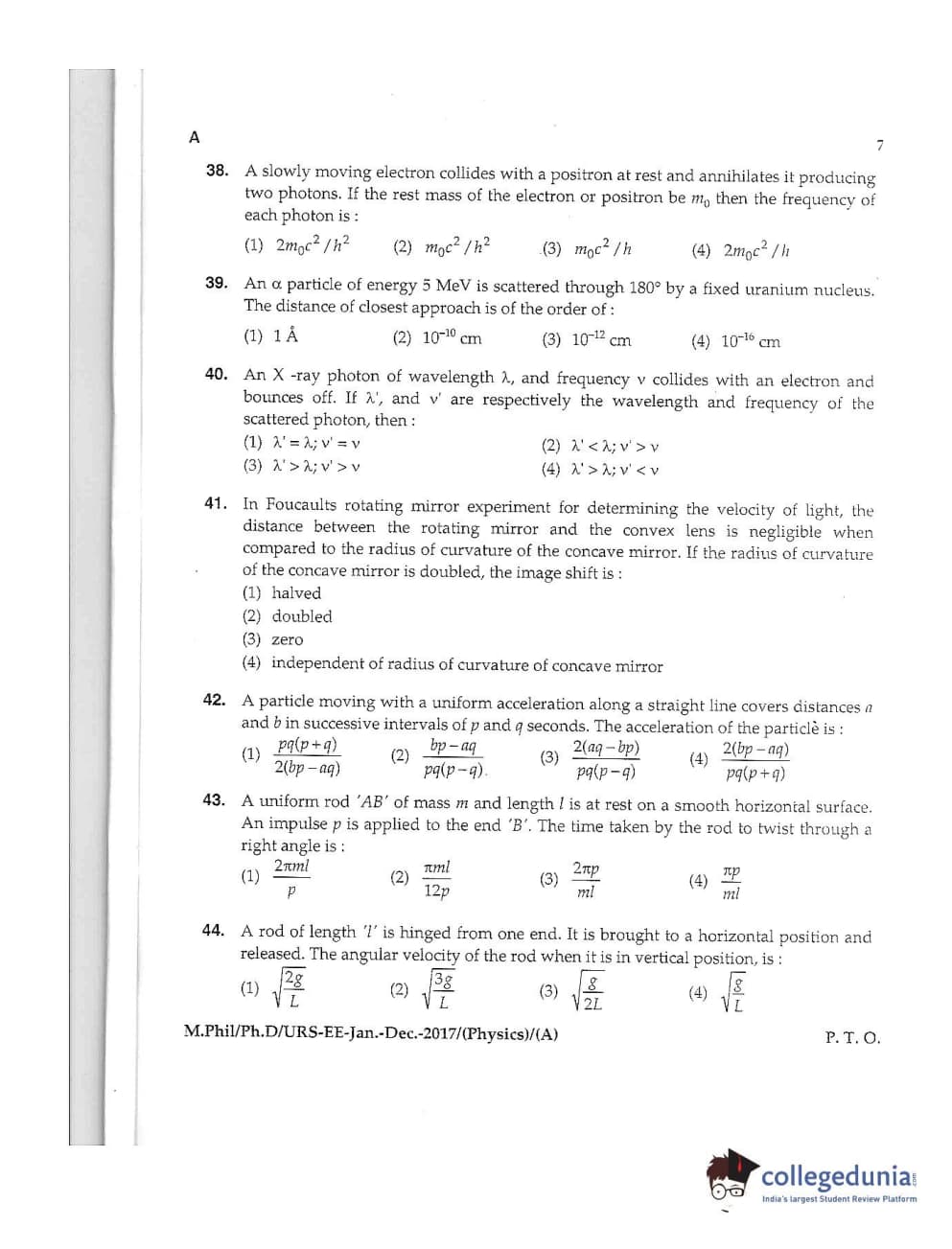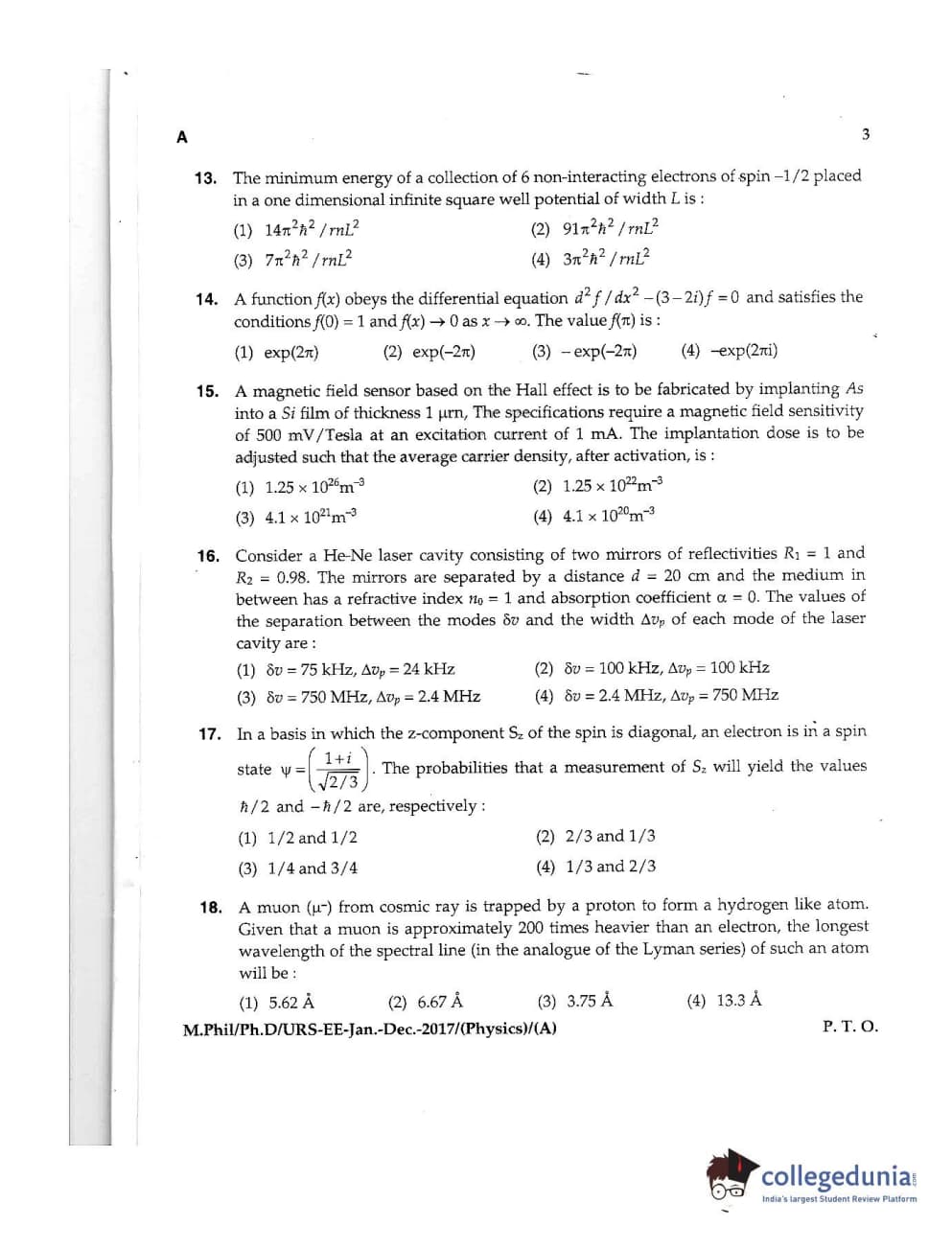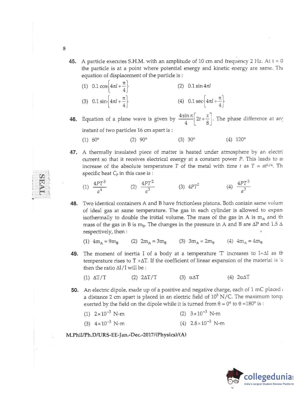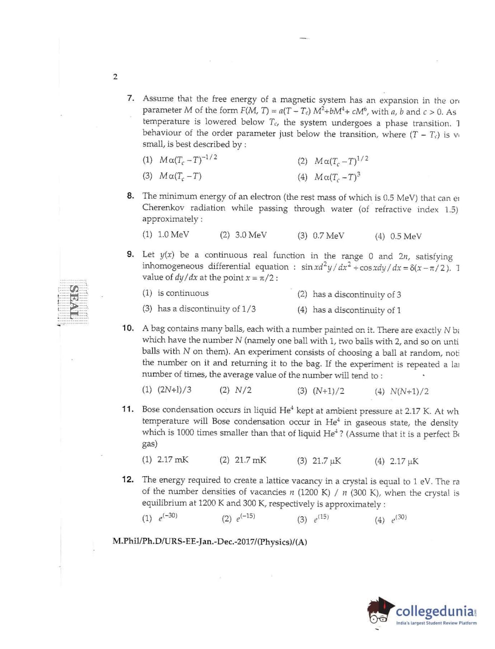 MDUCEE 2016 Ph.D /URS (Physics) Set A Question Paper with Answer Key PDFs
