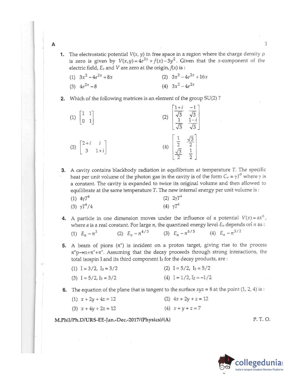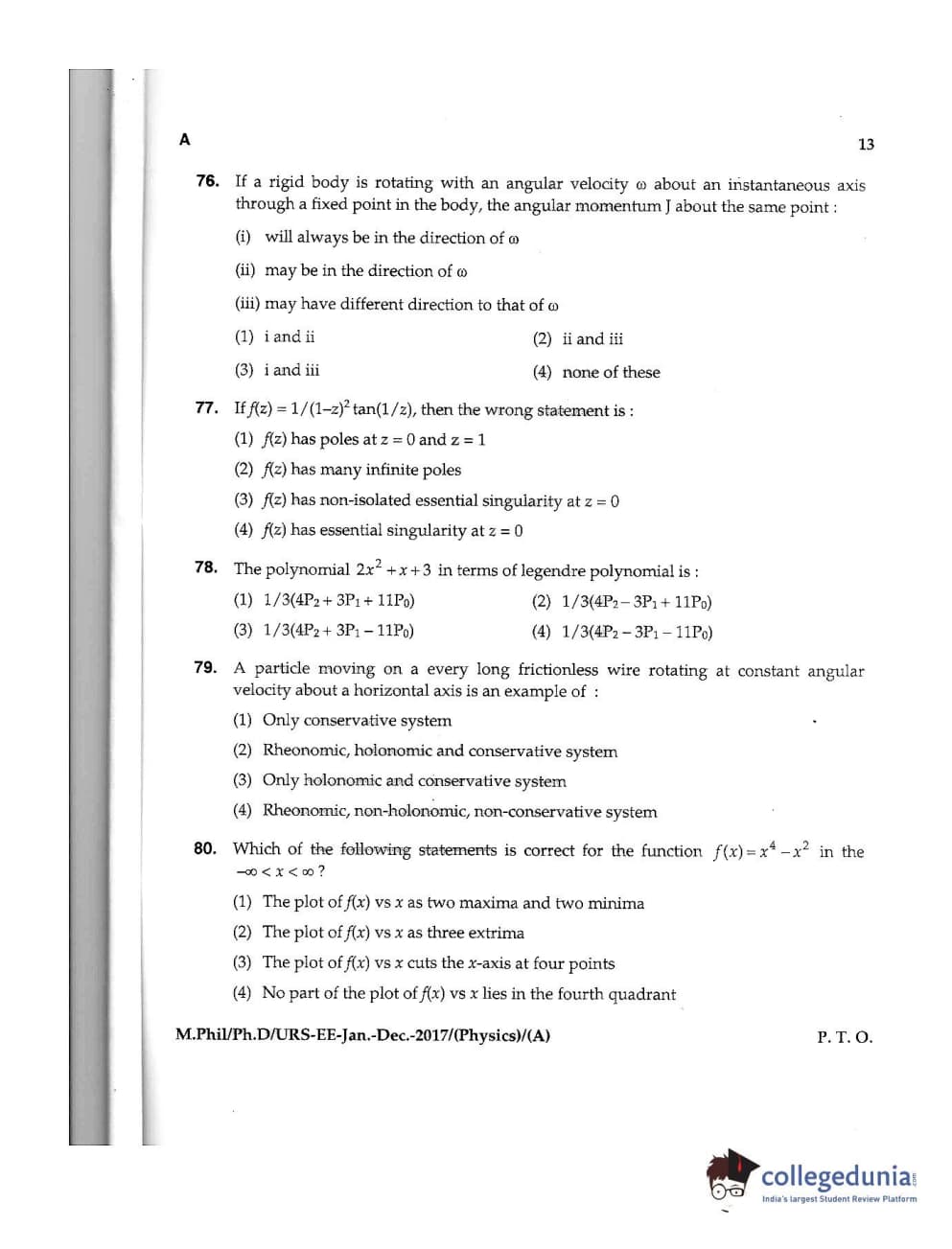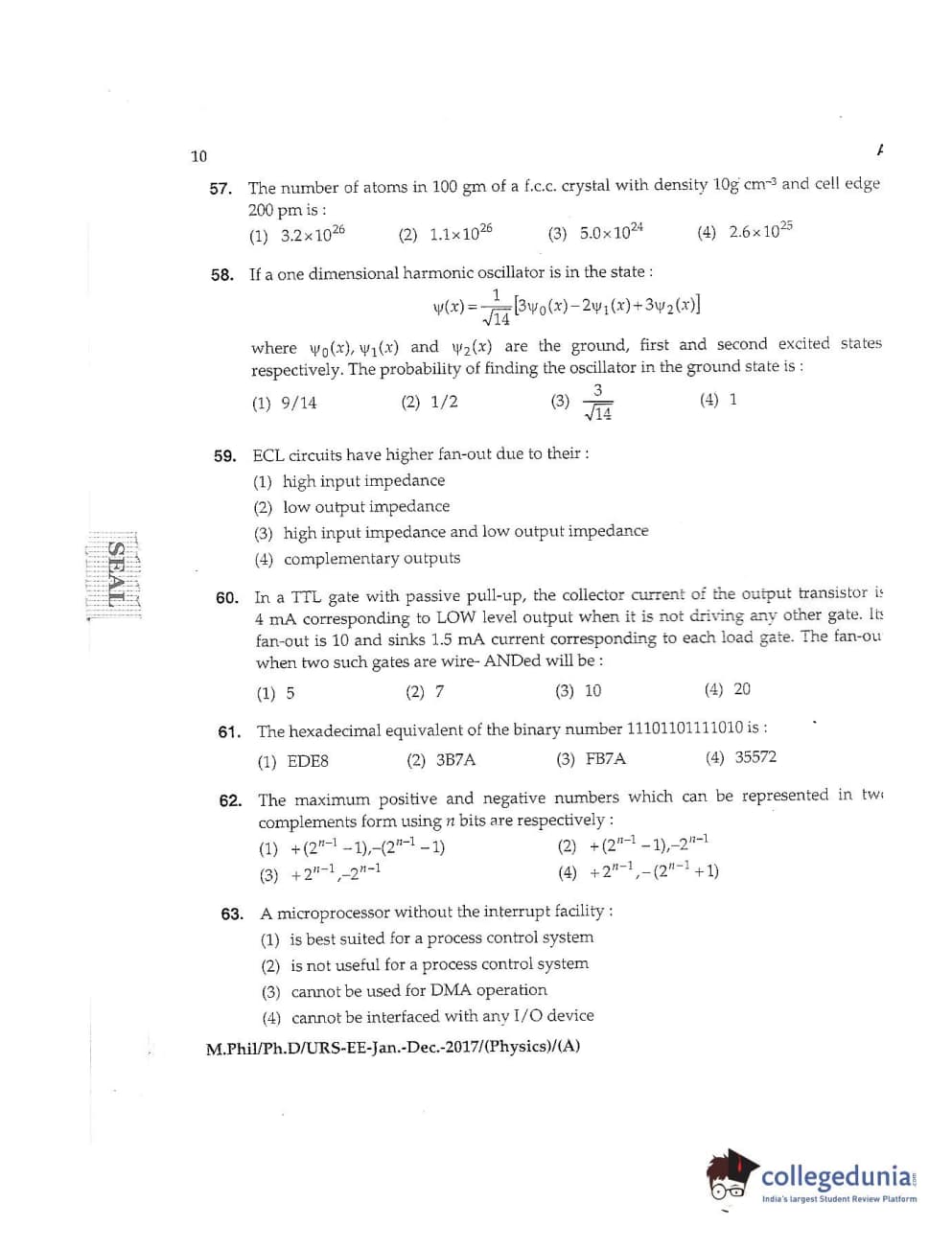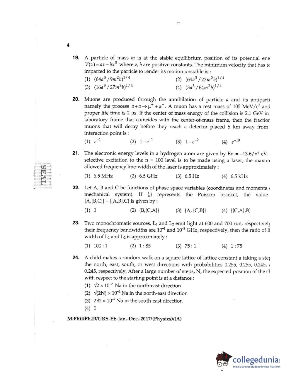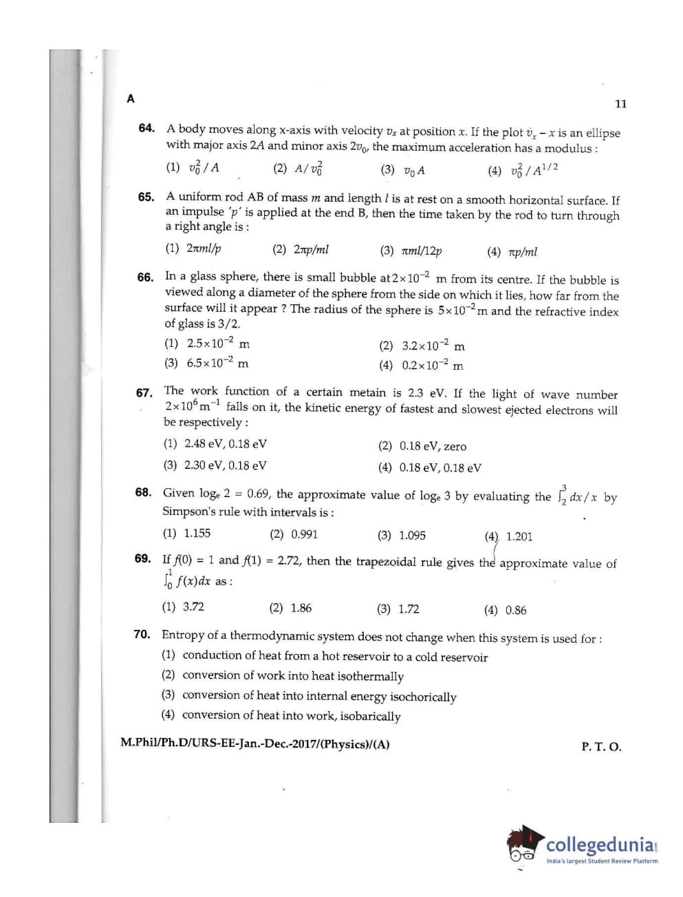 MDUCEE 2016 Ph.D /URS (Physics) Set A Question Paper with Answer Key PDFs