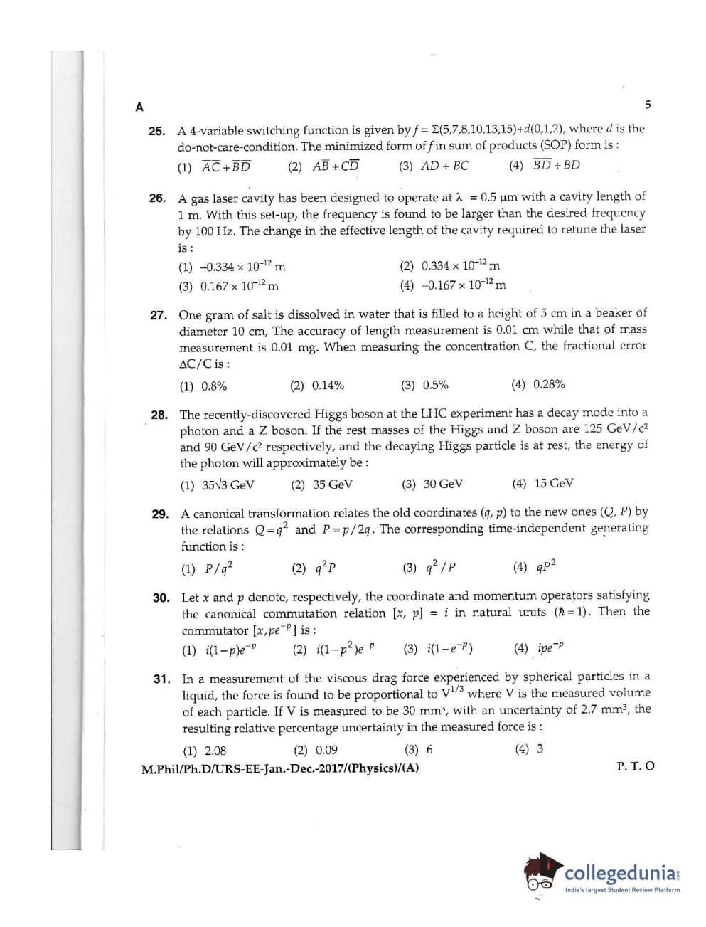 MDUCEE 2016 Ph.D /URS (Physics) Set A Question paper with answer key pdf is available for download. The exam was successfully organized by Maharishi Dayanand University. The question paper comprised a total of 100 questions.