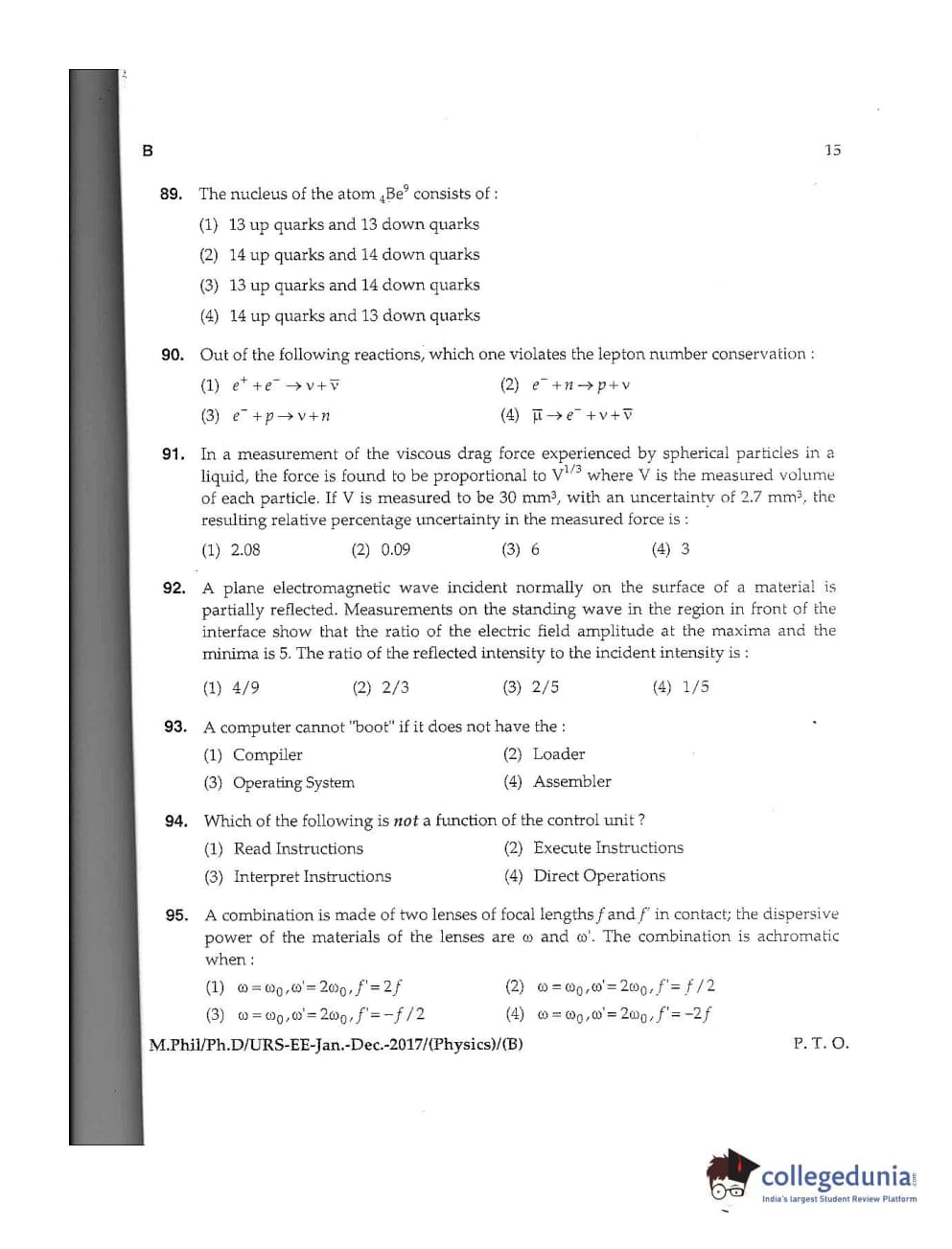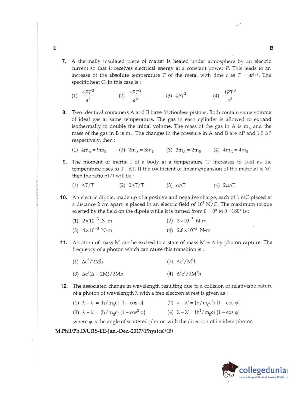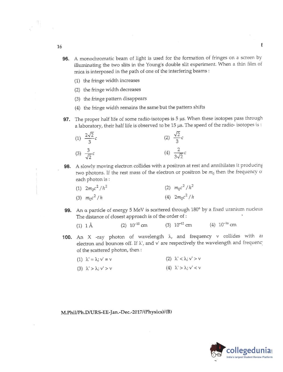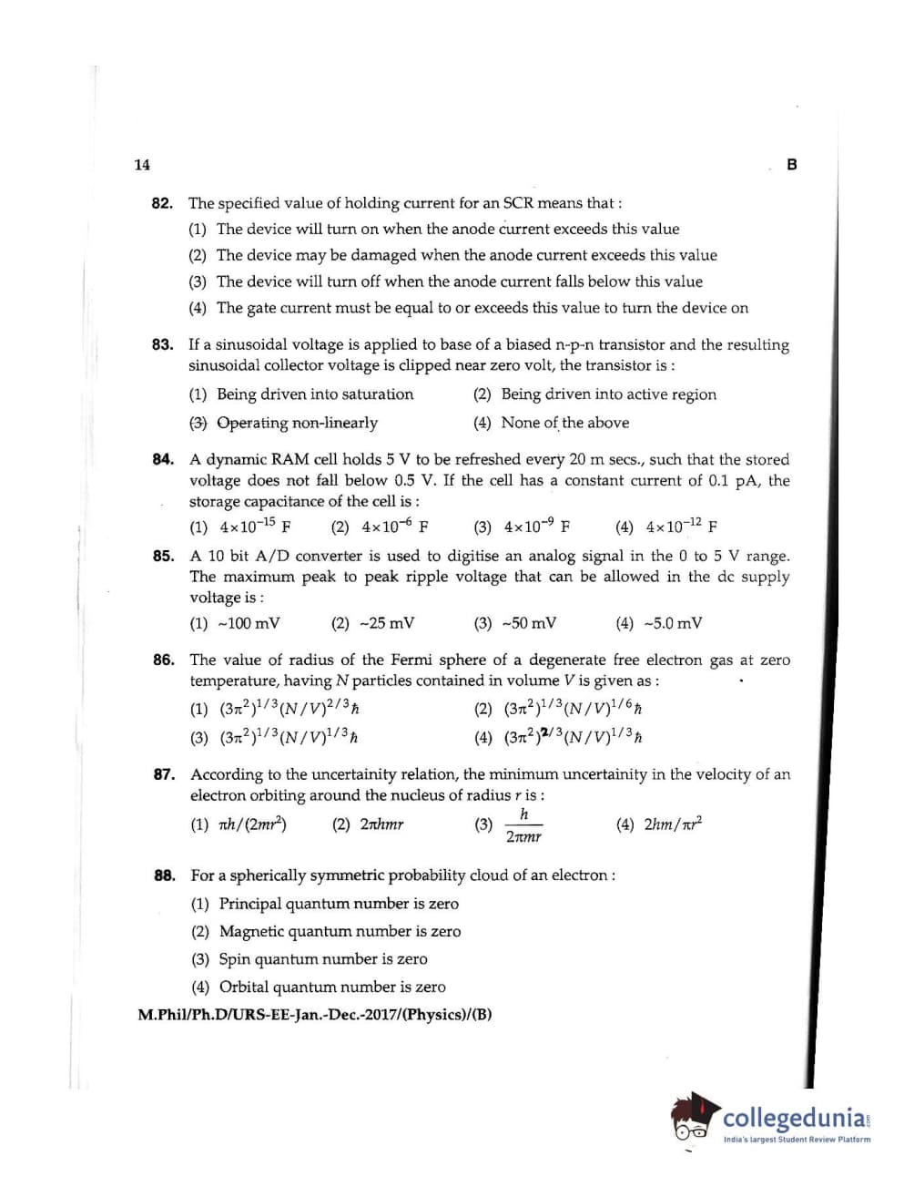 MDUCEE 2016 Ph.D /URS (Physics) Set B Question Paper with Answer Key PDFs