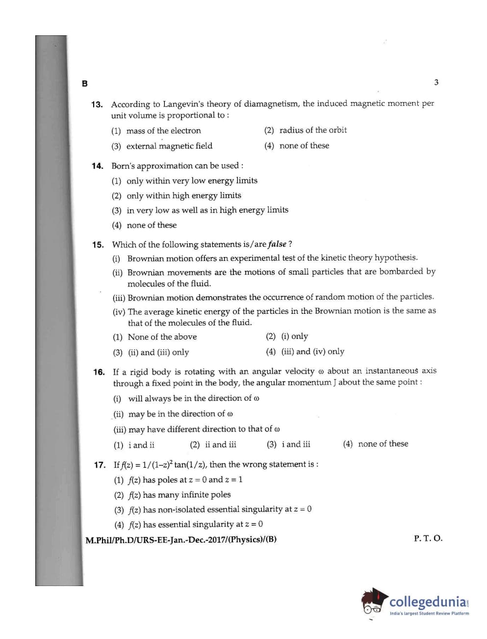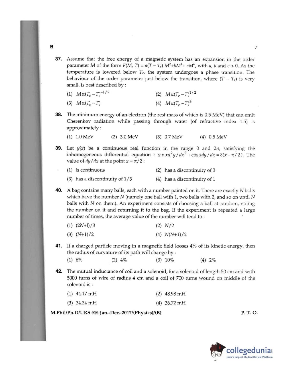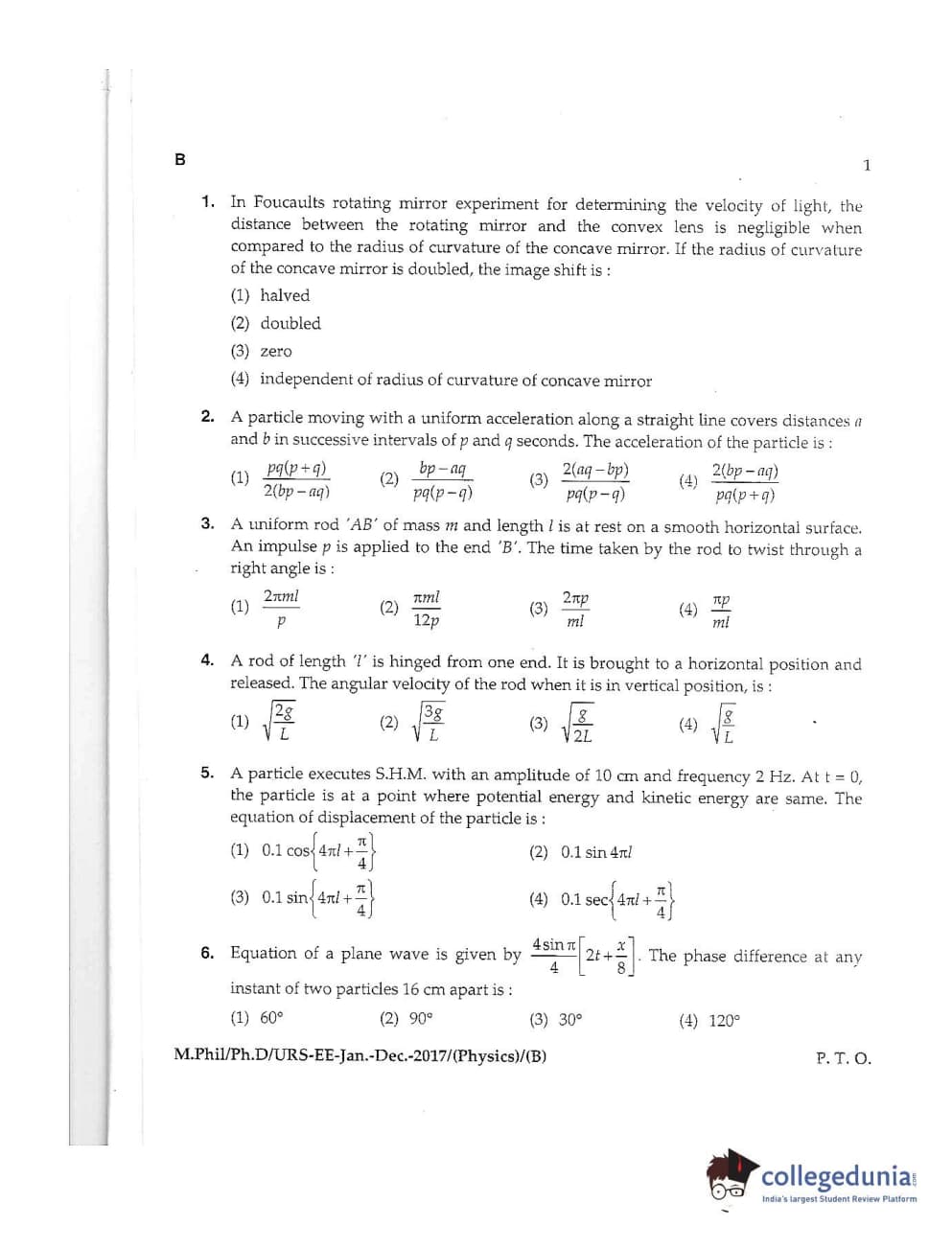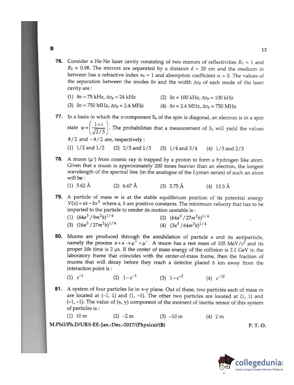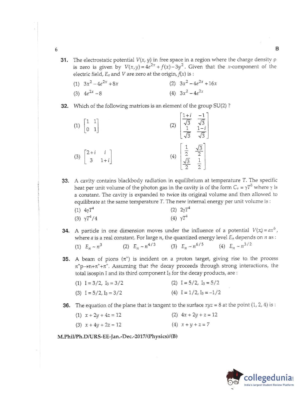 MDUCEE 2016 Ph.D /URS (Physics) Set B Question Paper with Answer Key PDFs