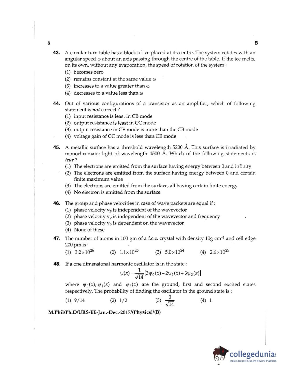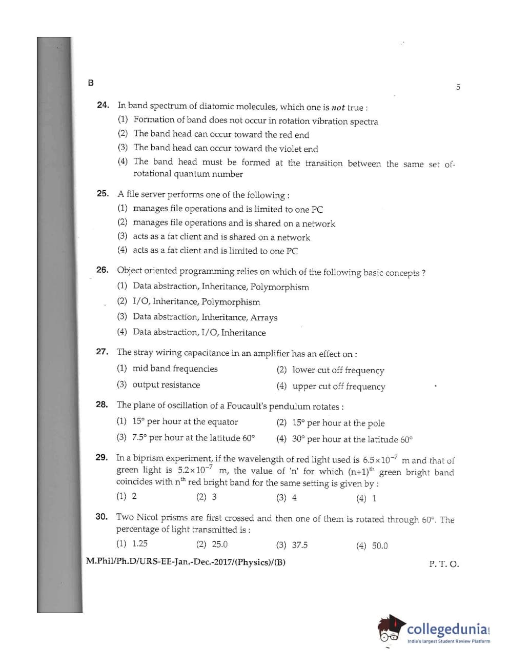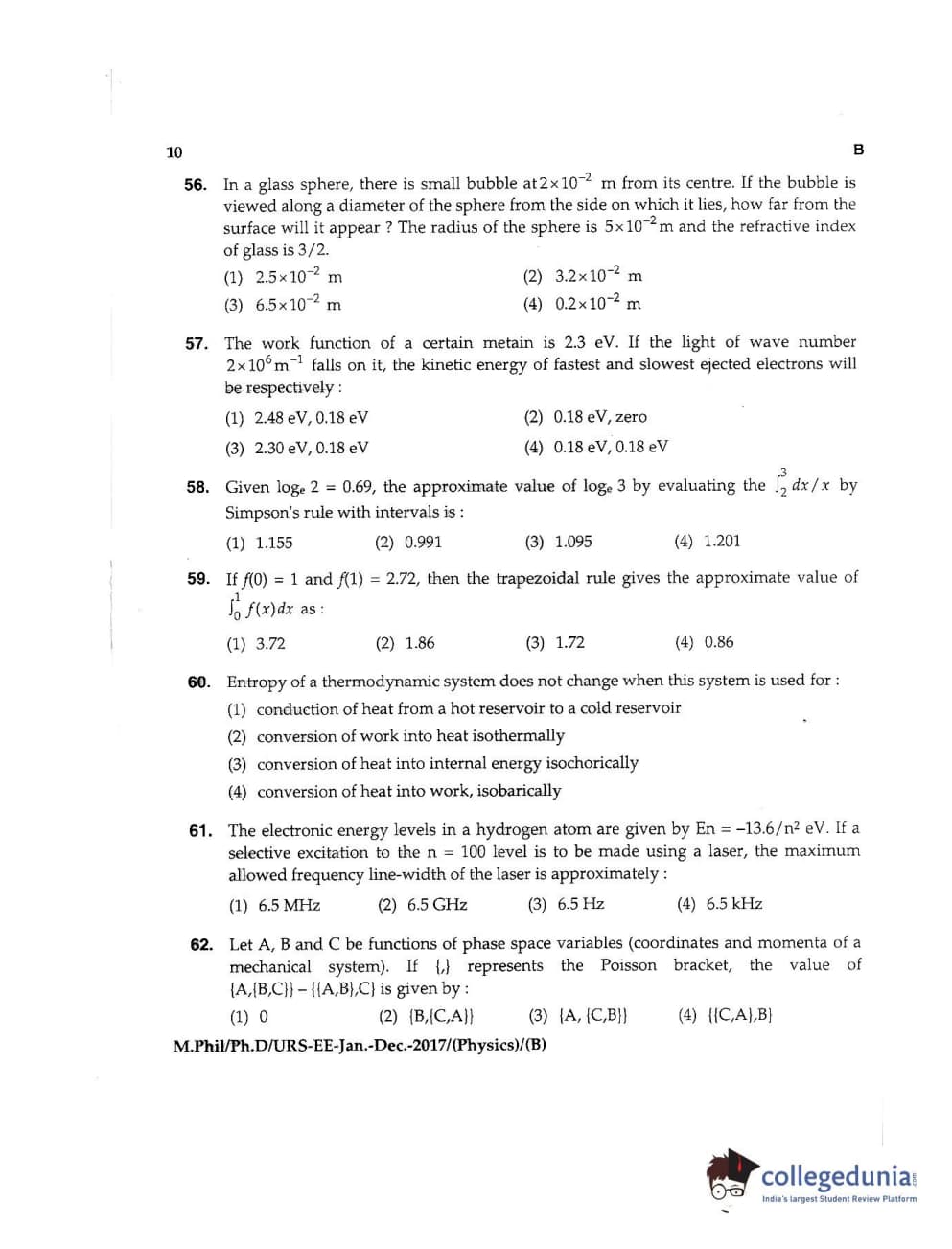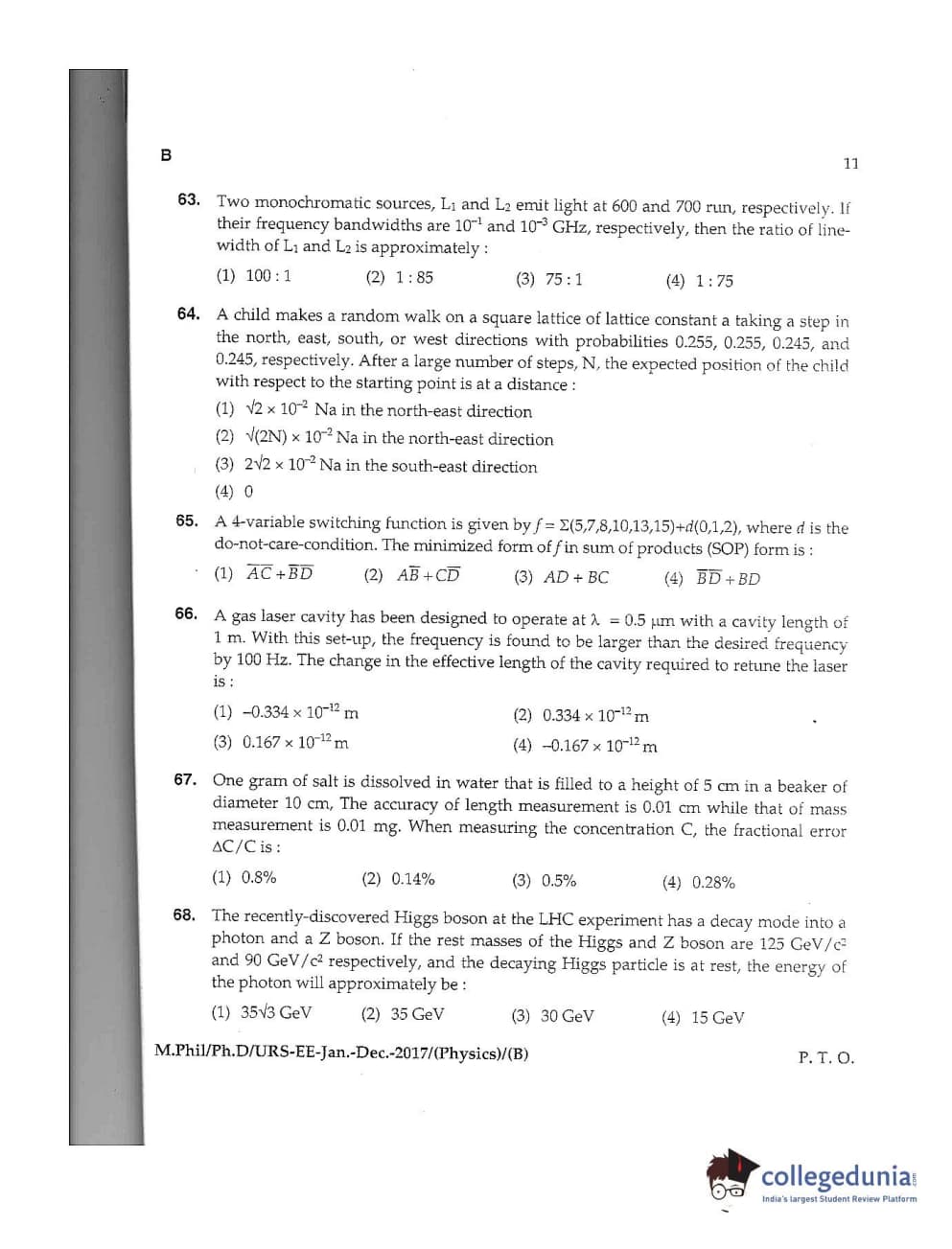 MDUCEE 2016 Ph.D /URS (Physics) Set B Question Paper with Answer Key PDFs