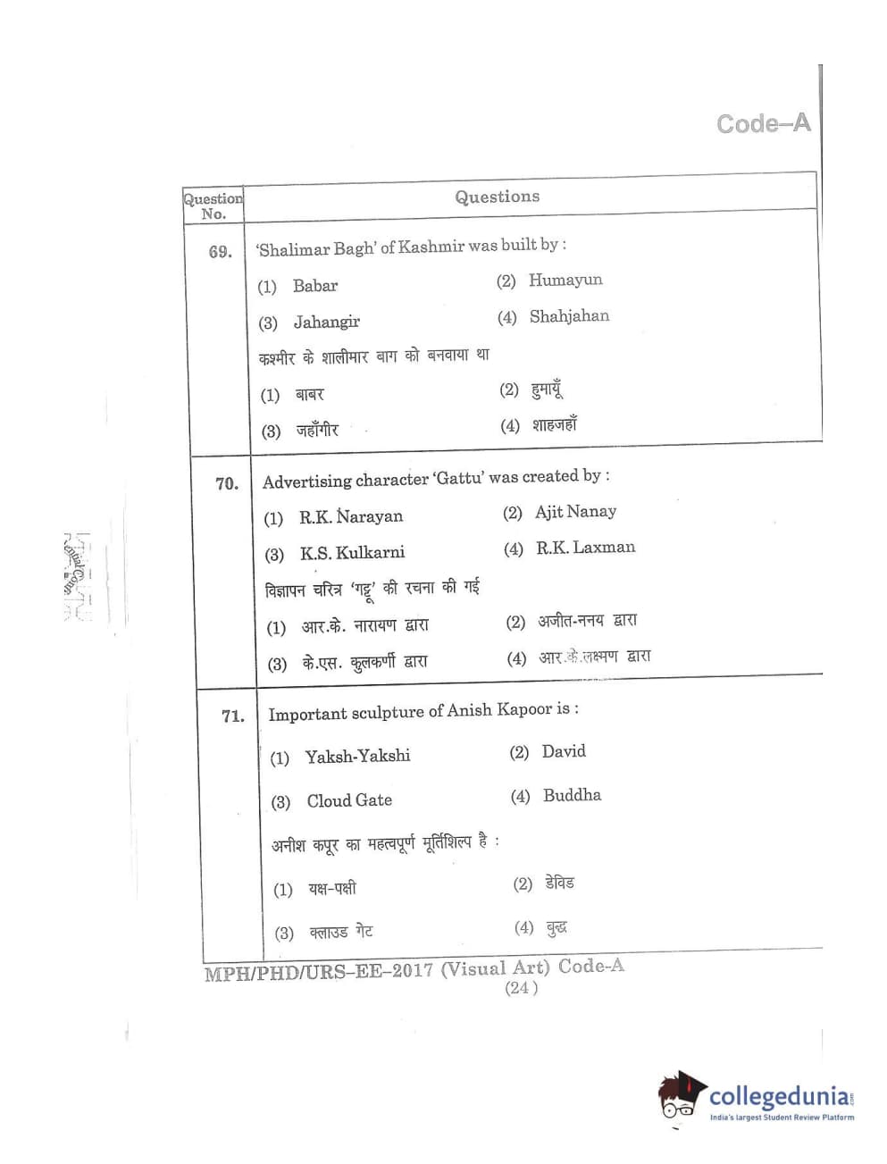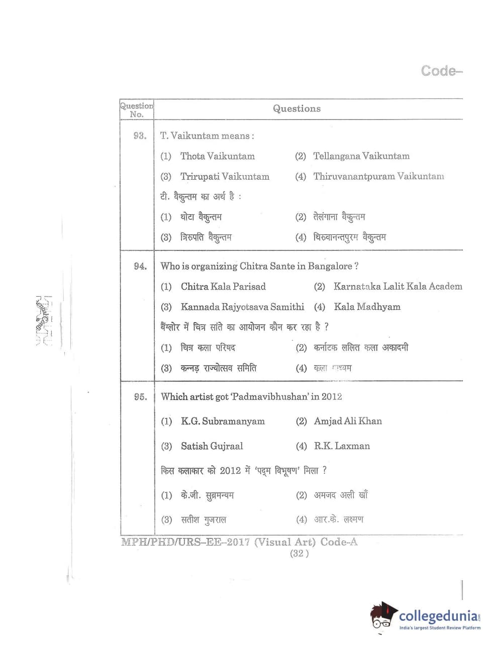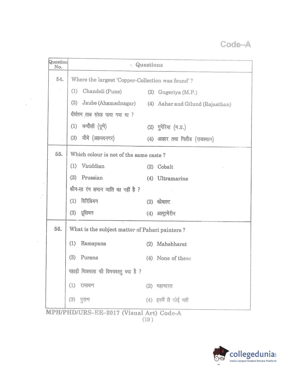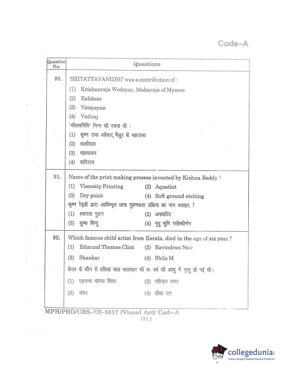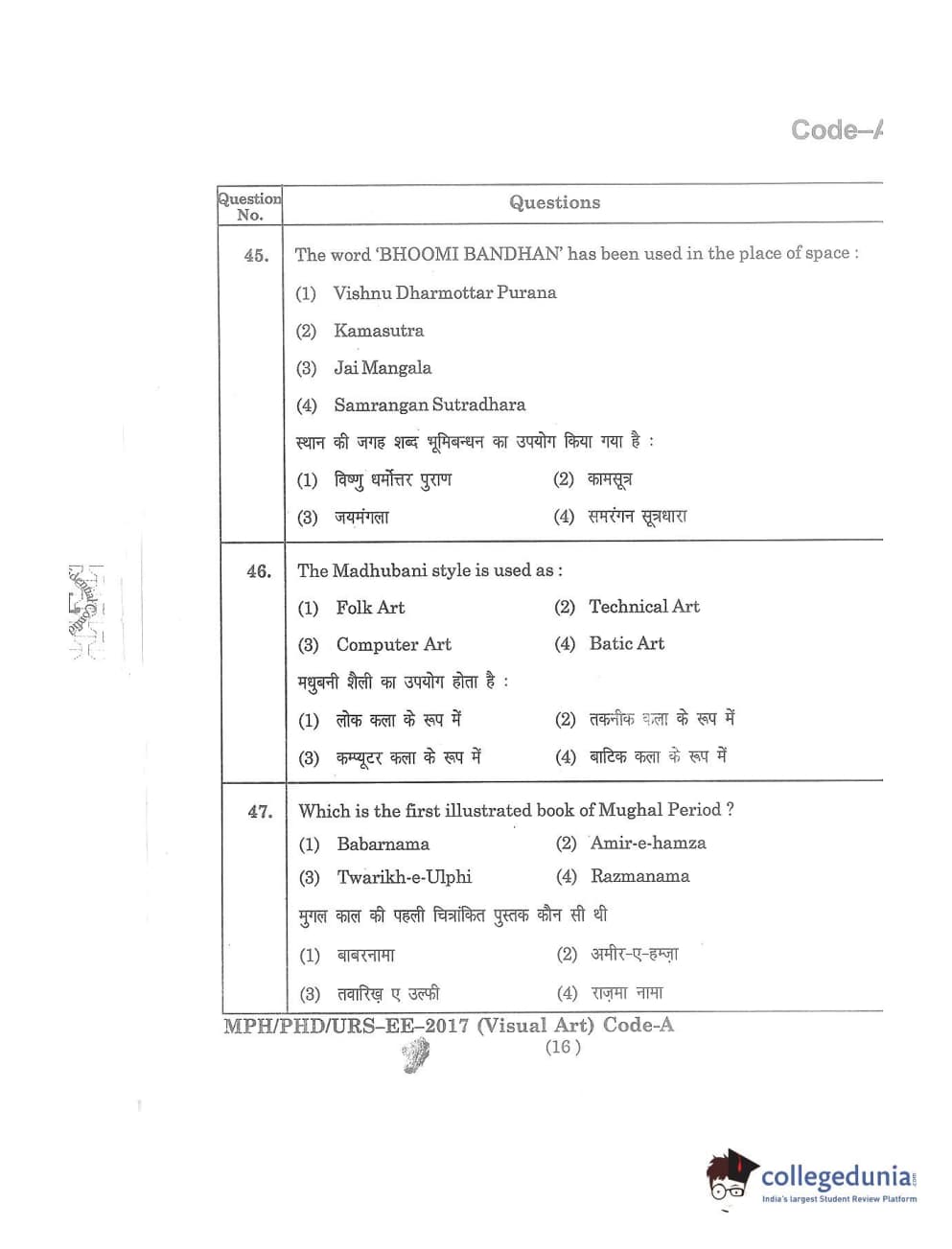 MDUCEE 2016 Ph.D/URS/M.Phil (Visual Arts) Set A Question Paper with Answer Key PDFs