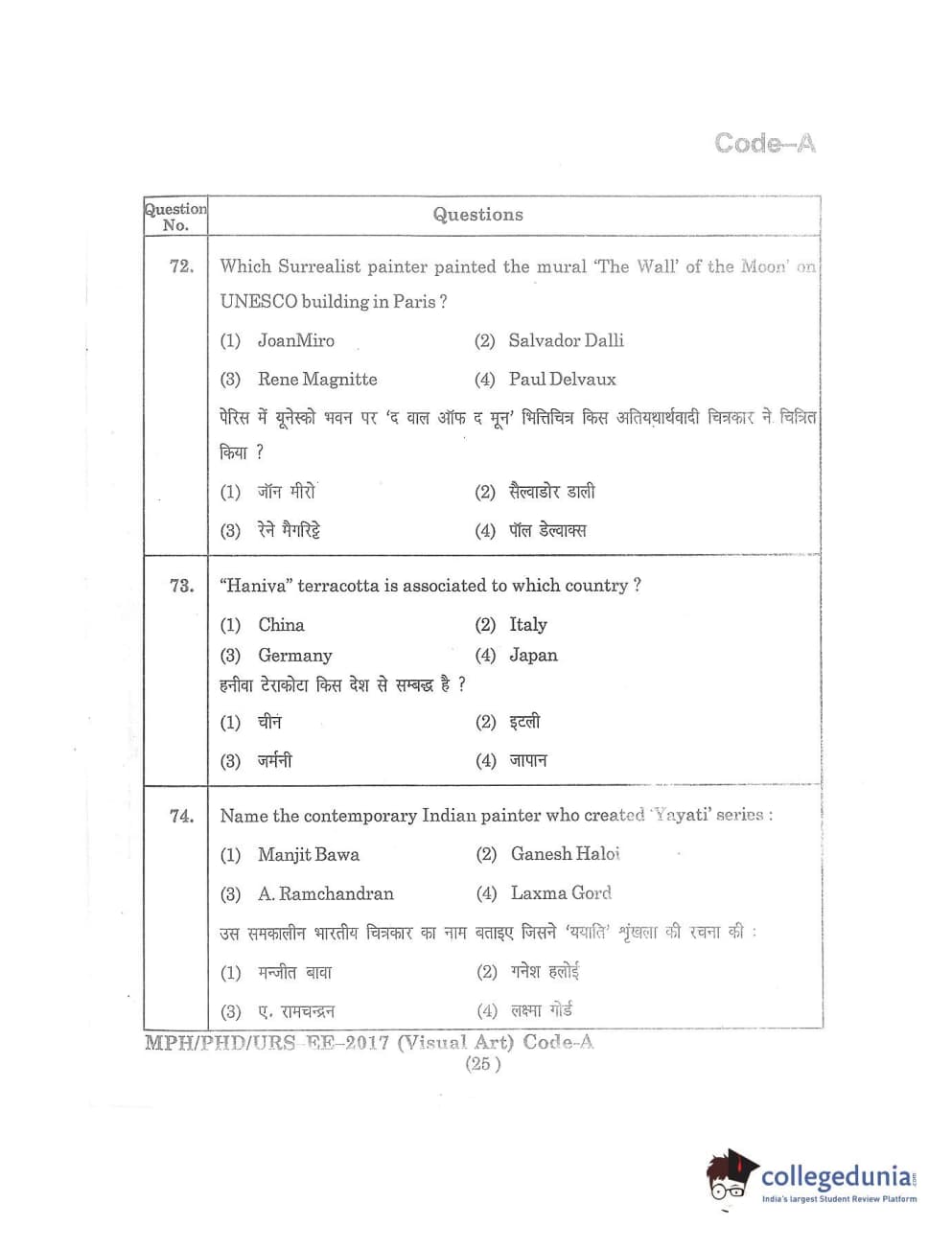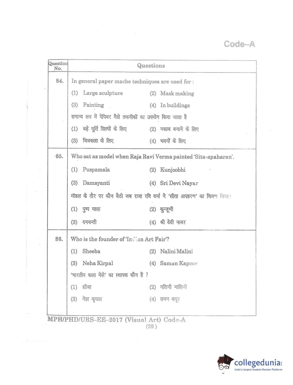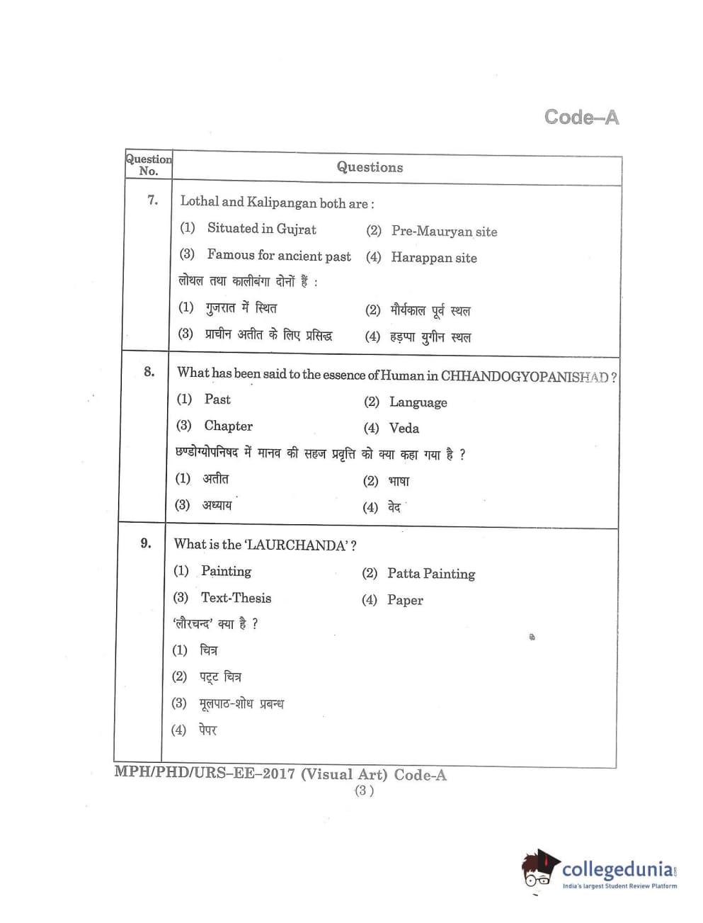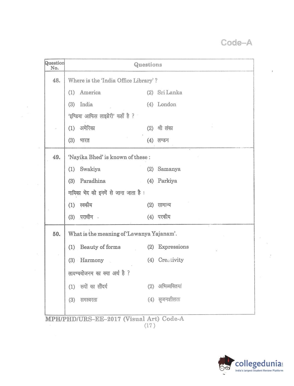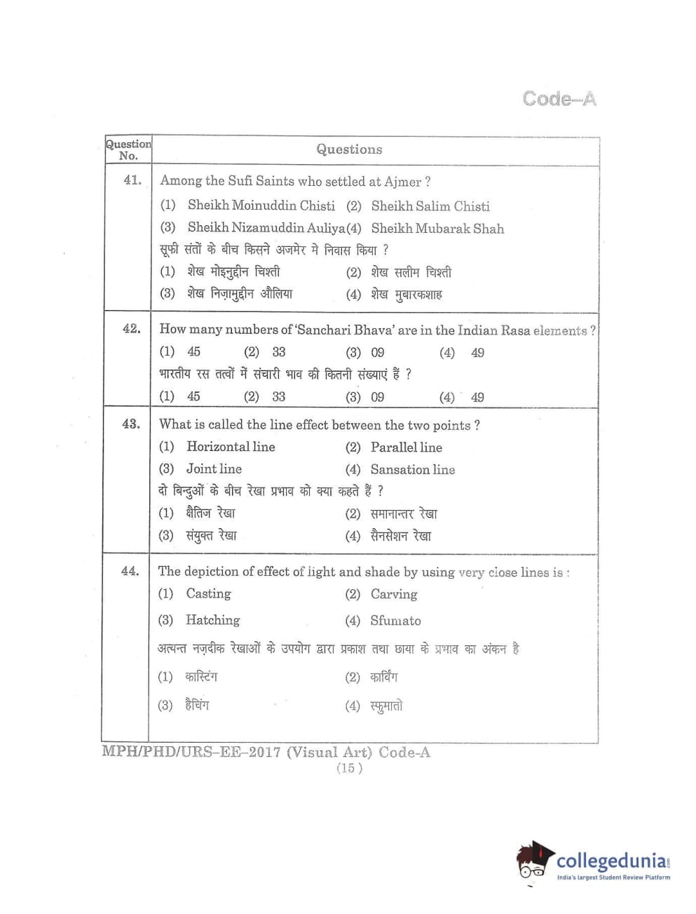 MDUCEE 2016 Ph.D/URS/M.Phil (Visual Arts) Set A Question Paper with Answer Key PDFs
