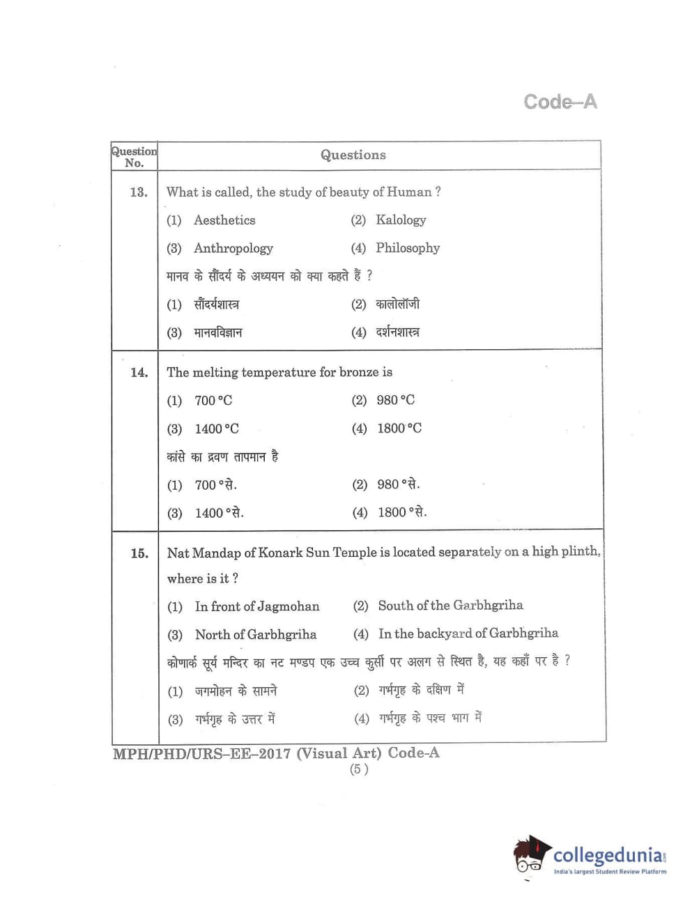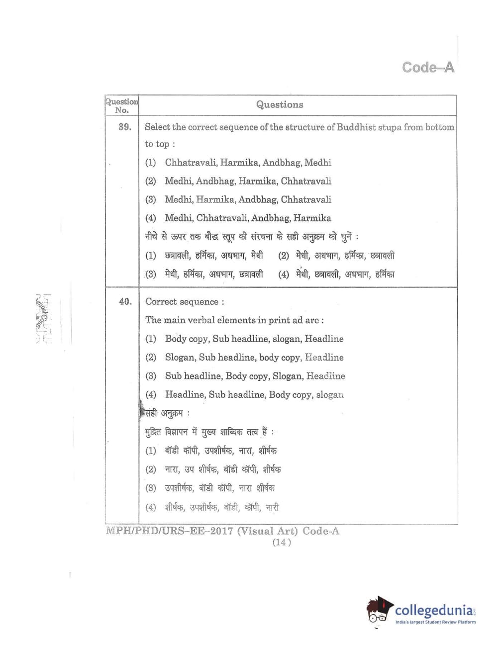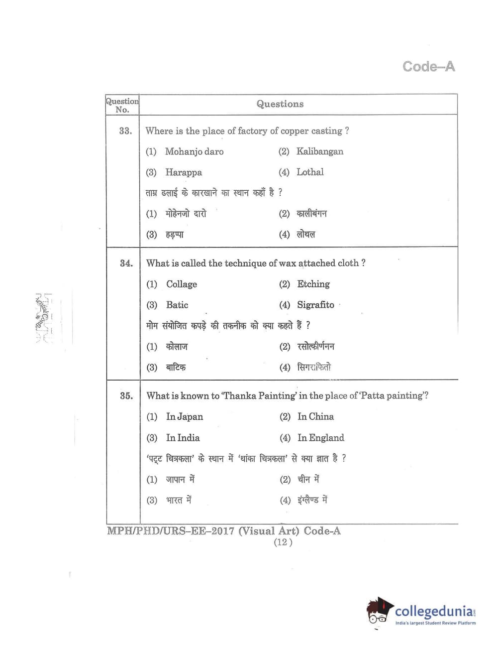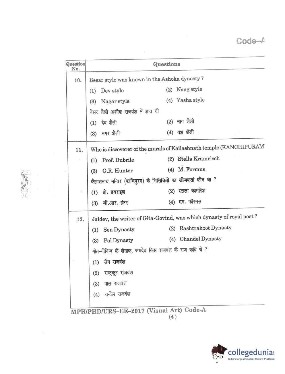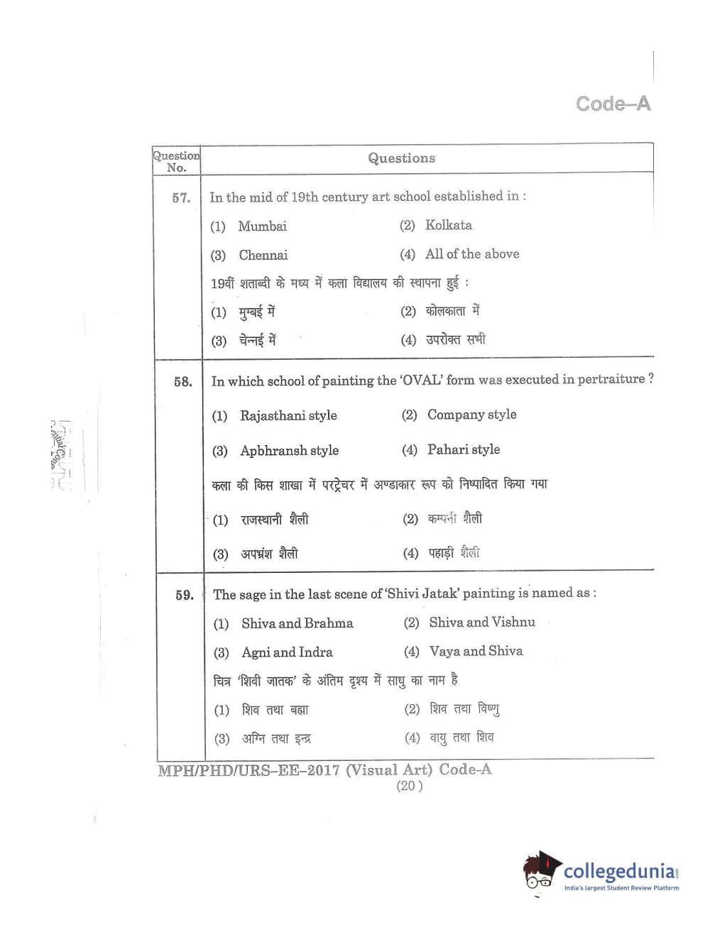 MDUCEE 2016 Ph.D/URS/M.Phil (Visual Arts) Set A Question Paper with Answer Key PDFs