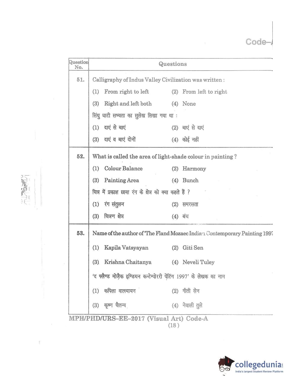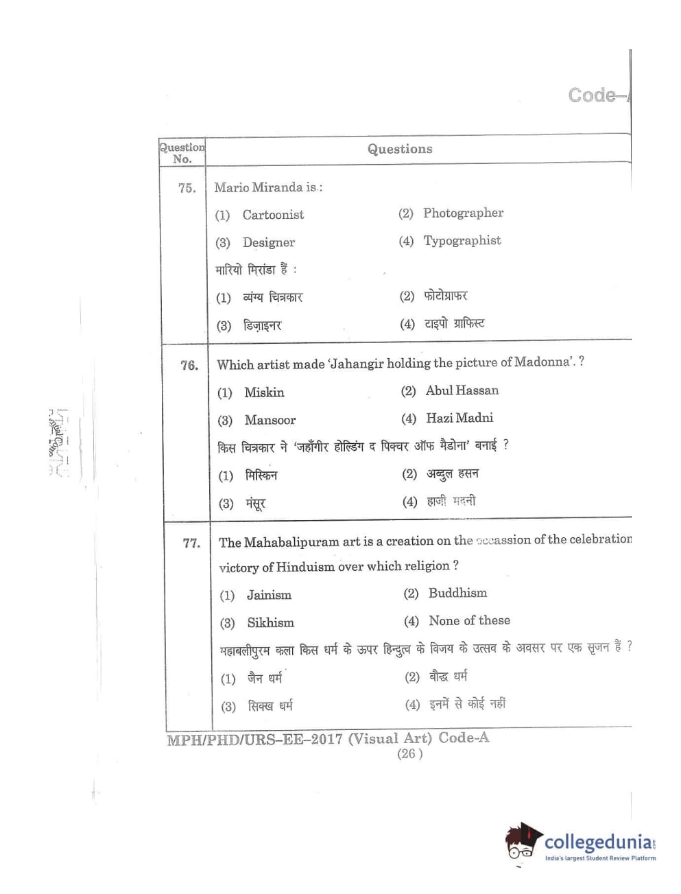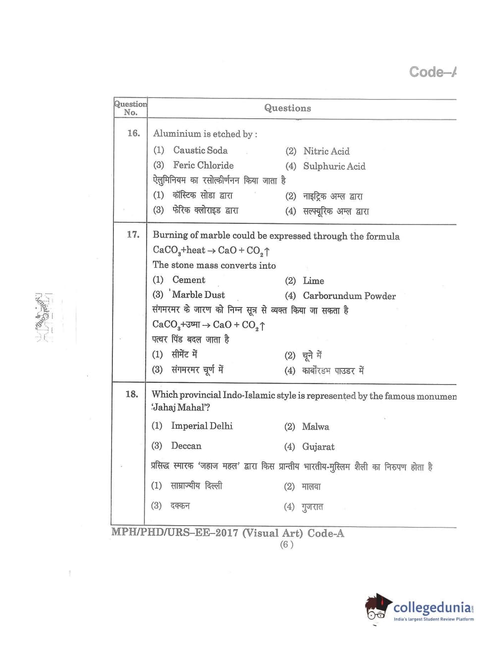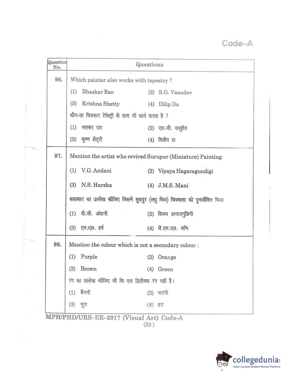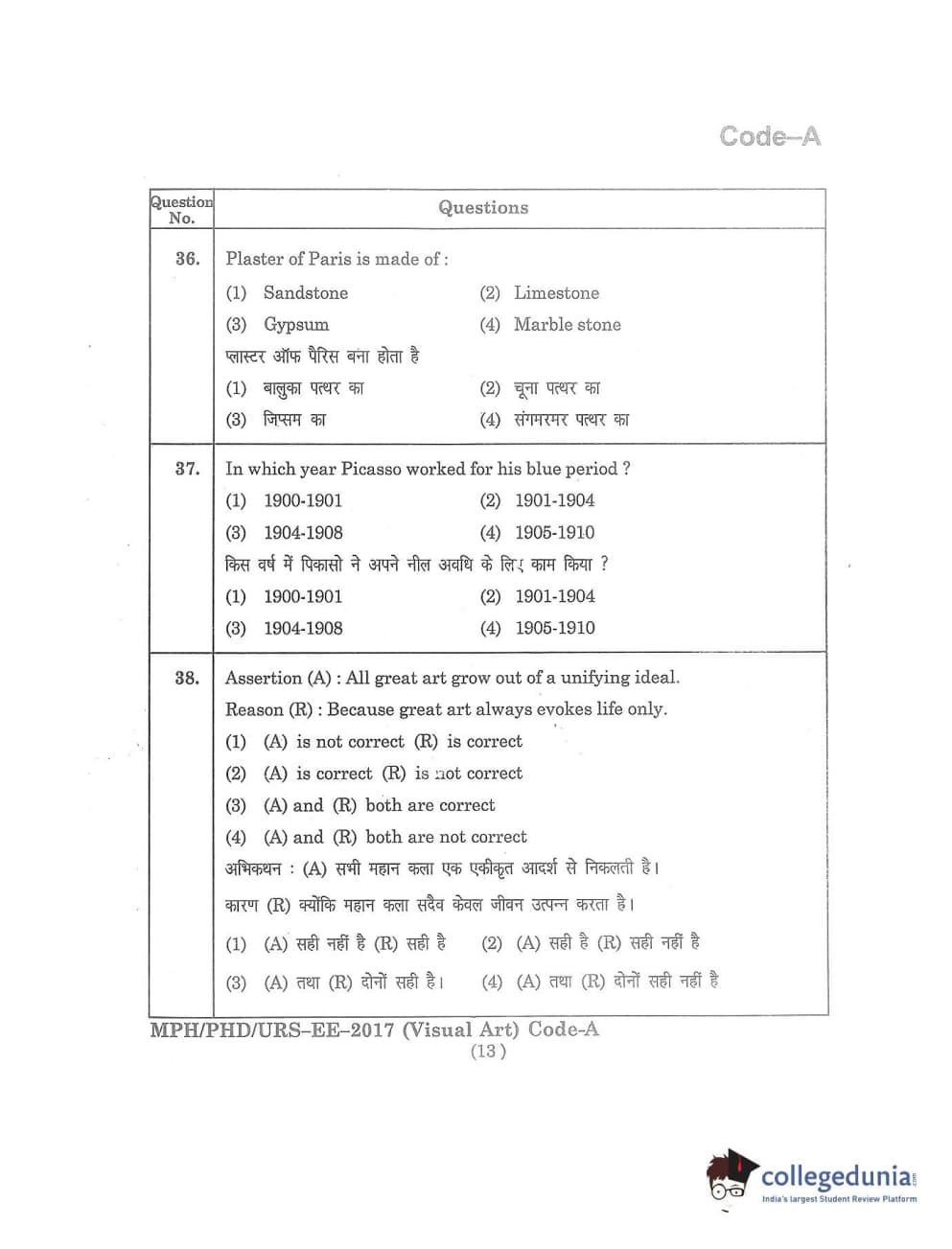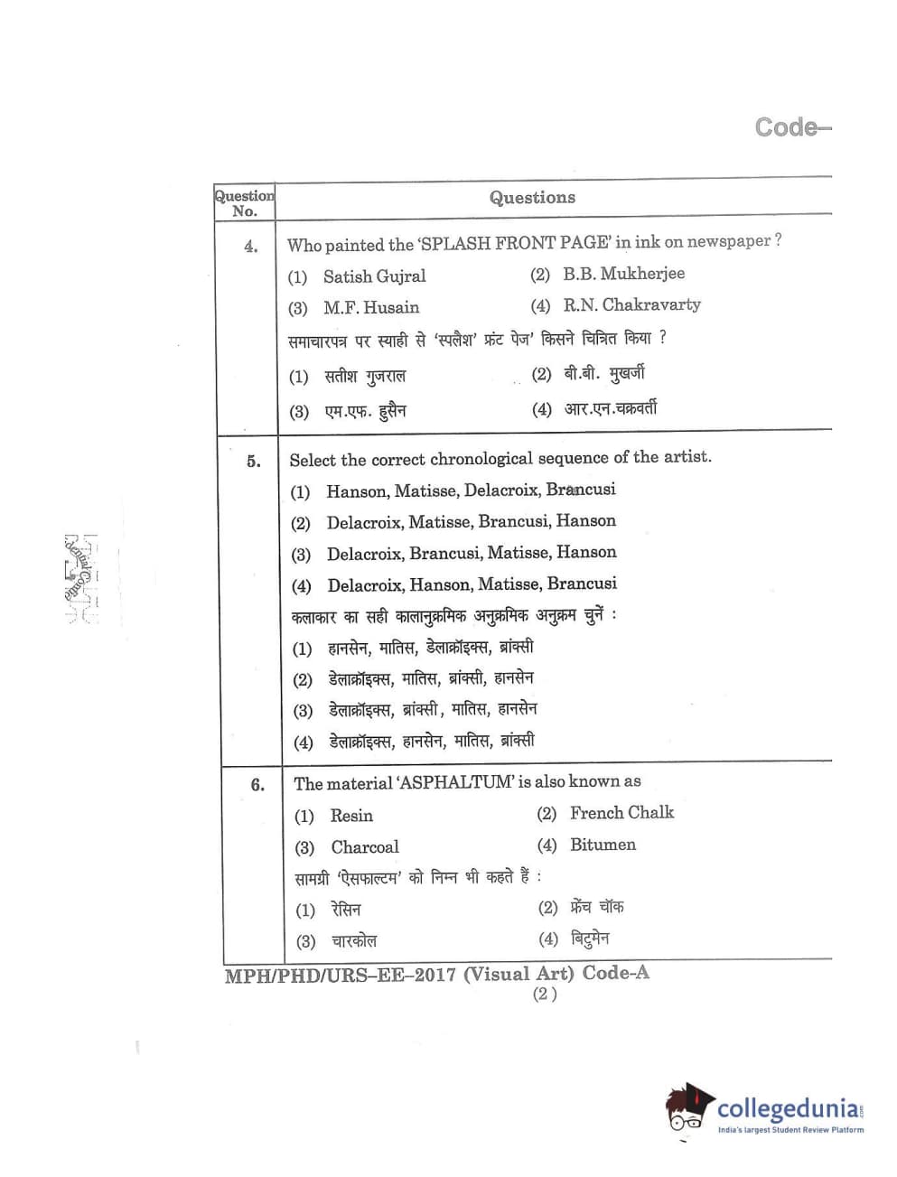 MDUCEE 2016 Ph.D/URS/M.Phil (Visual Arts) Set A Question Paper with Answer Key PDFs