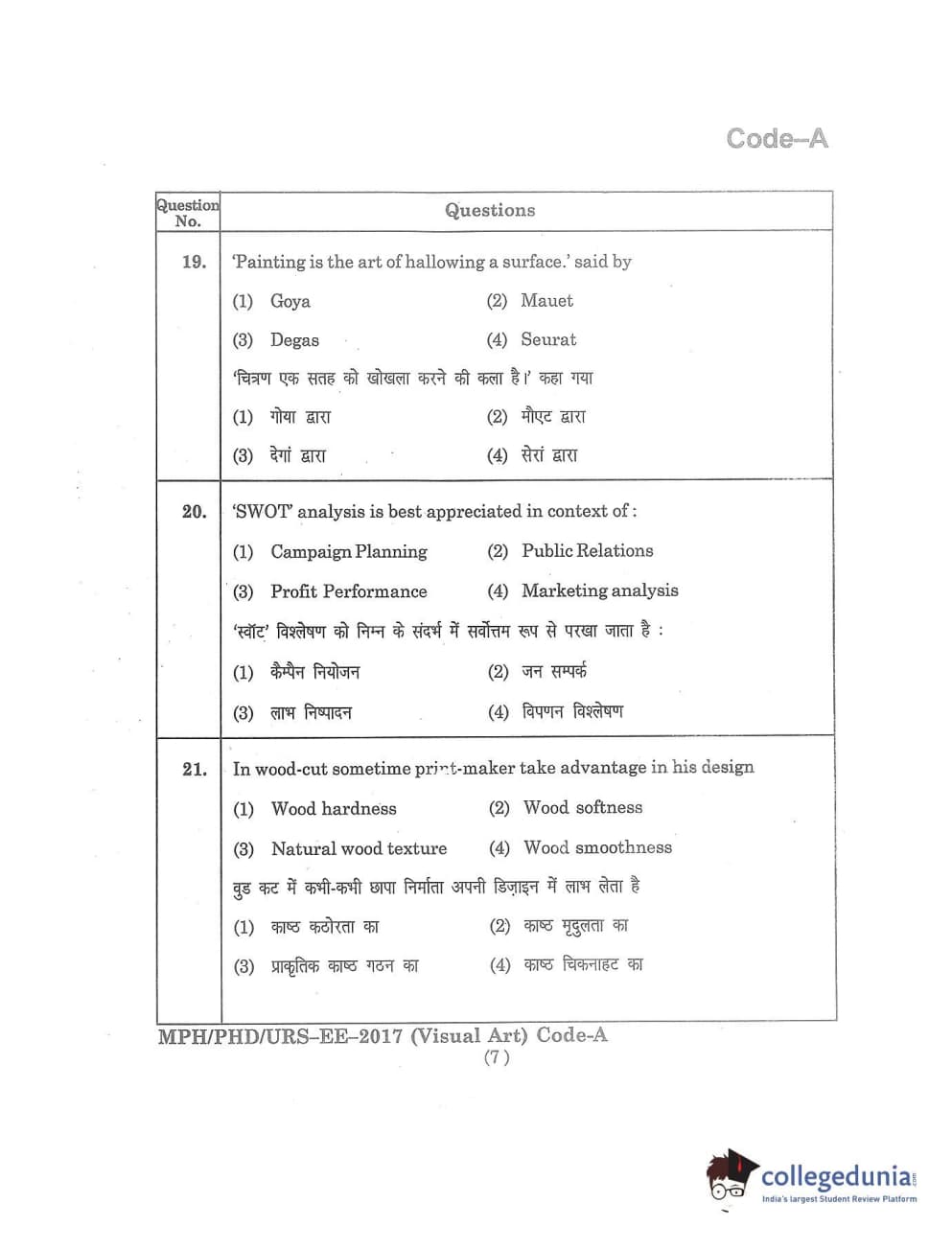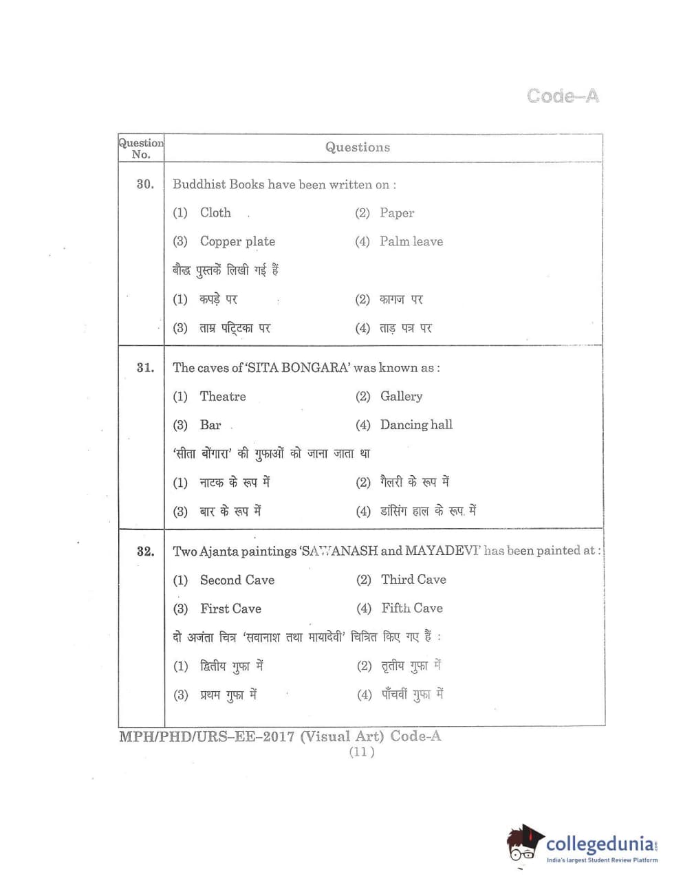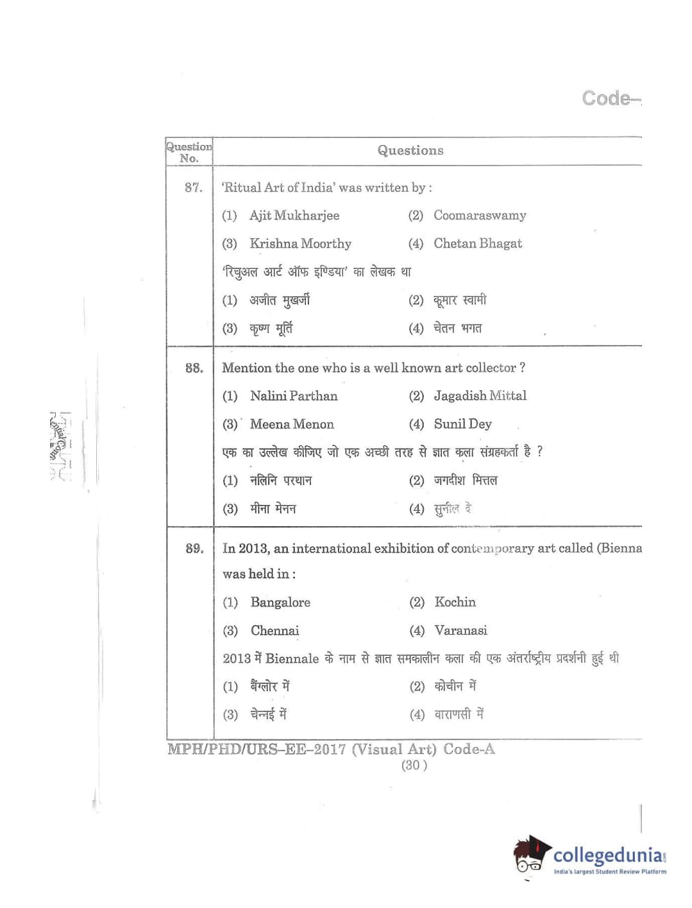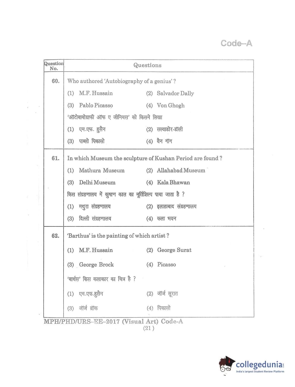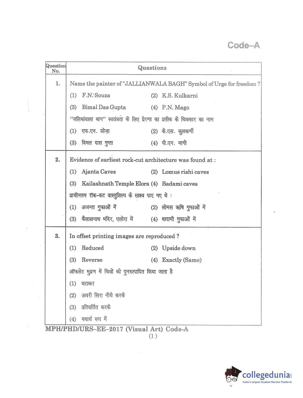 MDUCEE 2016 Ph.D/URS/M.Phil (Visual Arts) Set A Question Paper with Answer Key PDFs