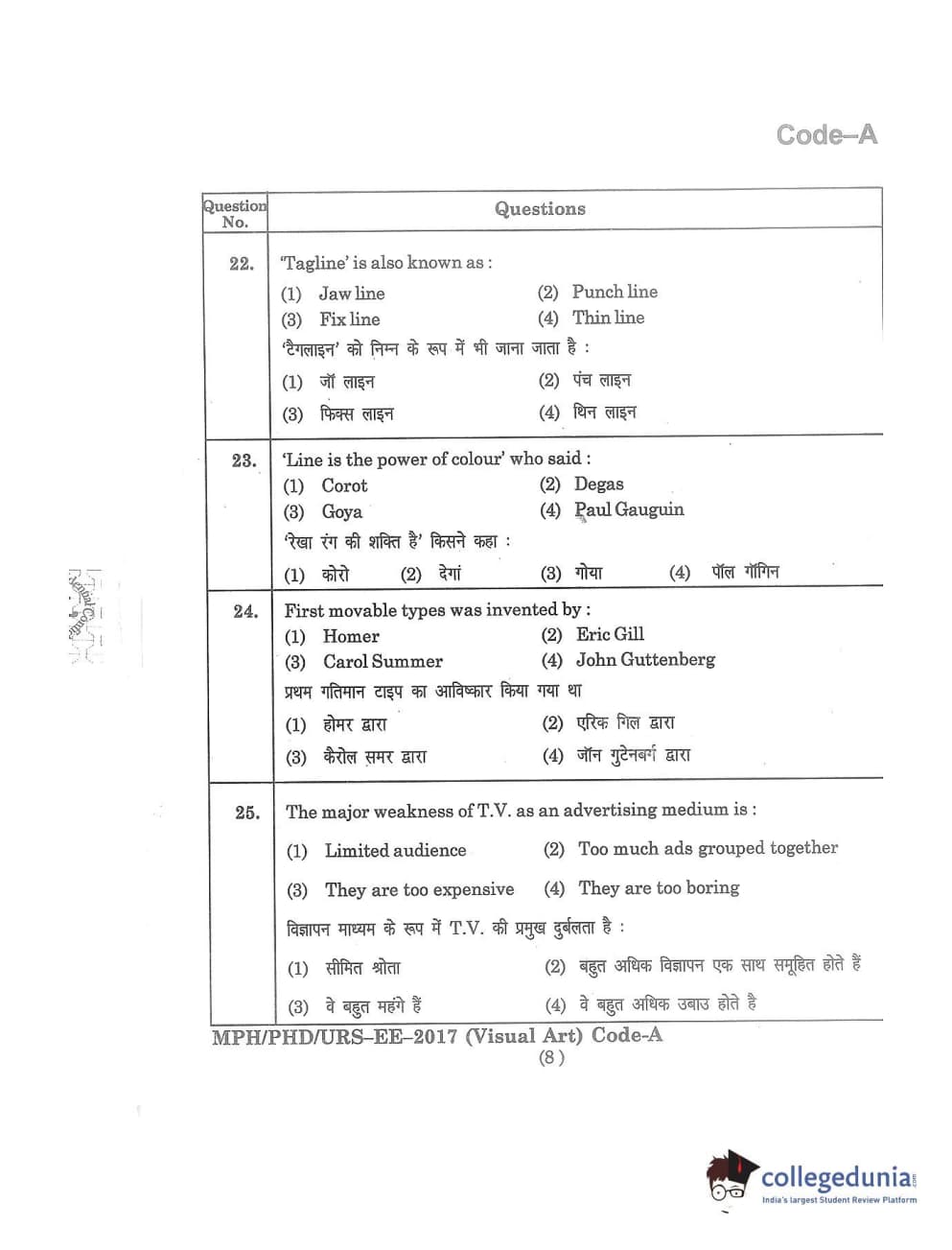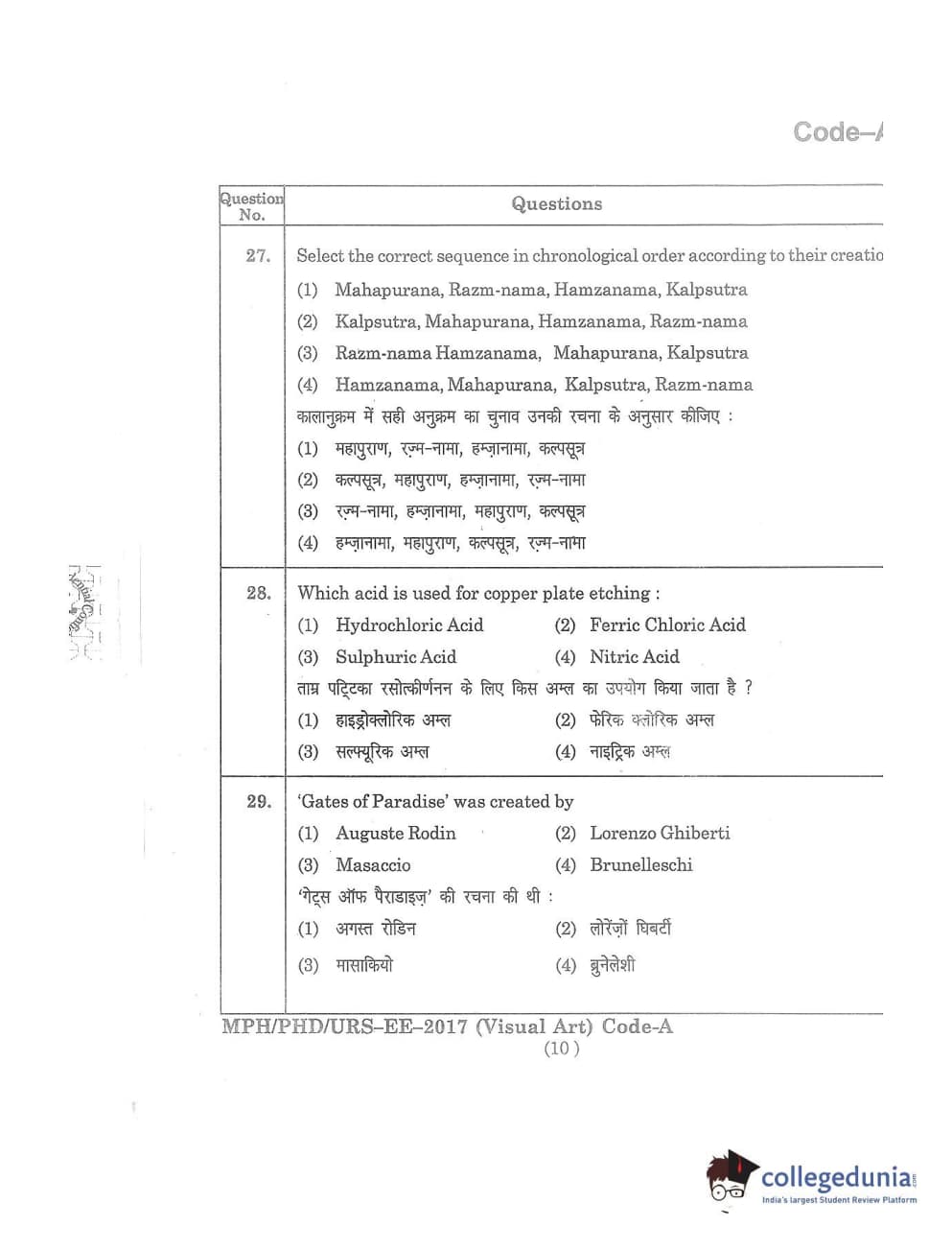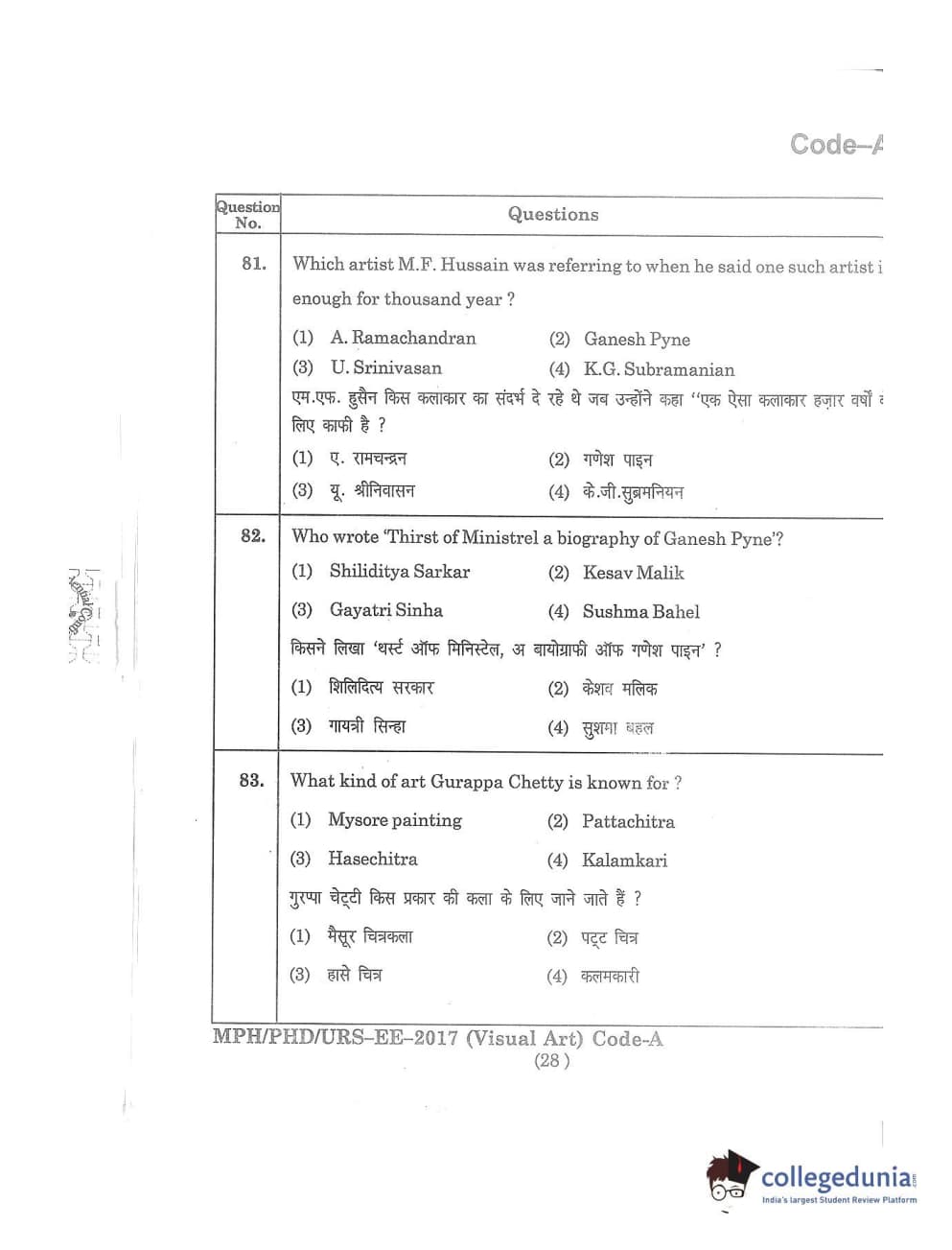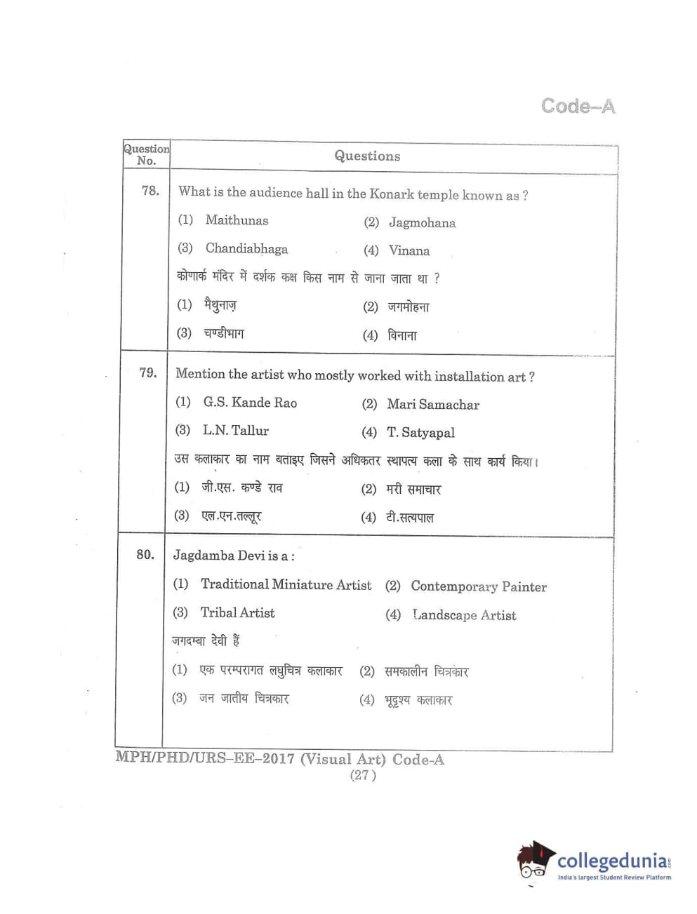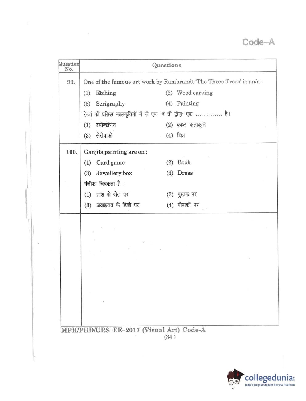 MDUCEE 2016 Ph.D/URS/M.Phil (Visual Arts) Set A Question Paper with Answer Key PDFs