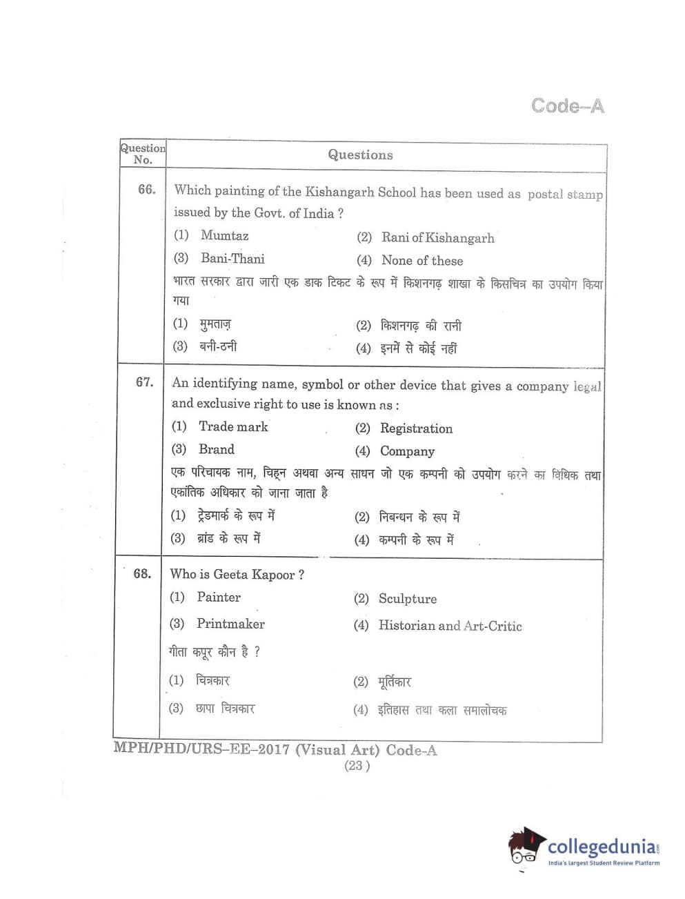 MDUCEE 2016 Ph.D/URS/M.Phil (Visual Arts) Set A Question paper with answer key pdf is available for download. The exam was successfully organized by Maharishi Dayanand University. The question paper comprised a total of 100 questions.