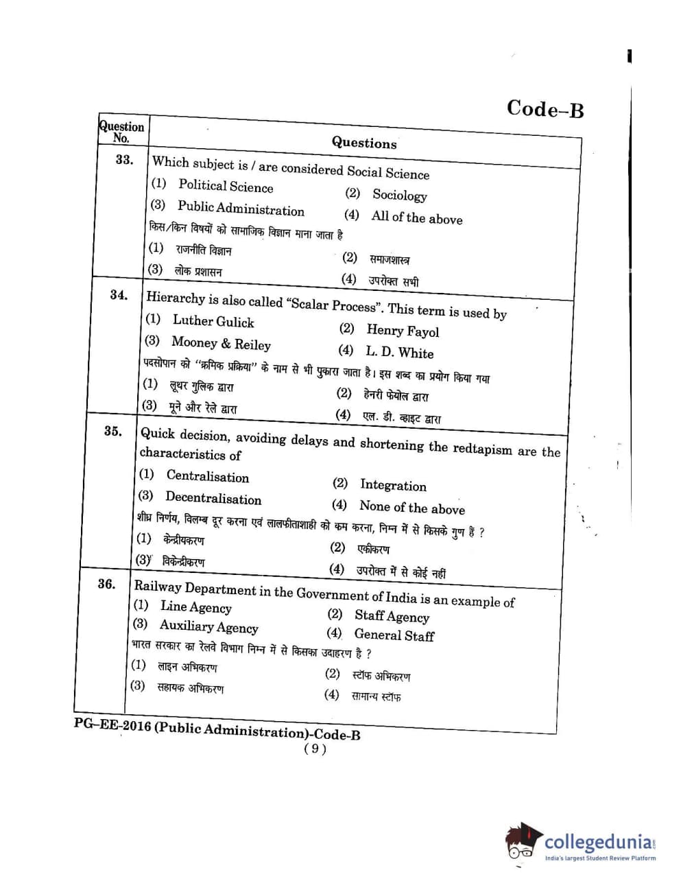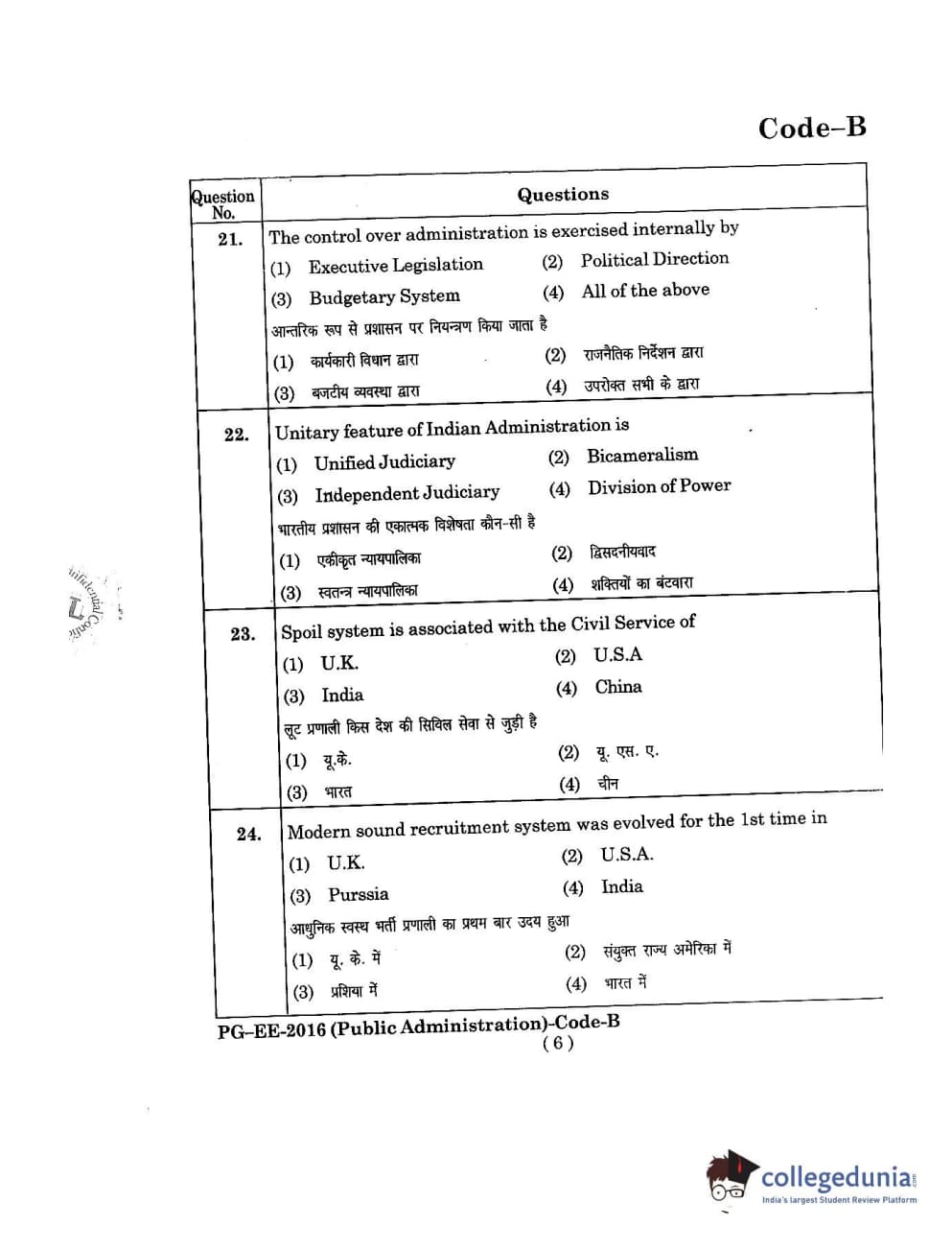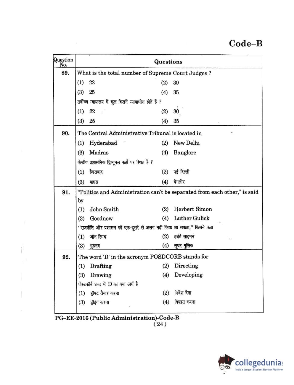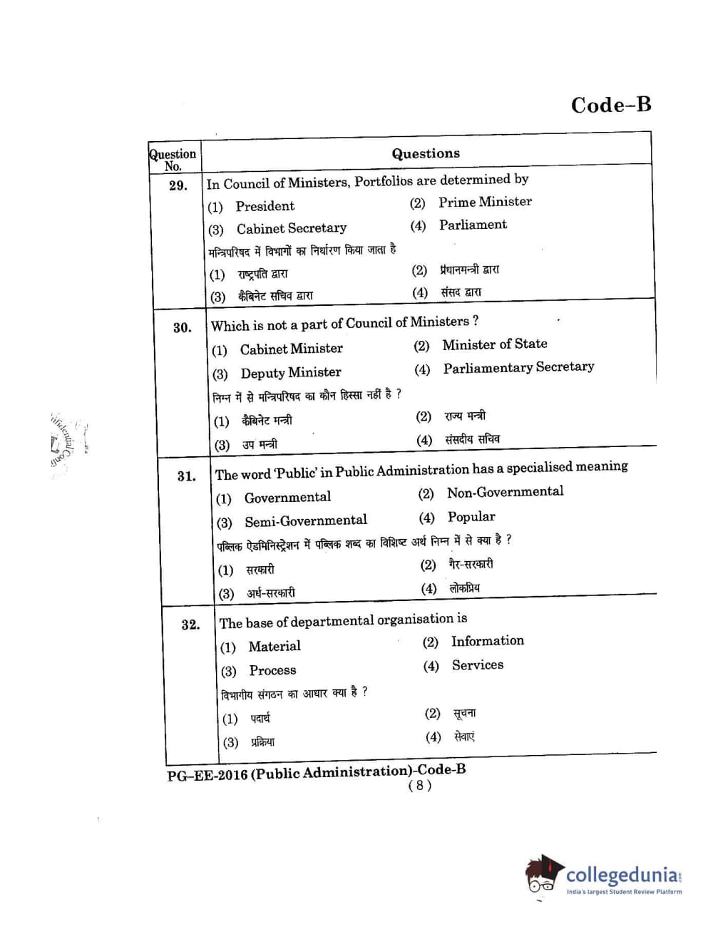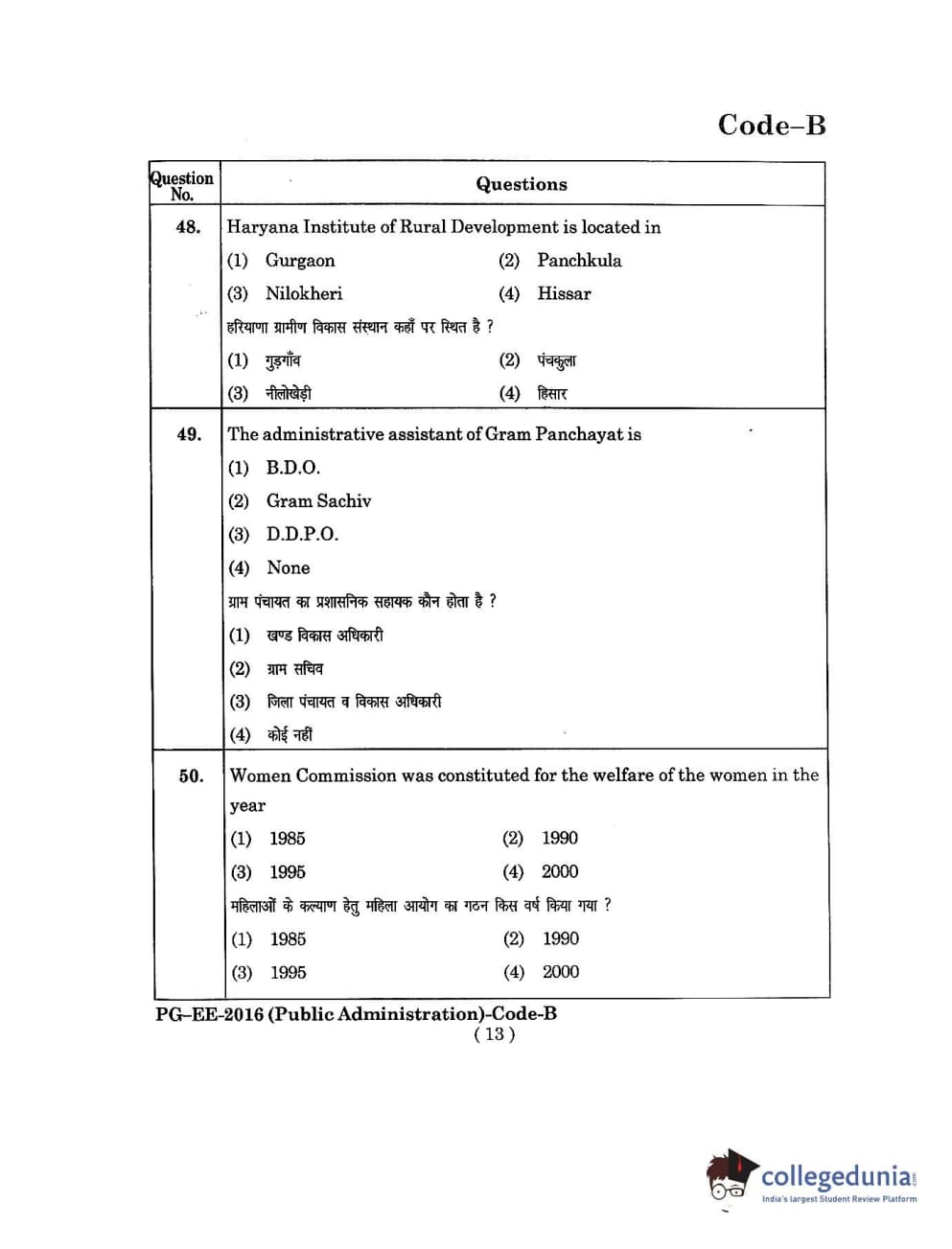 MDUCEE 2016 Public Administration Set B Question Paper with Answer Key PDFs