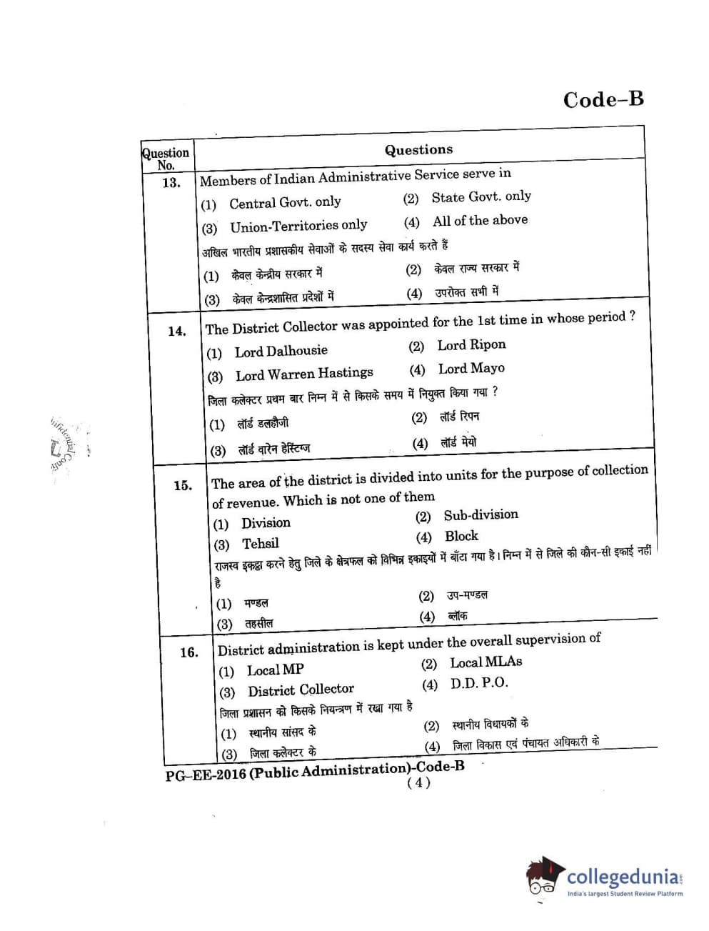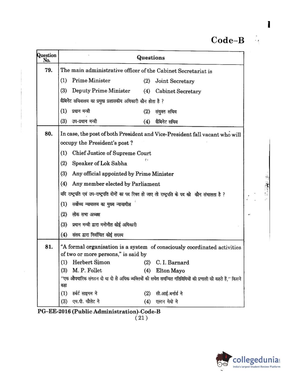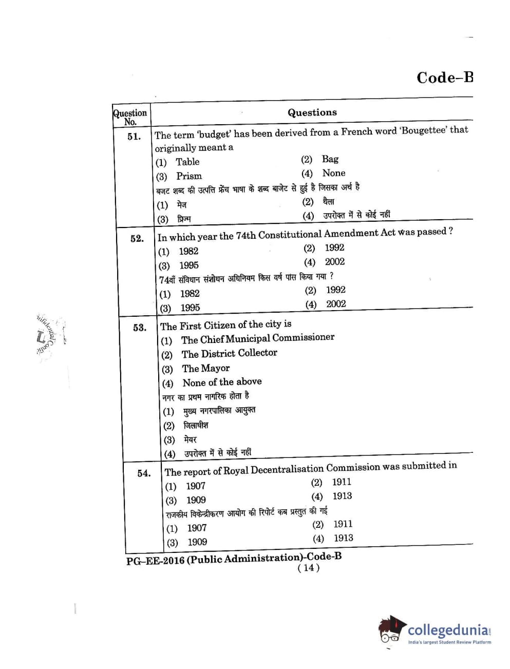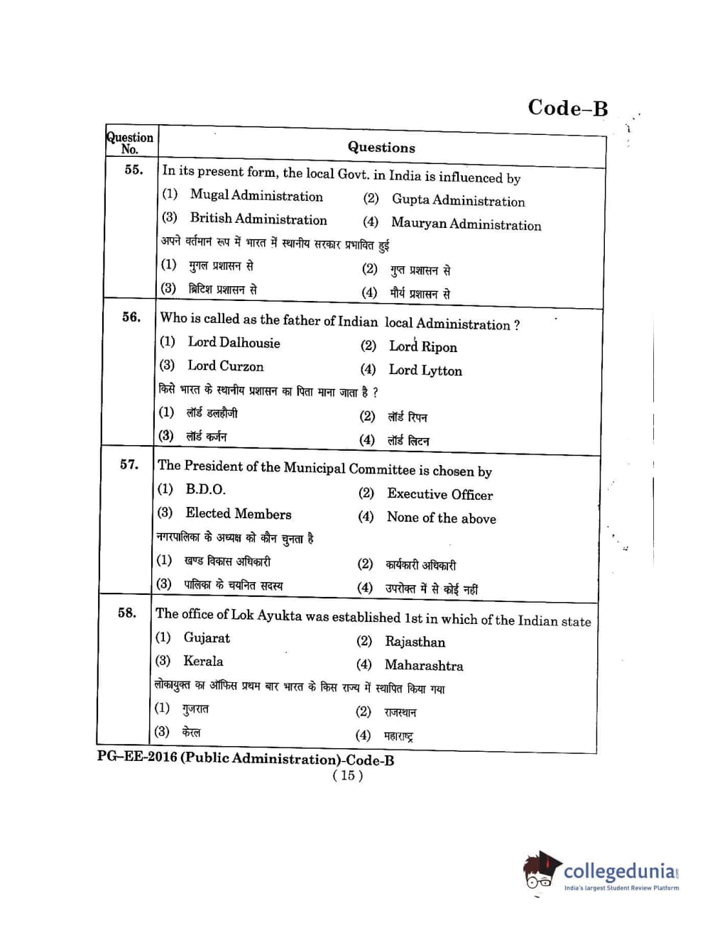 MDUCEE 2016 Public Administration Set B Question Paper with Answer Key PDFs
