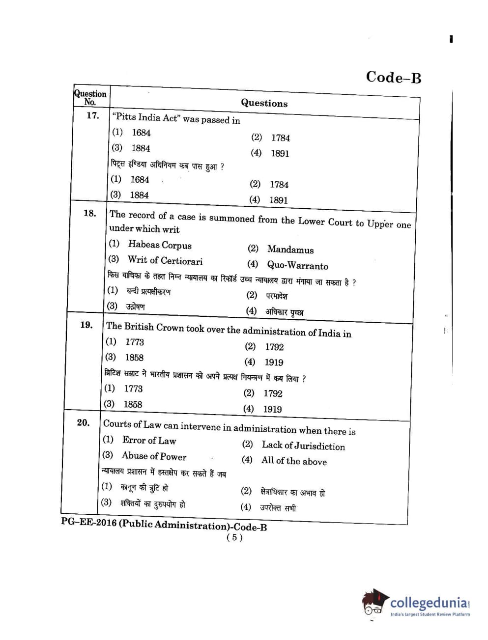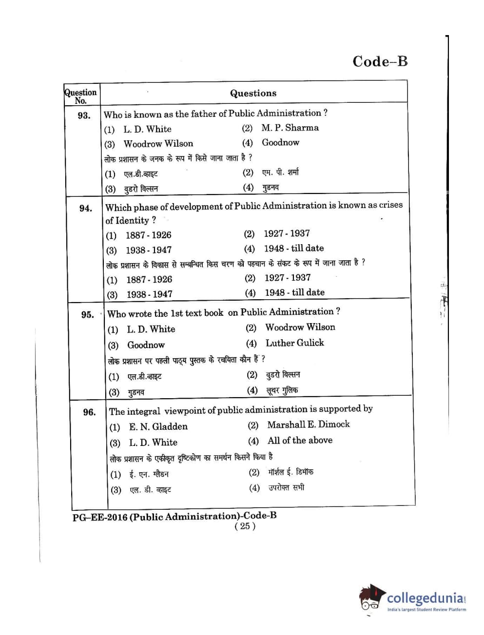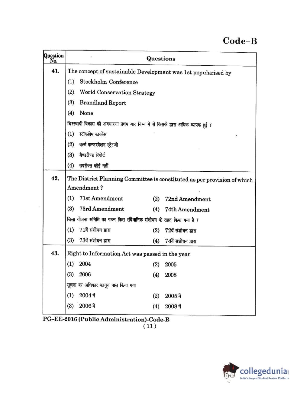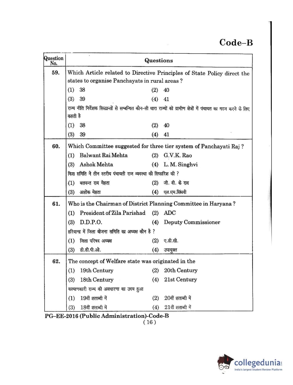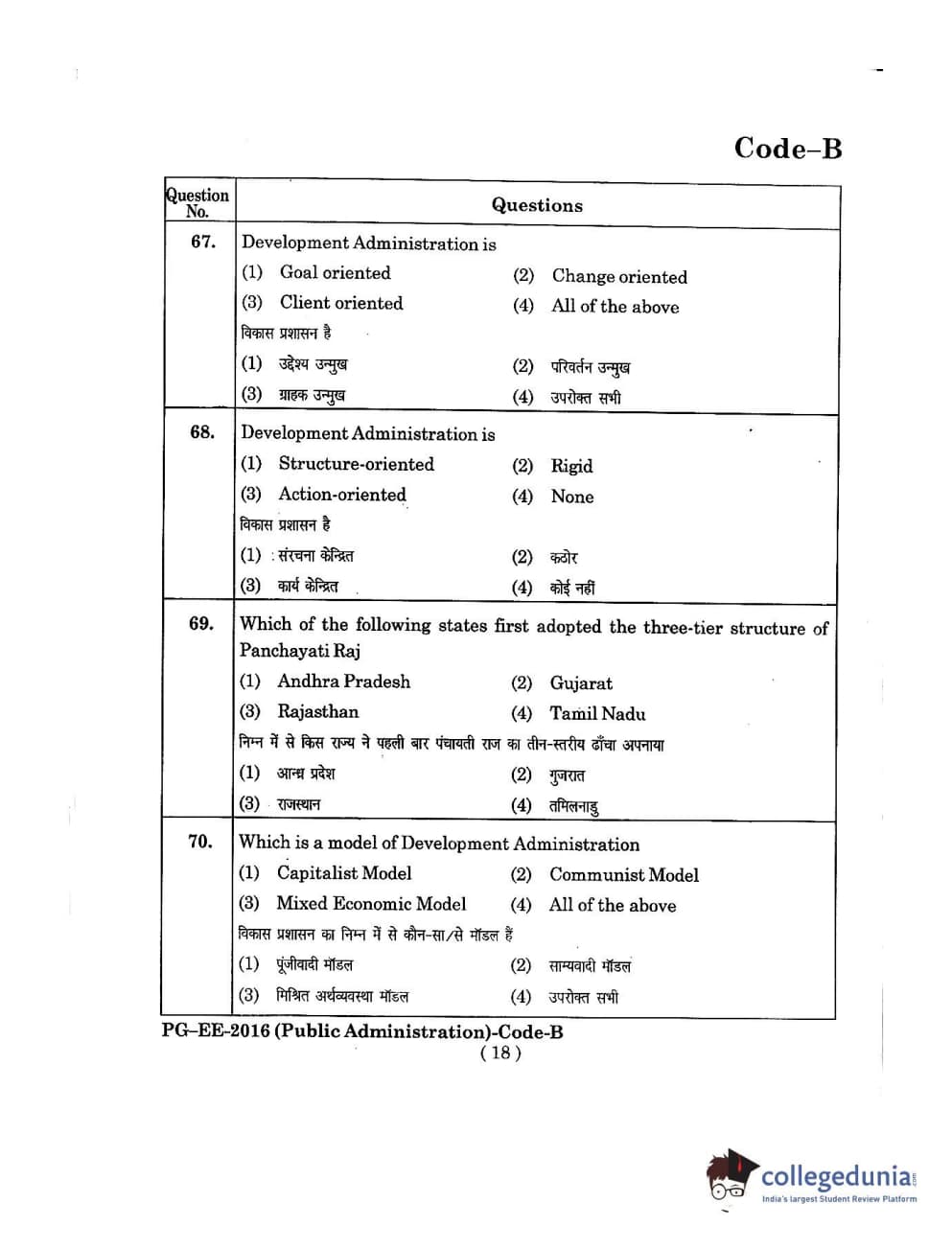 MDUCEE 2016 Public Administration Set B Question Paper with Answer Key PDFs