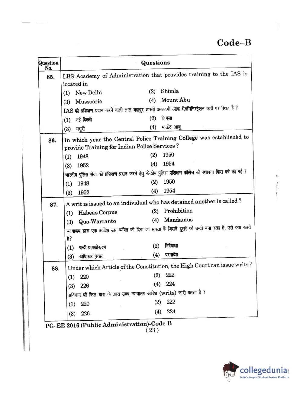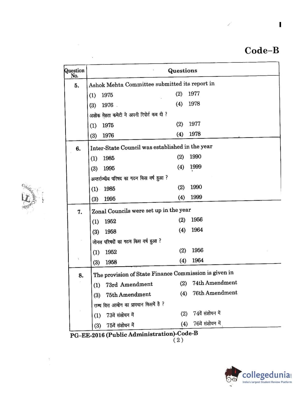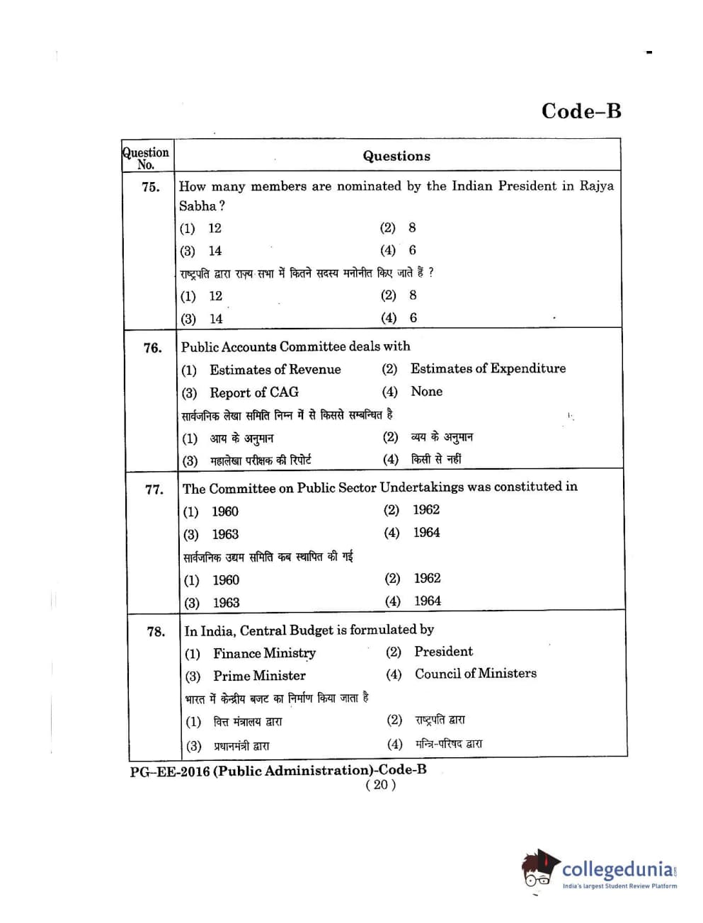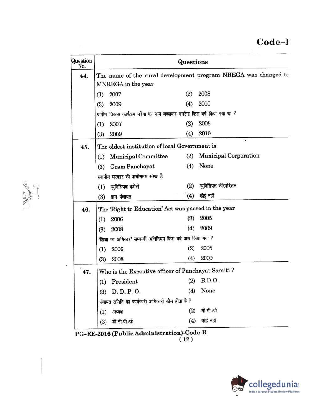 | MDUCEE 2016 Public Administration Set B Question Paper PDF | MDUCEE 2016 Public Administration Set B Answer Key PDF |