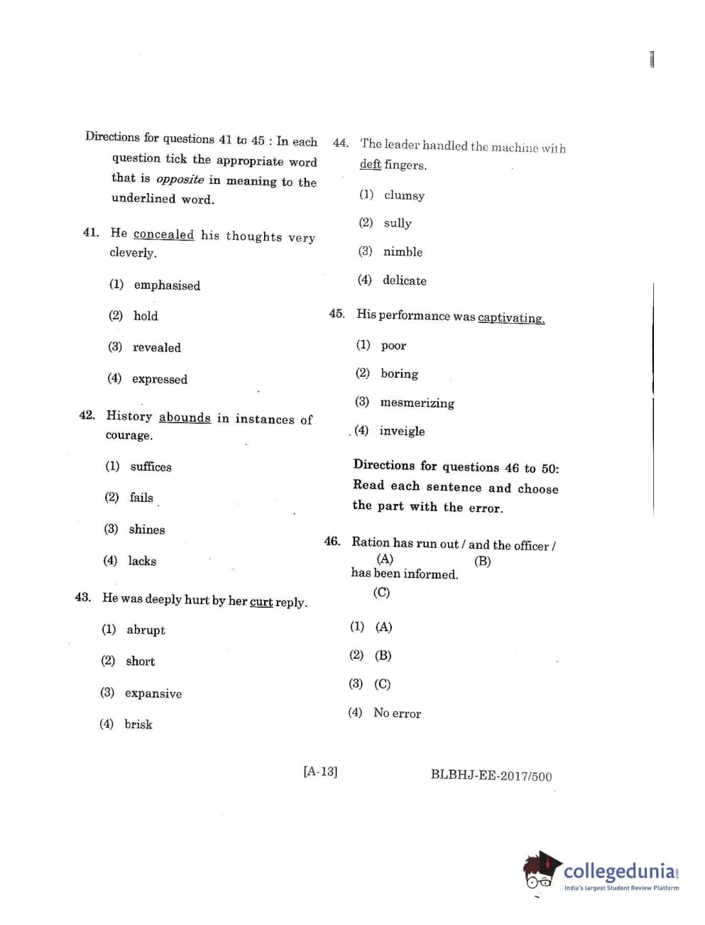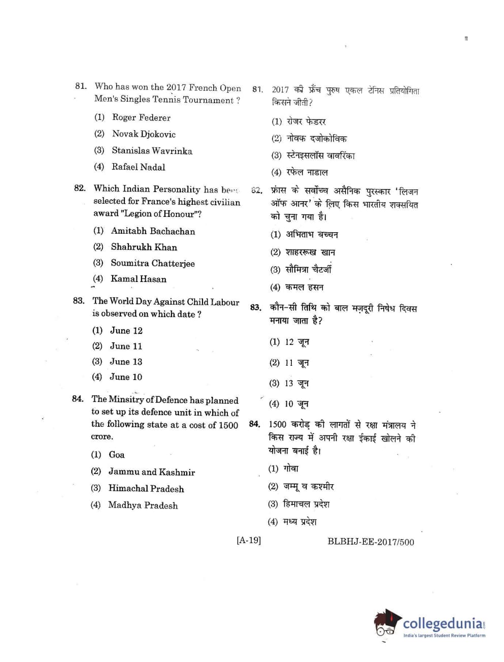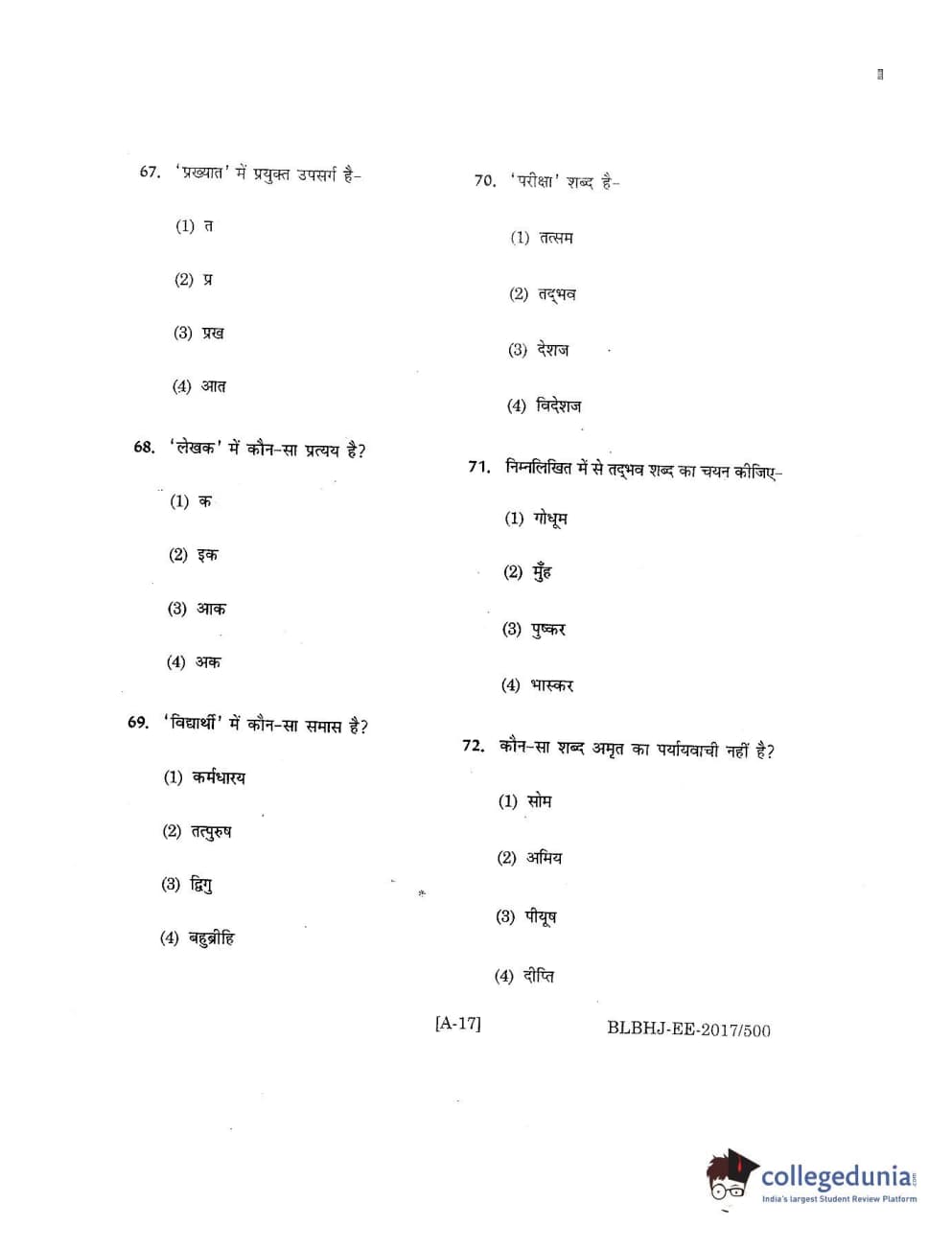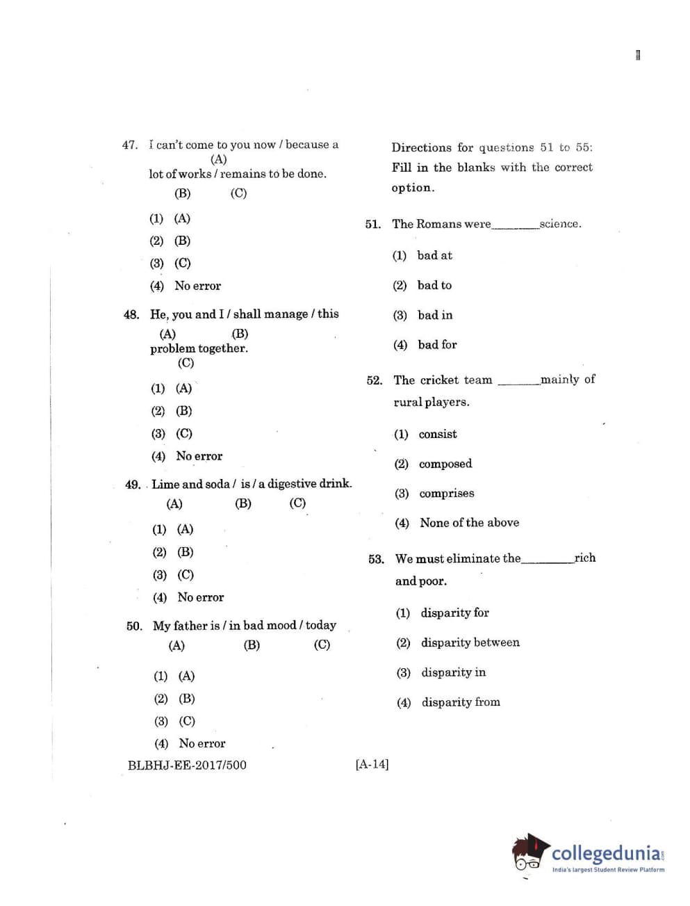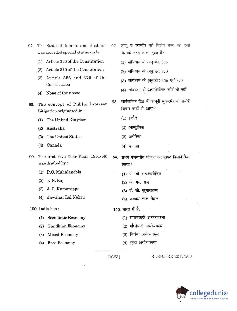 MDUCEE 2017 B.A. LL.B (Hons) 5 Years Integrated Set A Question Paper with Answer Key PDFs