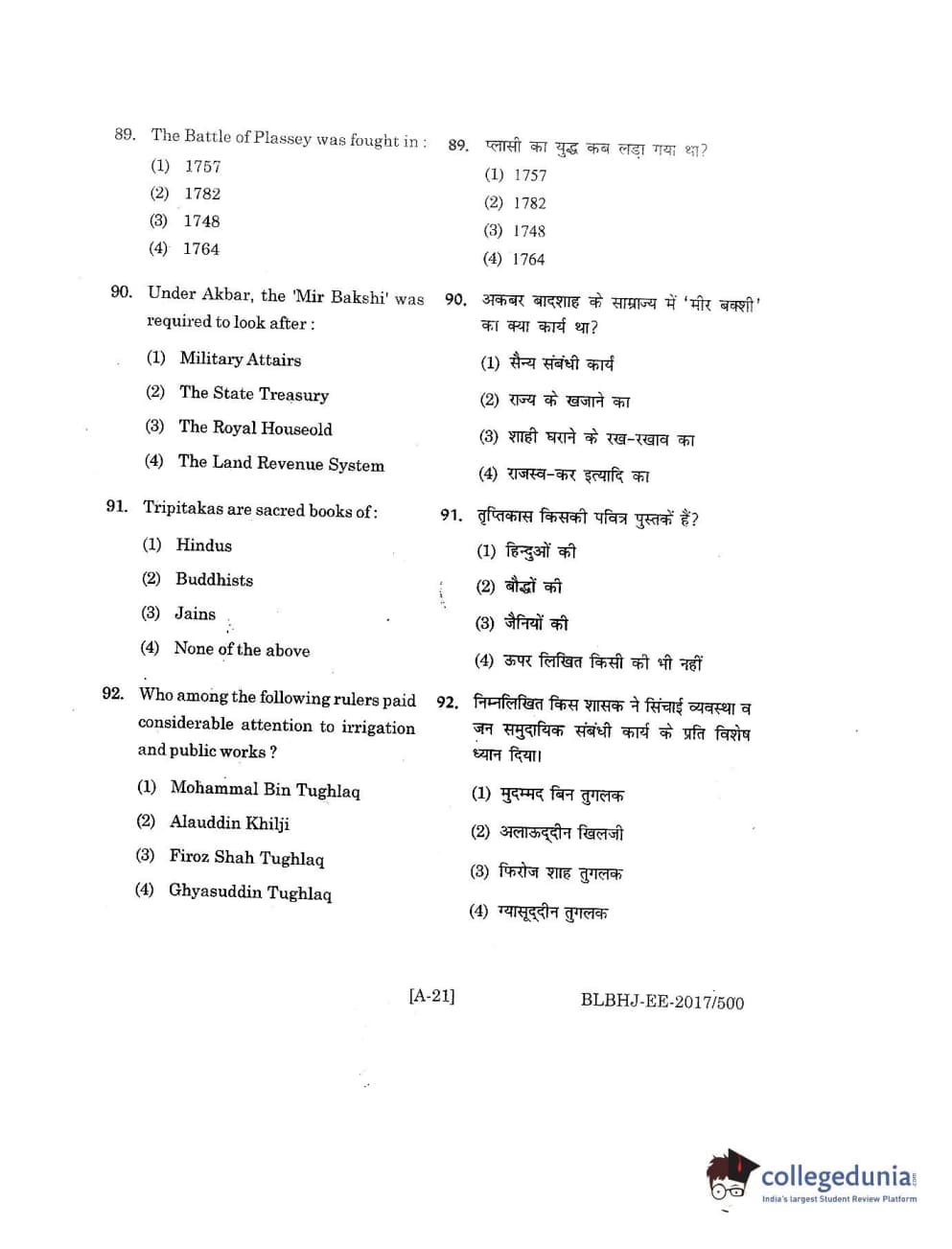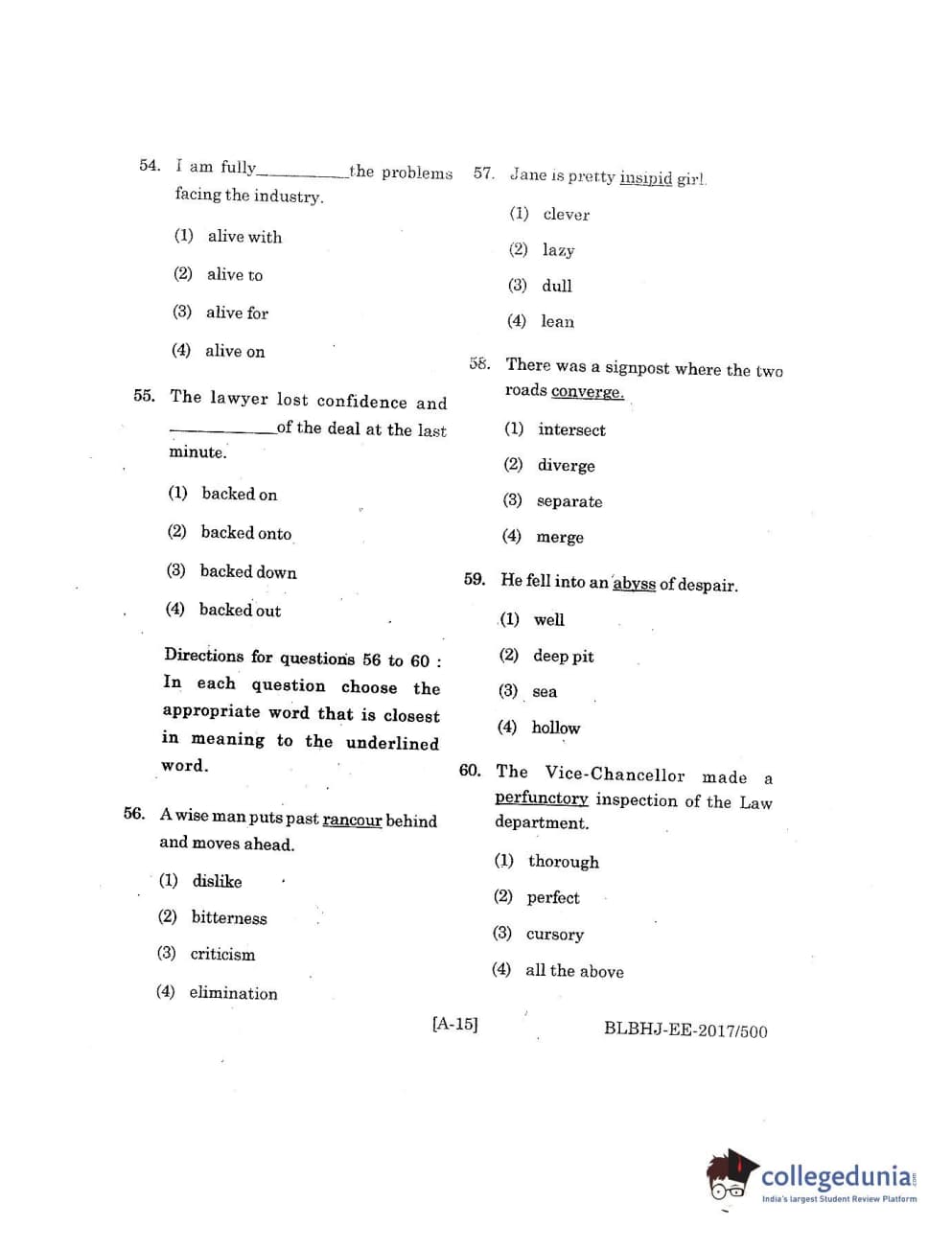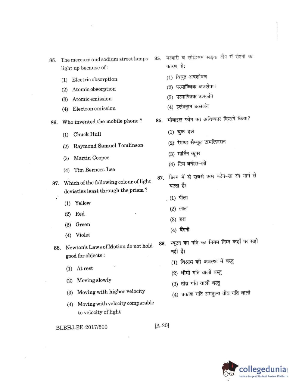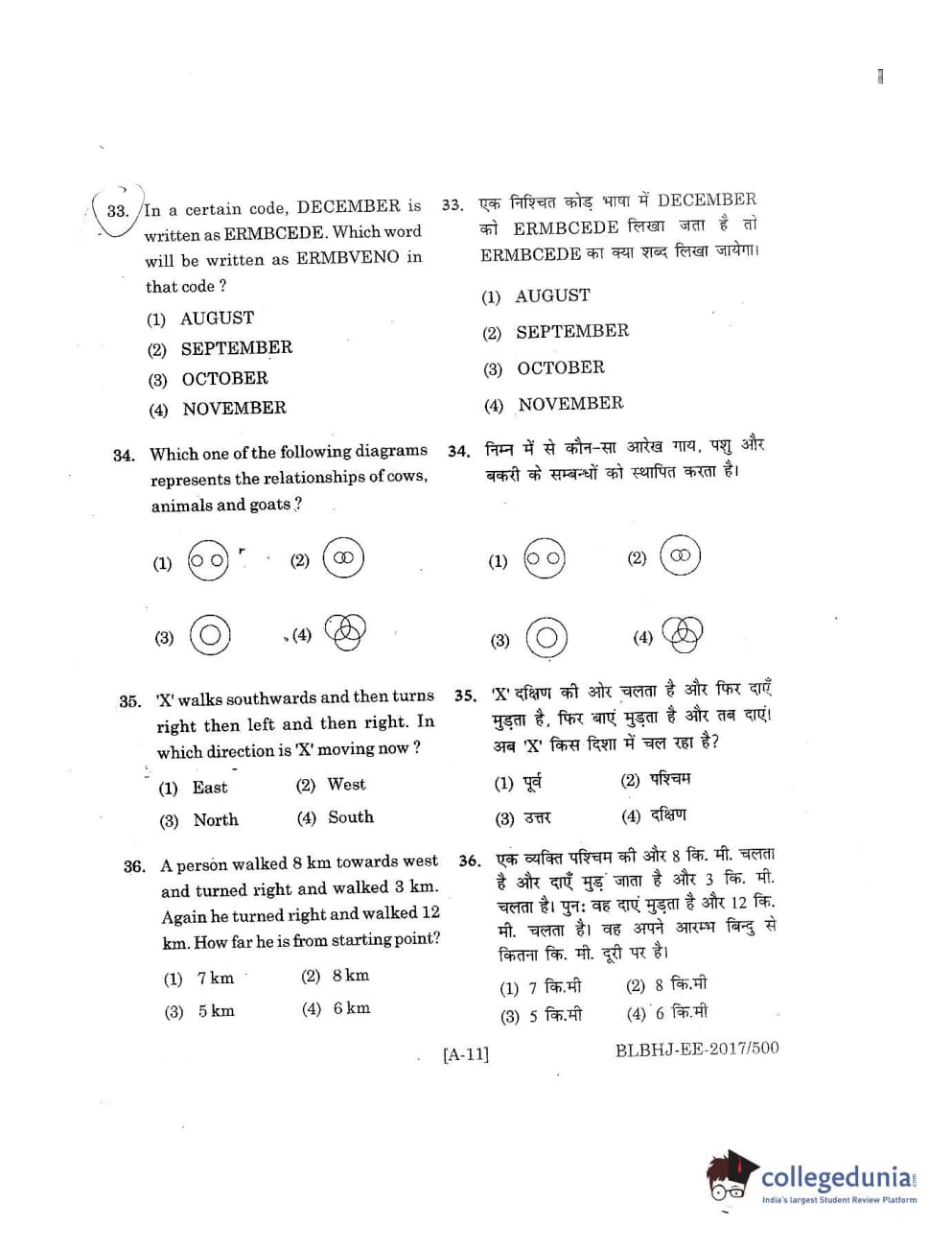 MDUCEE 2017 B.A. LL.B (Hons) 5 Years Integrated Set A Question Paper with Answer Key PDFs