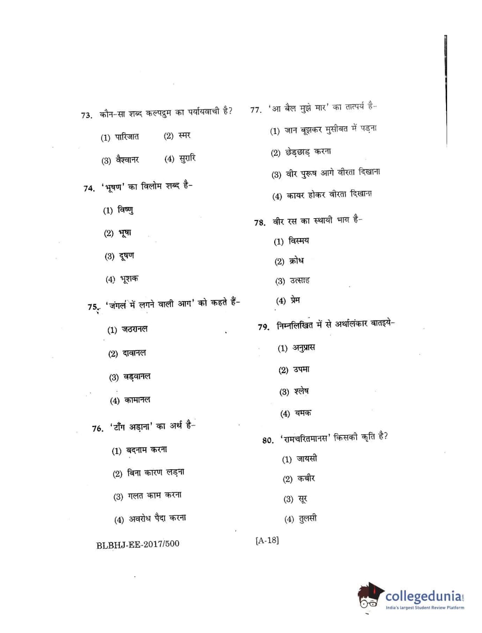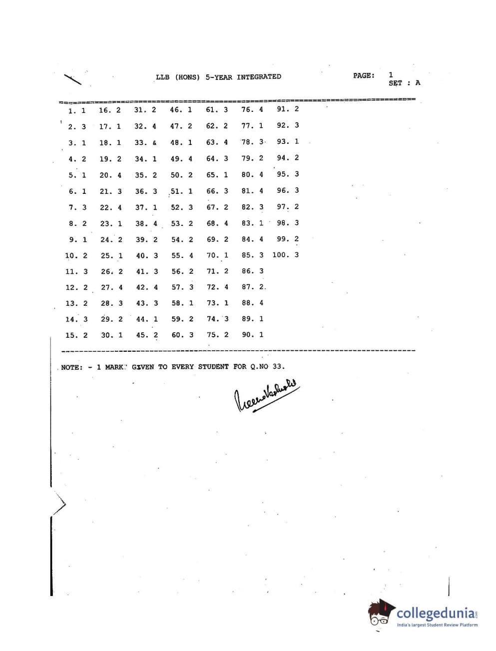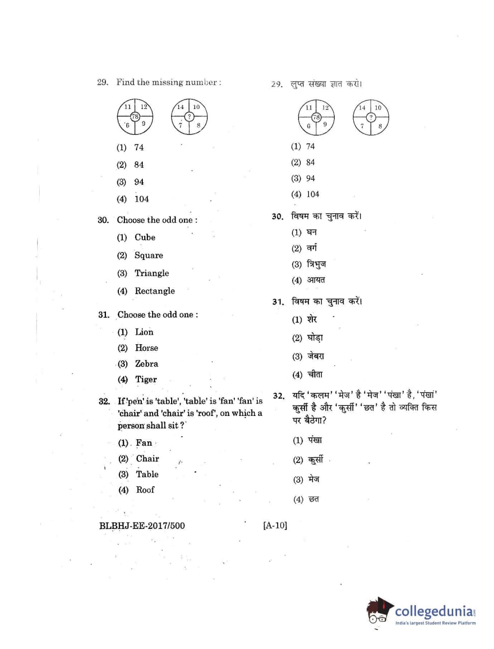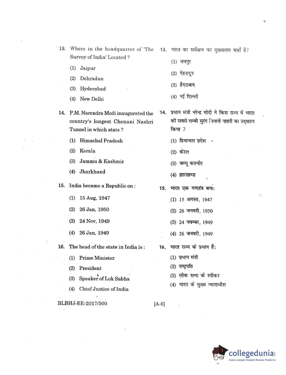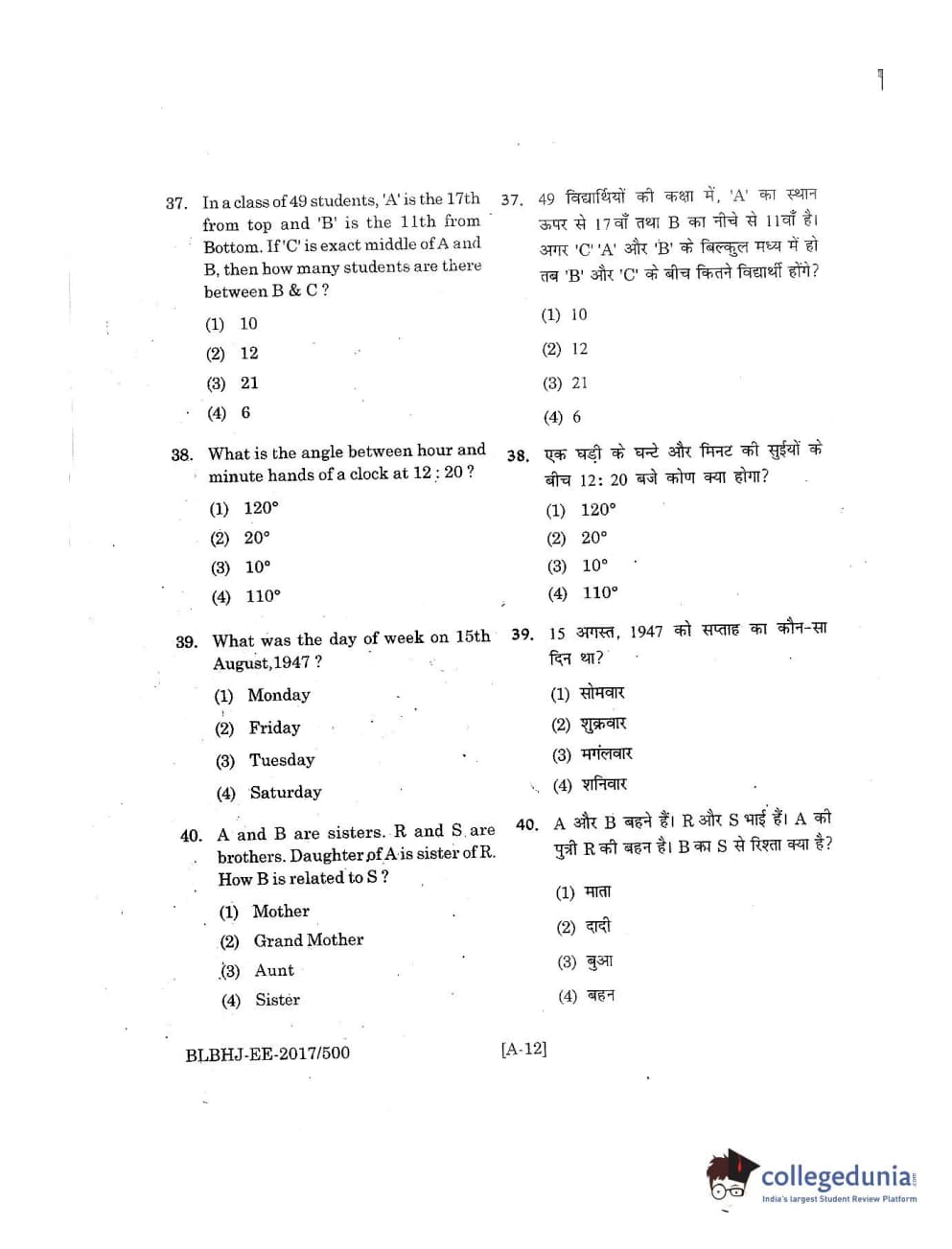 MDUCEE 2017 B.A. LL.B (Hons) 5 Years Integrated Set A Question Paper with Answer Key PDFs