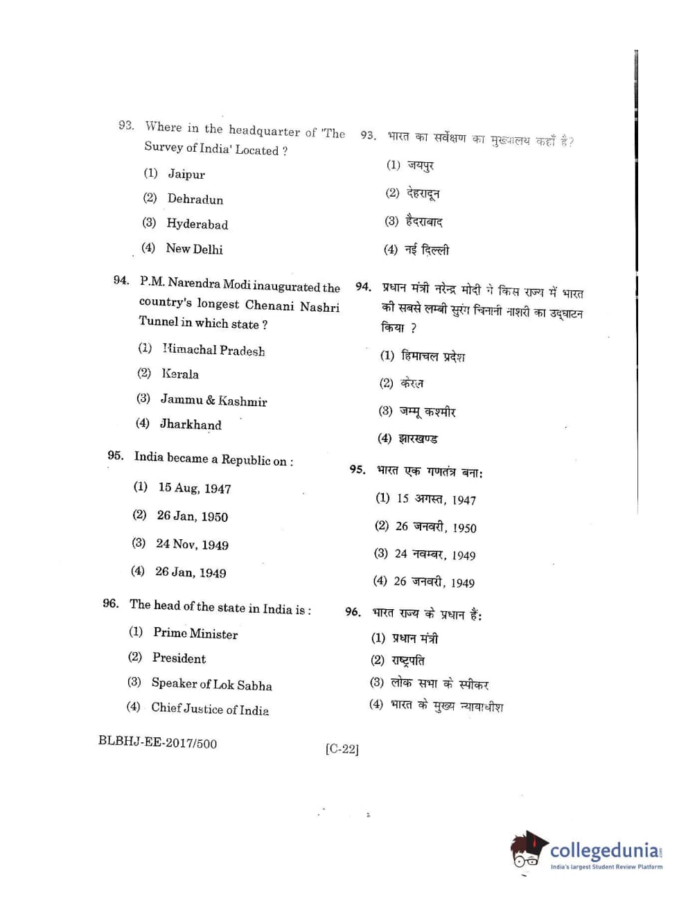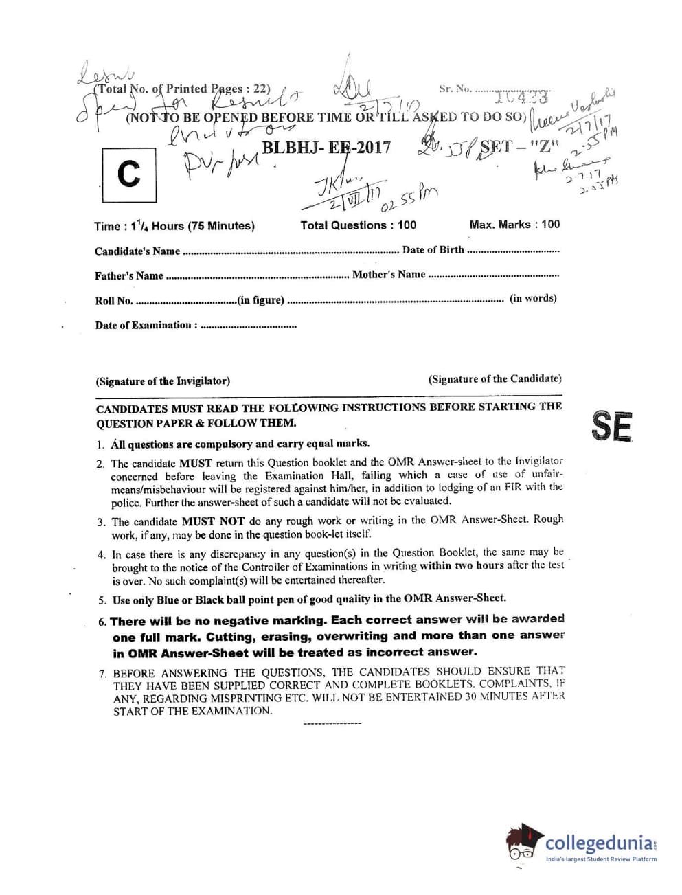 MDUCEE 2017 B.A. LL.B (Hons) 5 Years Integrated Set C Question paper with answer key pdf is available for download. The exam was successfully organized by Maharishi Dayanand University. The question paper comprised a total of 100 questions.