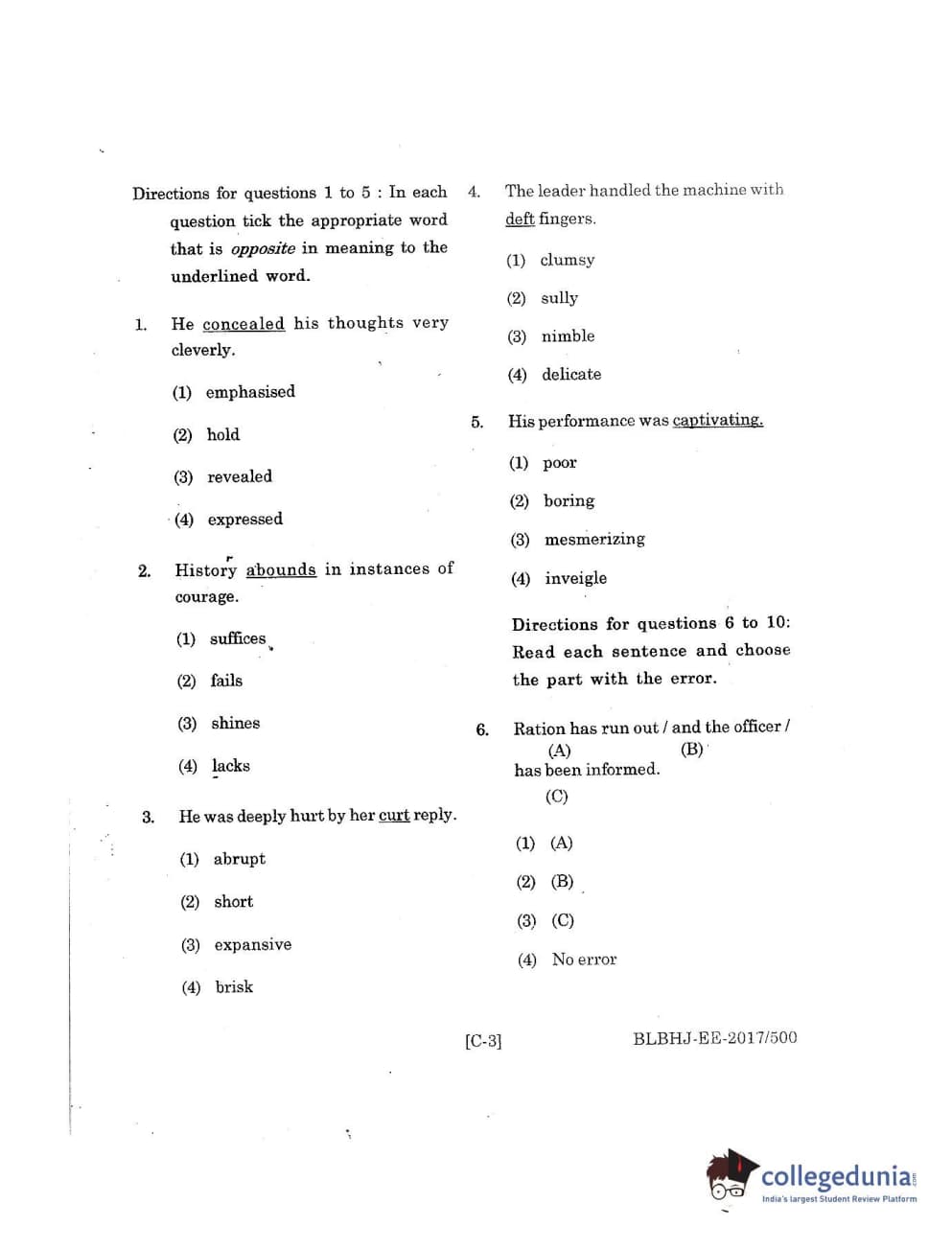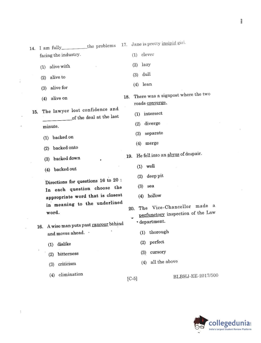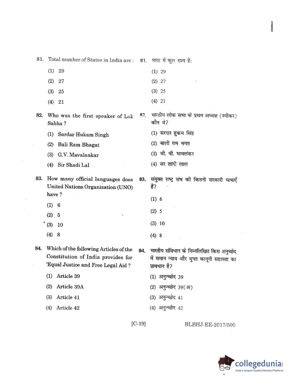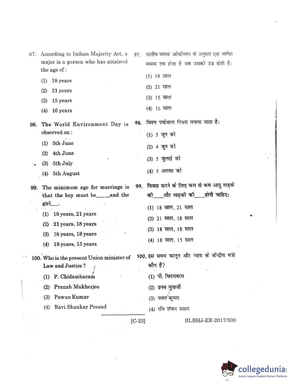 MDUCEE 2017 B.A. LL.B (Hons) 5 Years Integrated Set C Question Paper with Answer Key PDFs