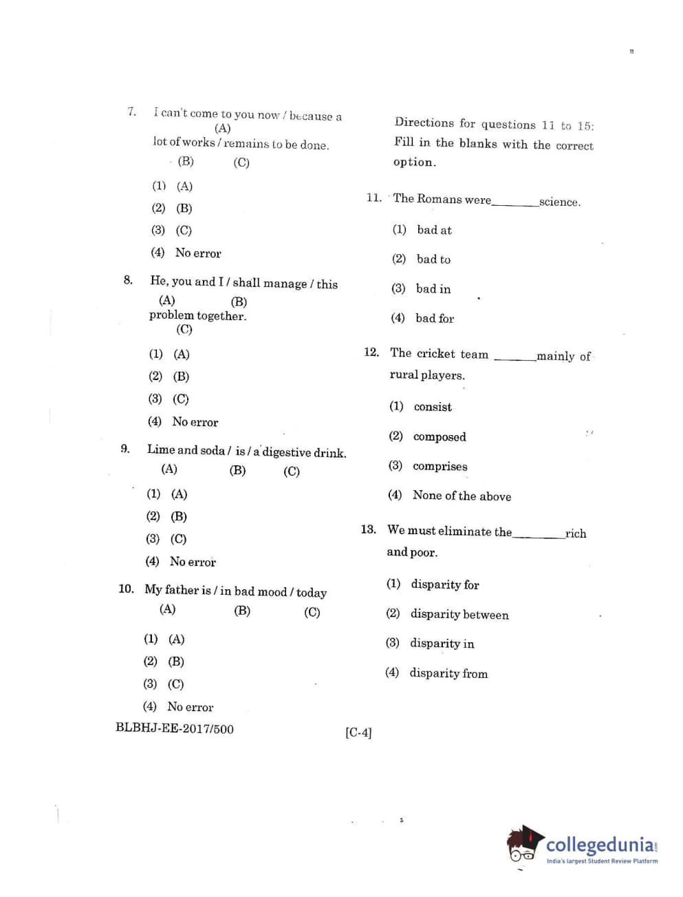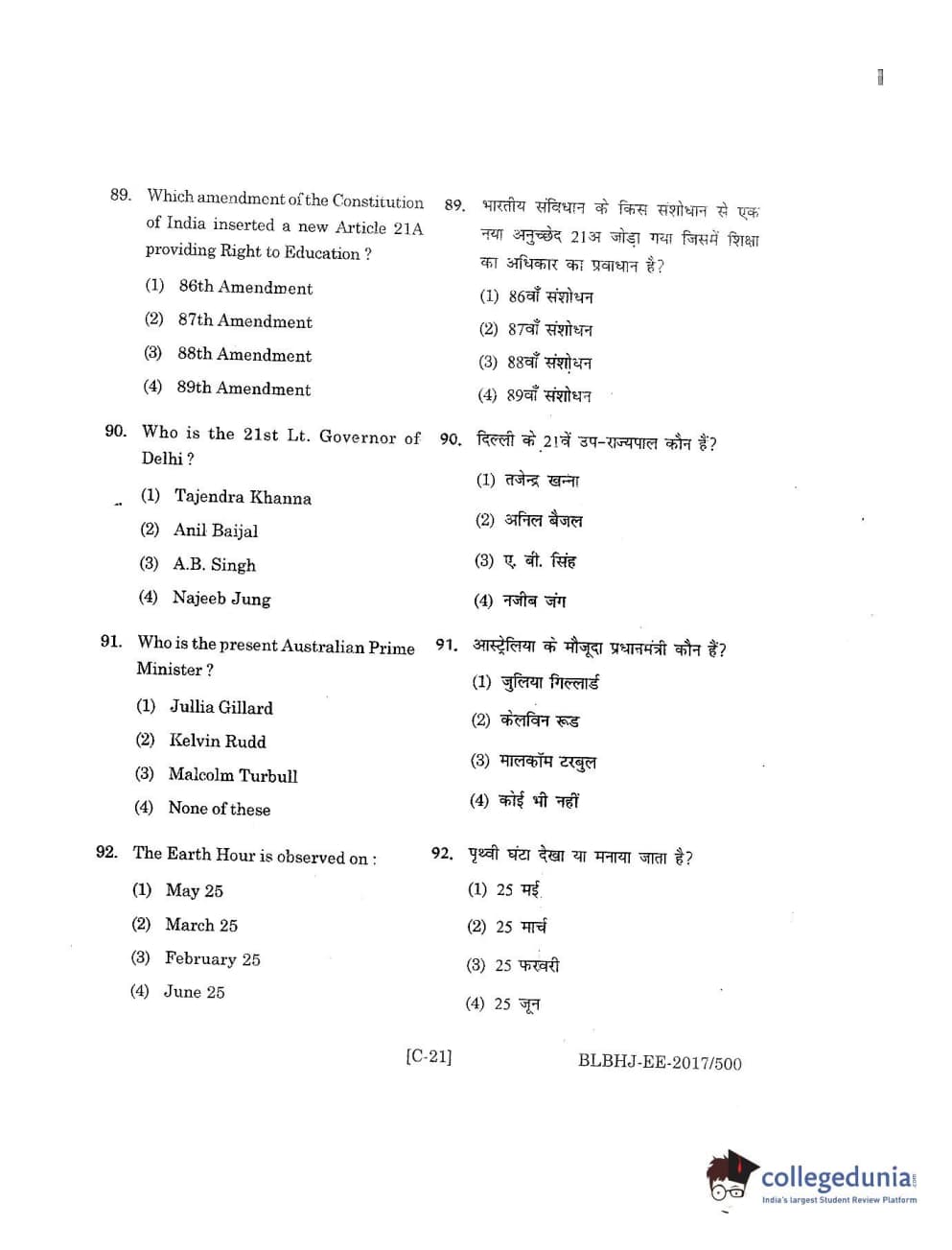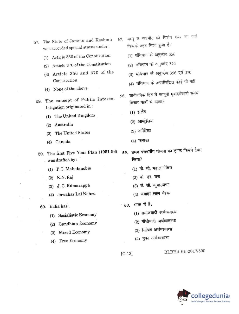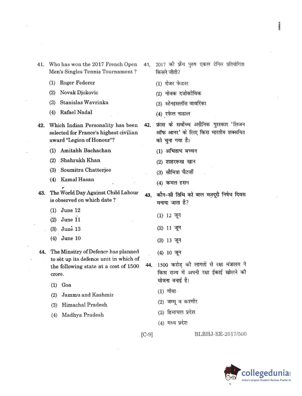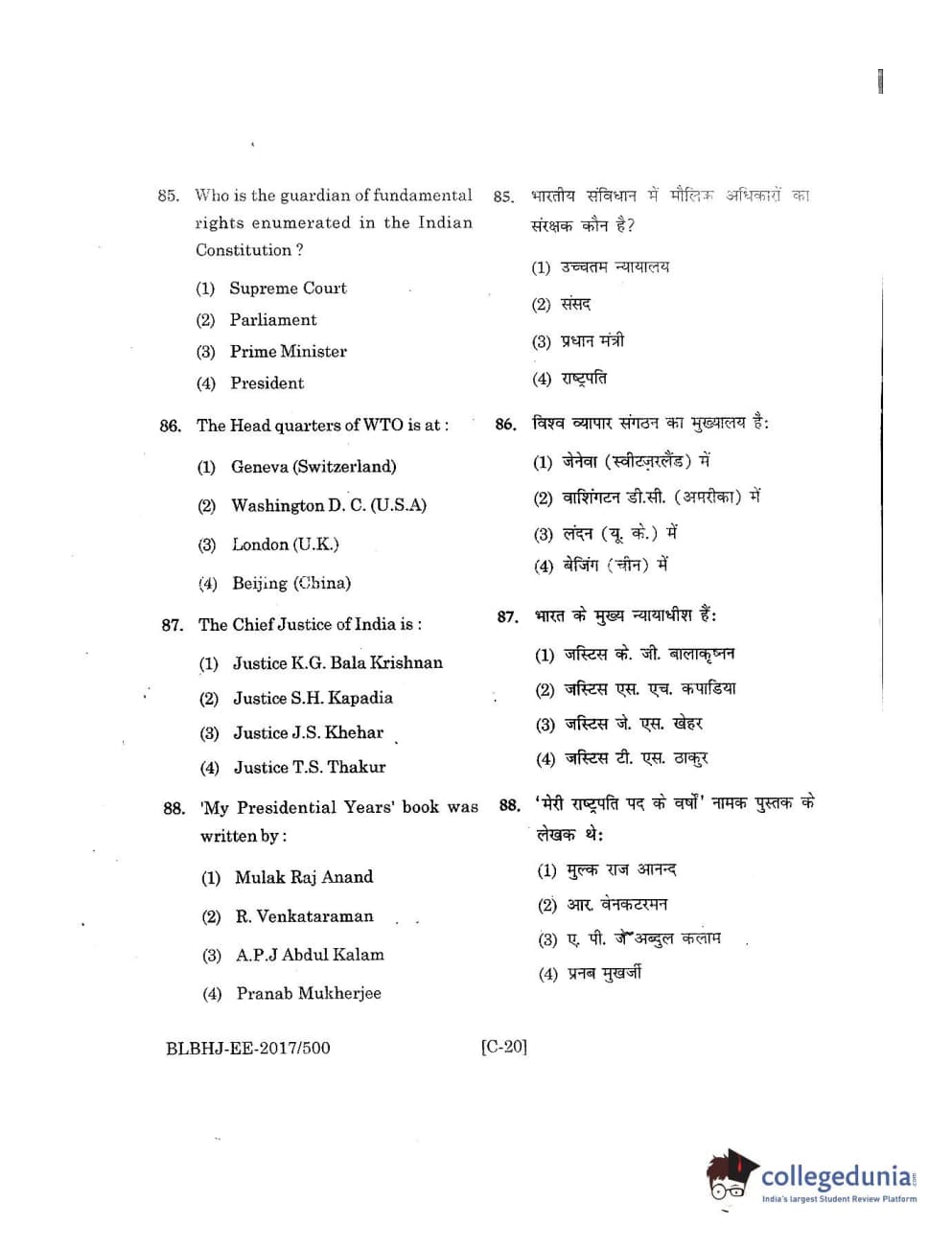 MDUCEE 2017 B.A. LL.B (Hons) 5 Years Integrated Set C Question Paper with Answer Key PDFs