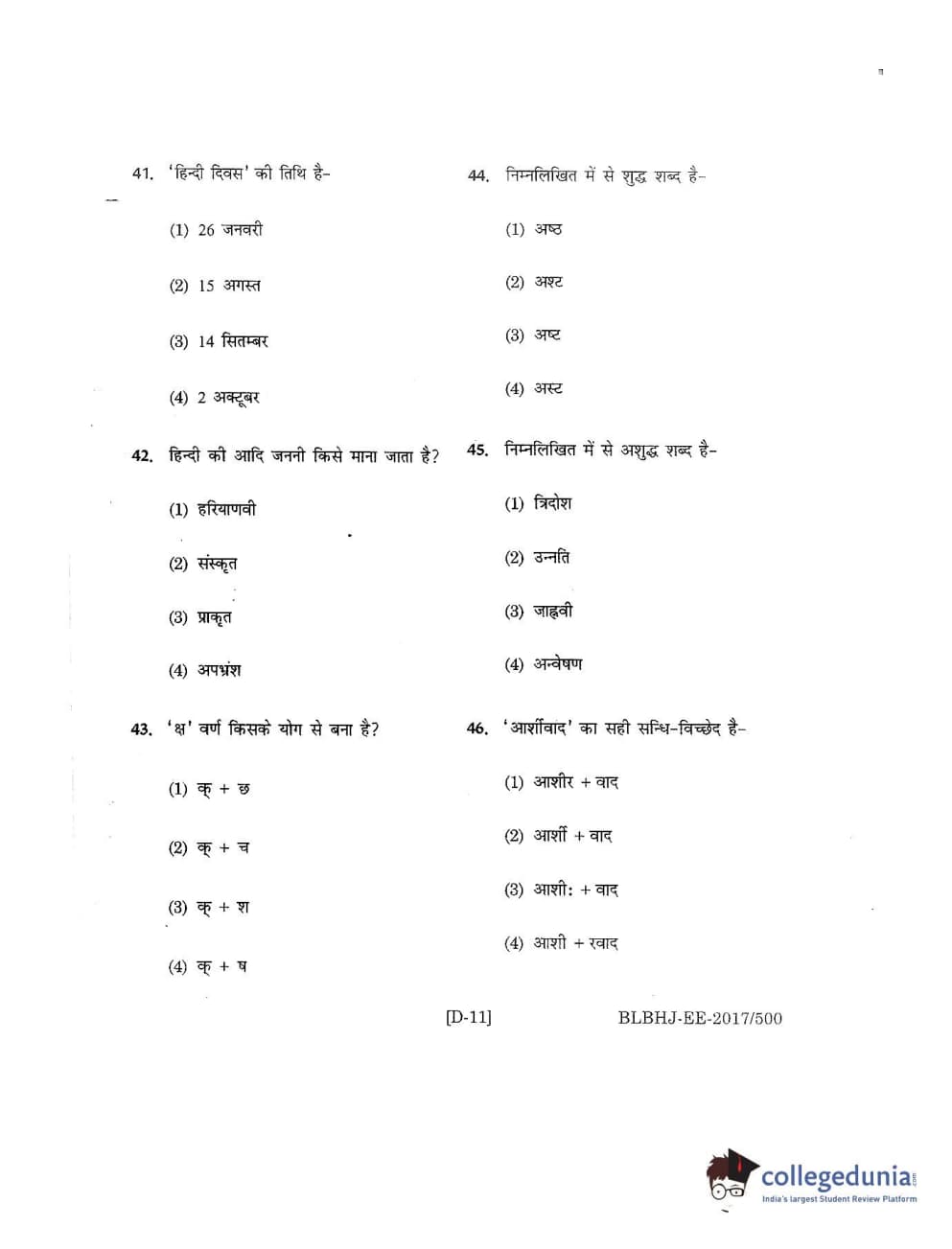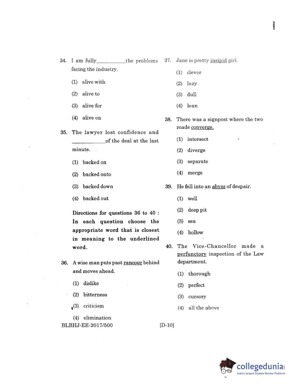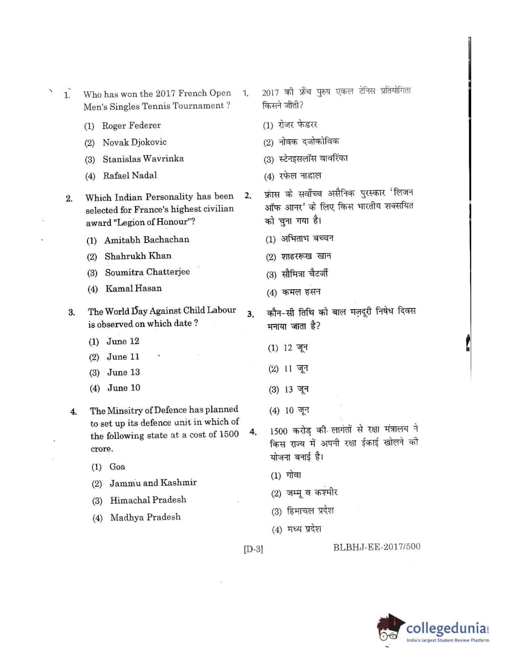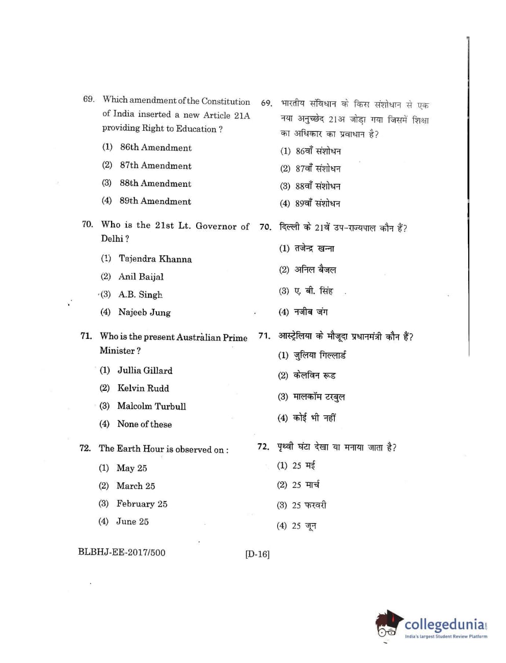 MDUCEE 2017 B.A. LL.B (Hons) 5 Years Integrated Set D Question Paper with Answer Key PDFs