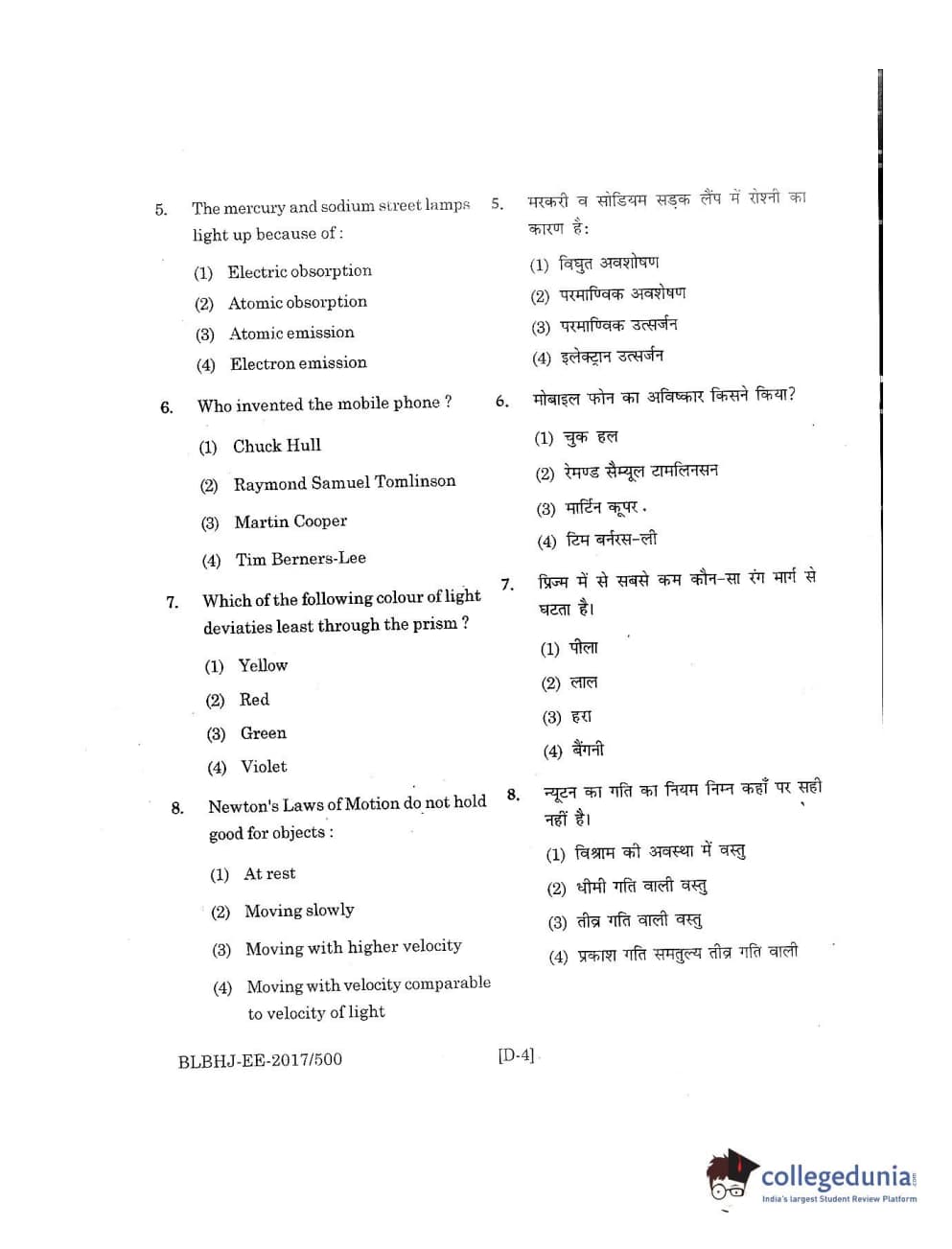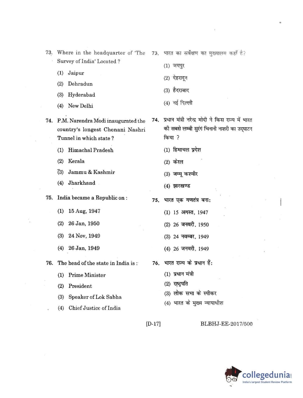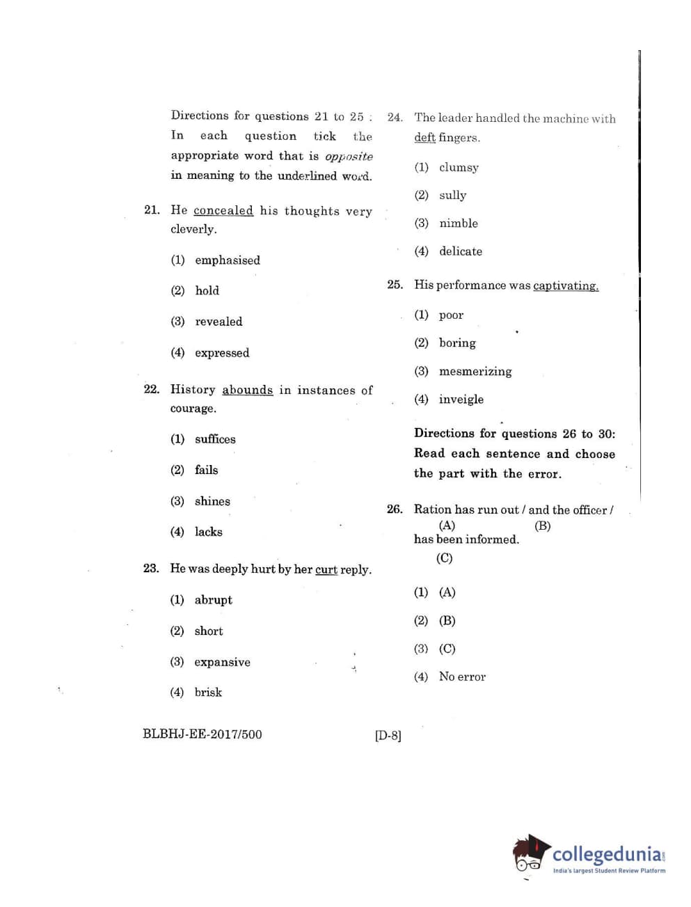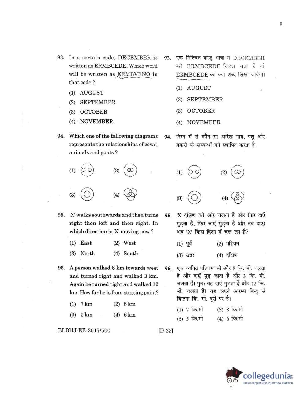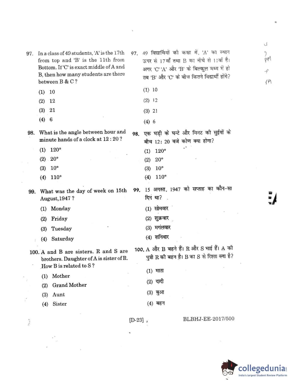 MDUCEE 2017 B.A. LL.B (Hons) 5 Years Integrated Set D Question Paper with Answer Key PDFs