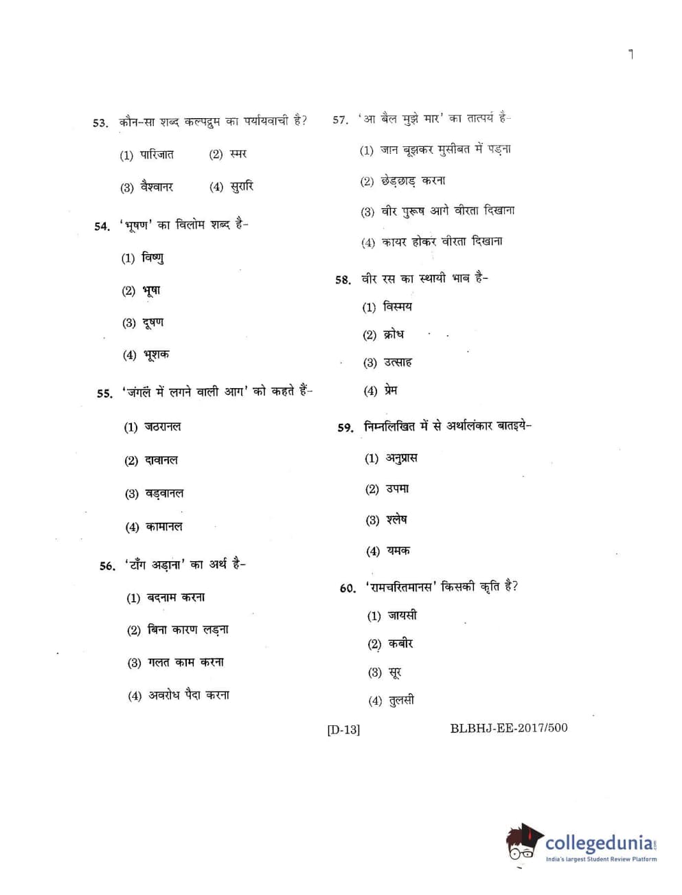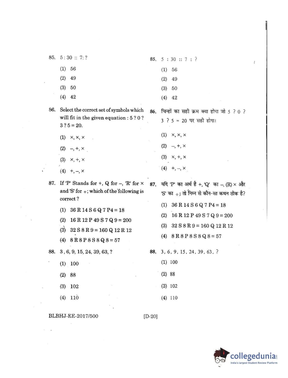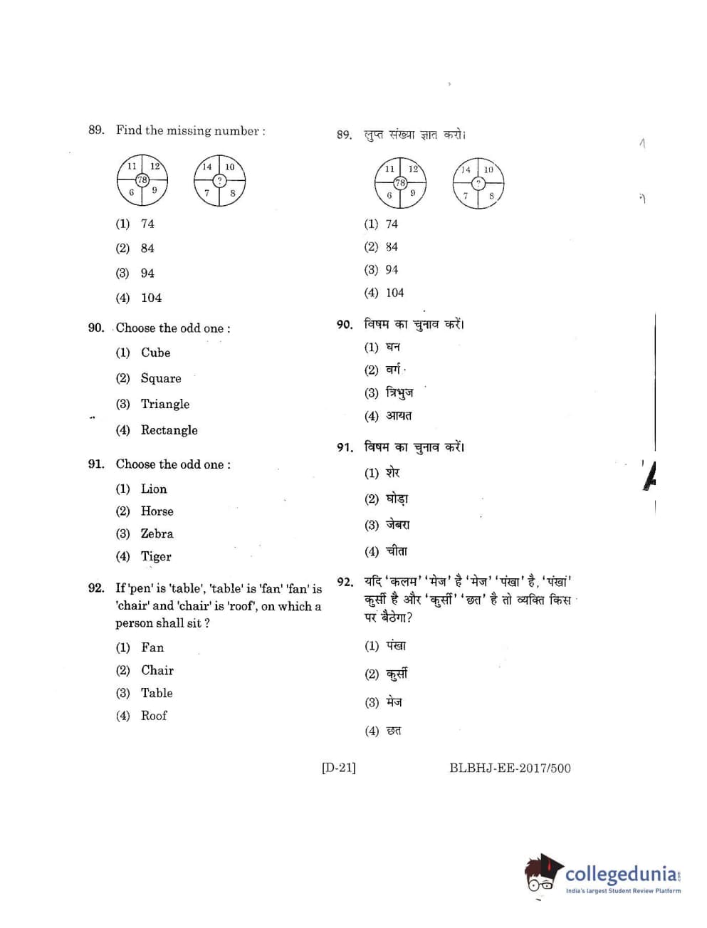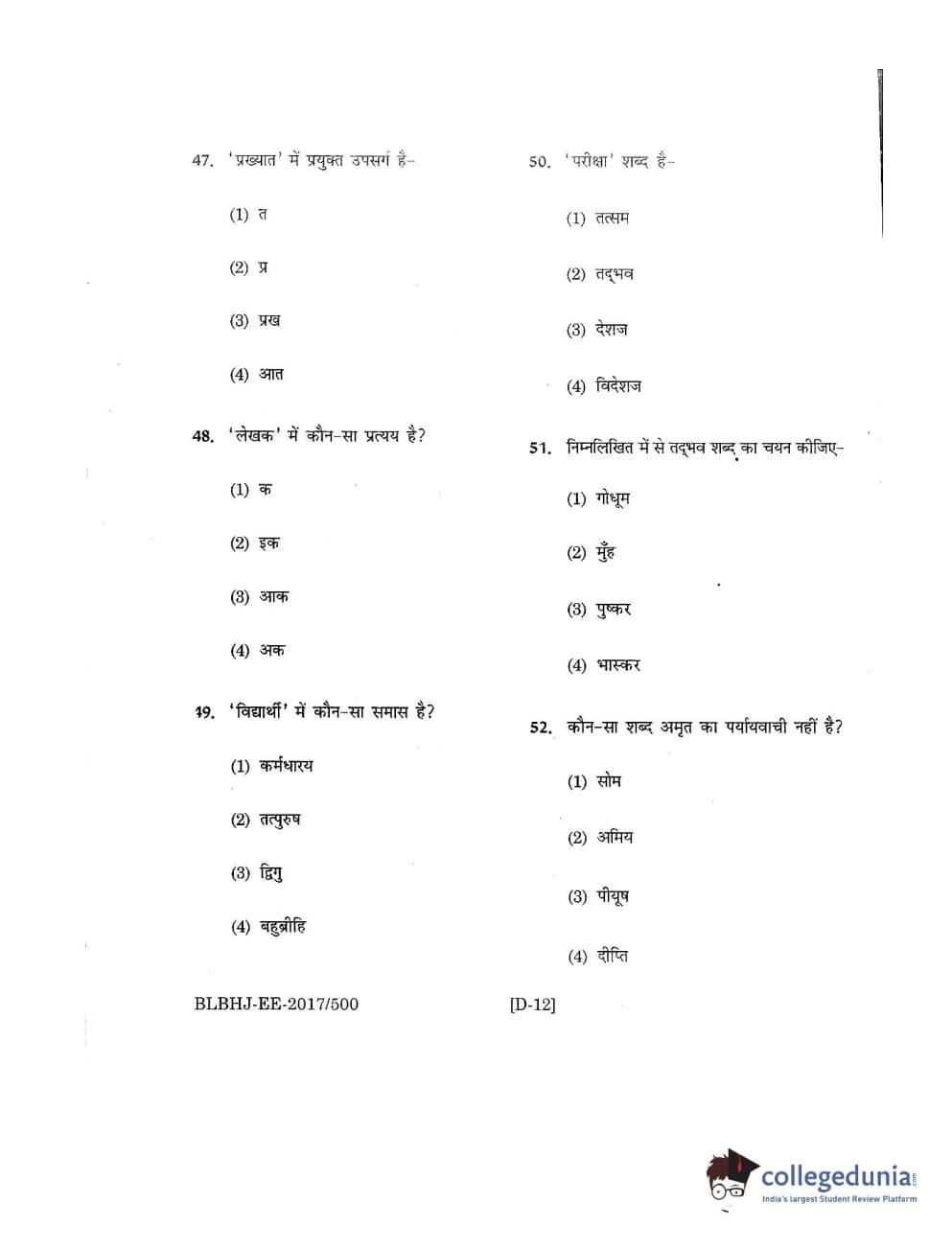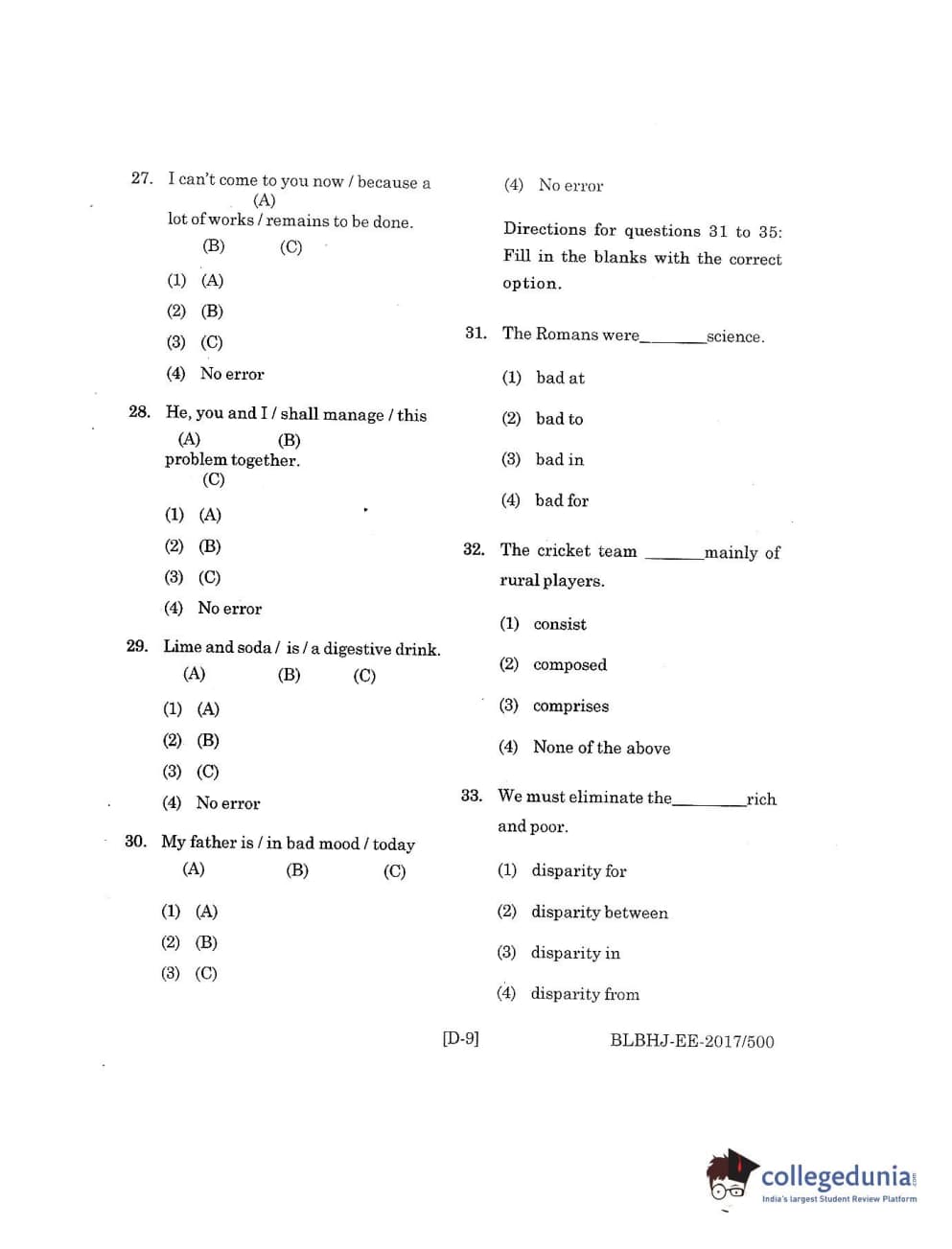 MDUCEE 2017 B.A. LL.B (Hons) 5 Years Integrated Set D Question Paper with Answer Key PDFs