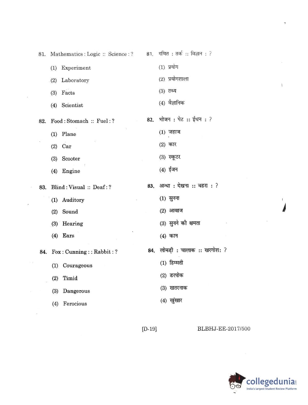 | MDUCEE 2017 B.A. LL.B (Hons) 5 Years Integrated Set D Question Paper PDF | MDUCEE 2017 B.A. LL.B (Hons) 5 Years Integrated Set D Answer Key PDF |