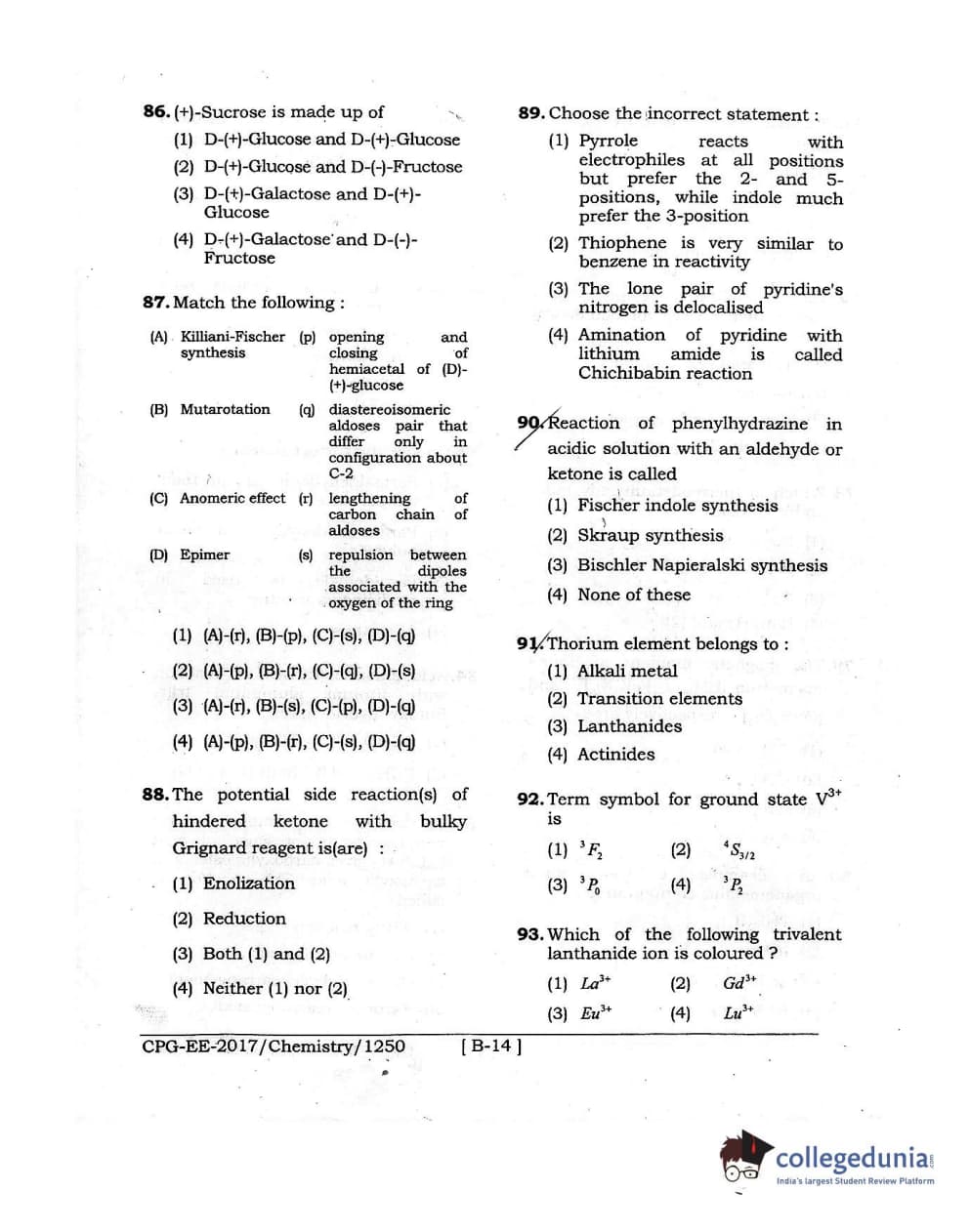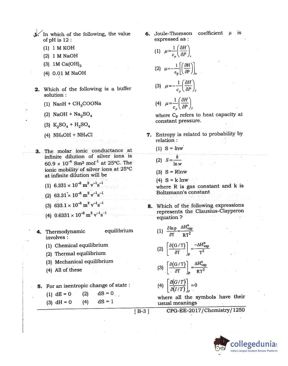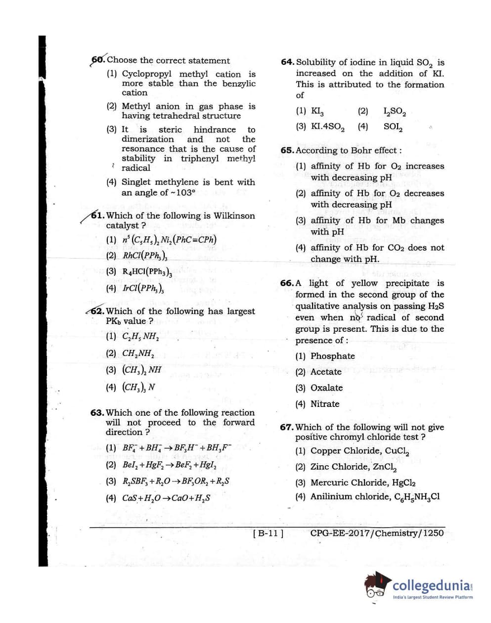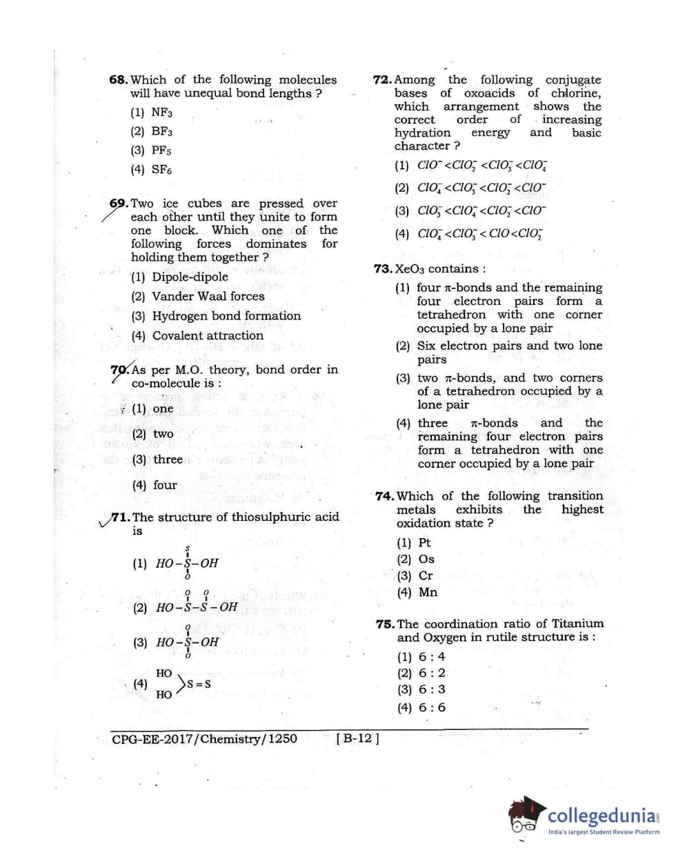 MDUCEE 2017 Chemistry Set B Question Paper with Answer Key PDFs