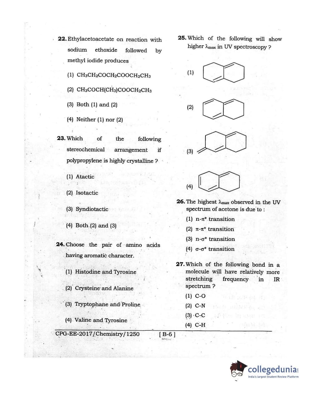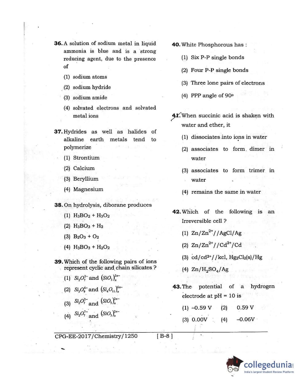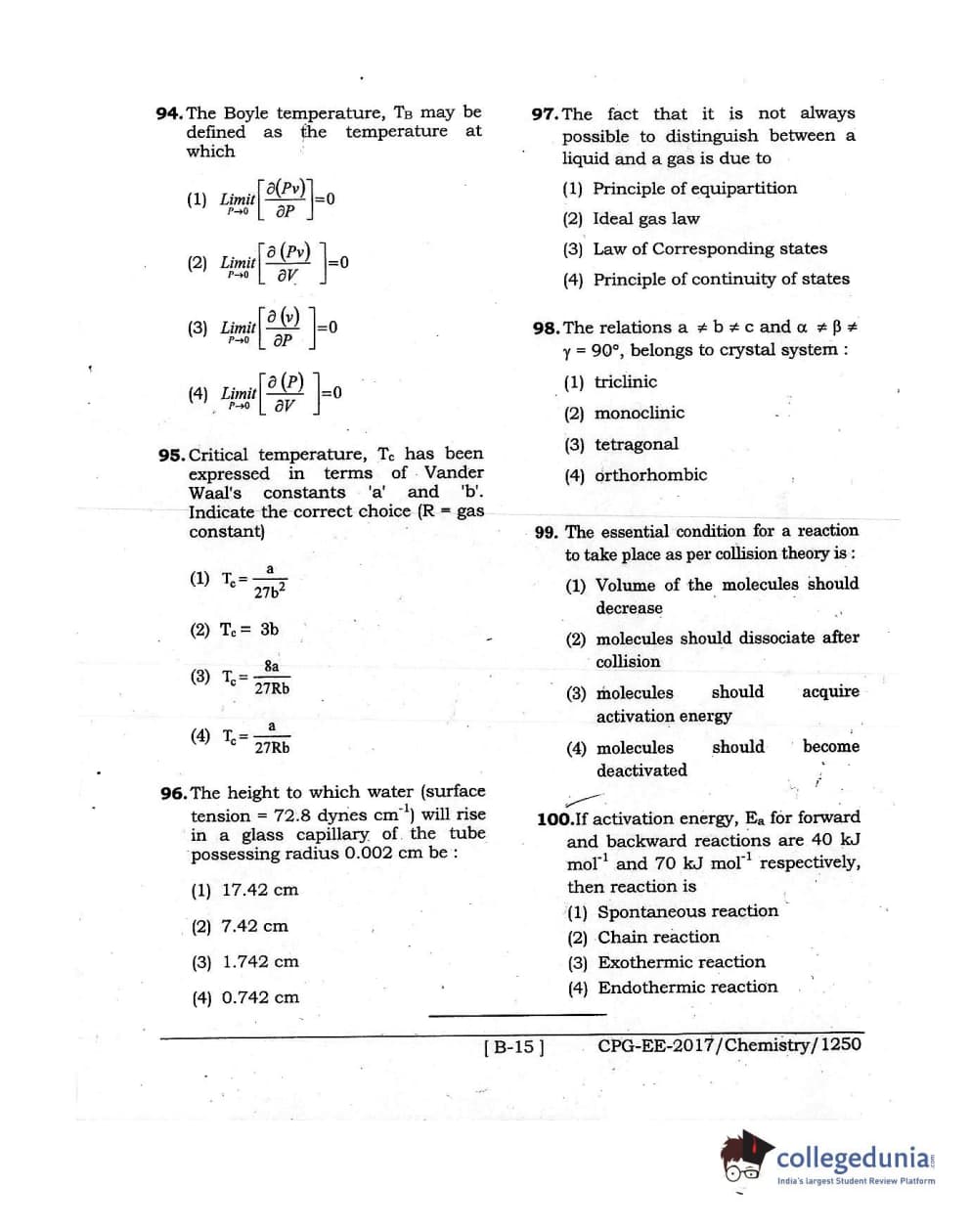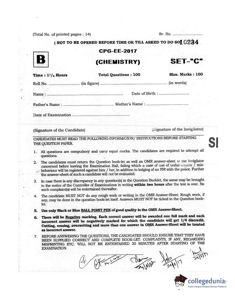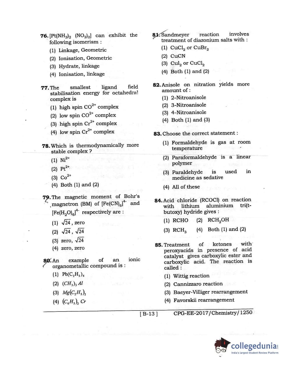MDUCEE 2017 Chemistry Set B Question Paper with Answer Key PDFs