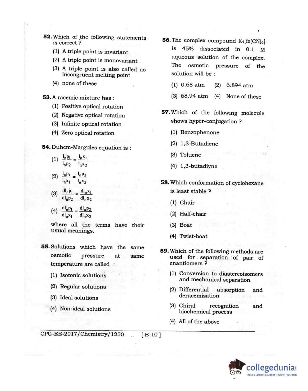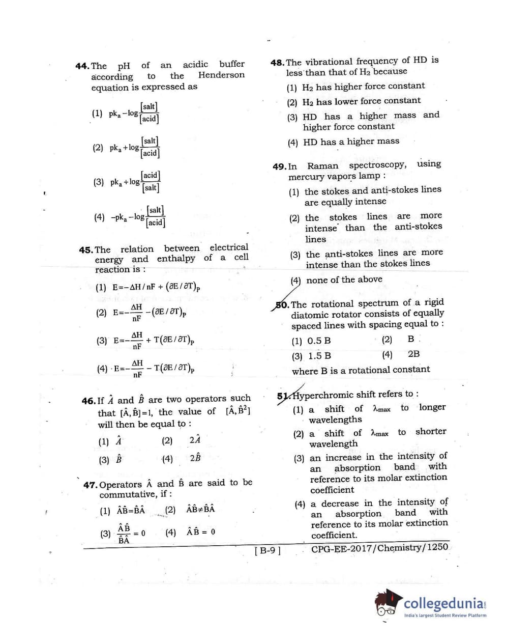 MDUCEE 2017 Chemistry Set B Question paper with answer key pdf is available for download. The exam was successfully organized by Maharishi Dayanand University. The question paper comprised a total of 100 questions.