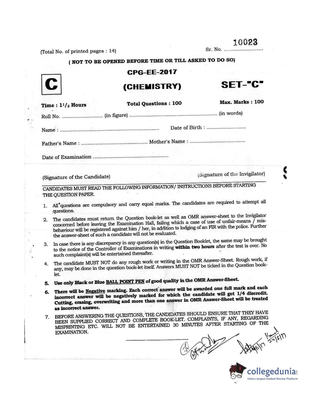 | MDUCEE 2017 Chemistry Set C Question Paper PDF | MDUCEE 2017 Chemistry Set C Answer Key PDF |