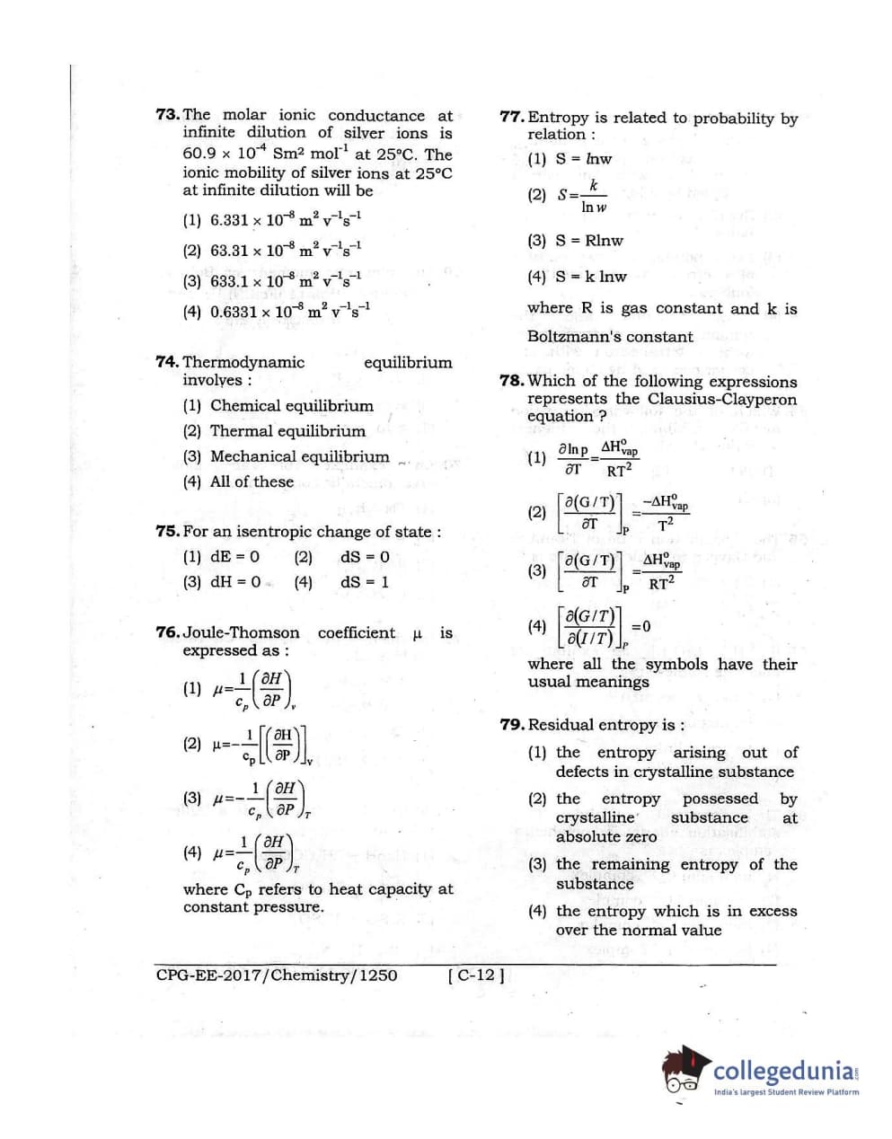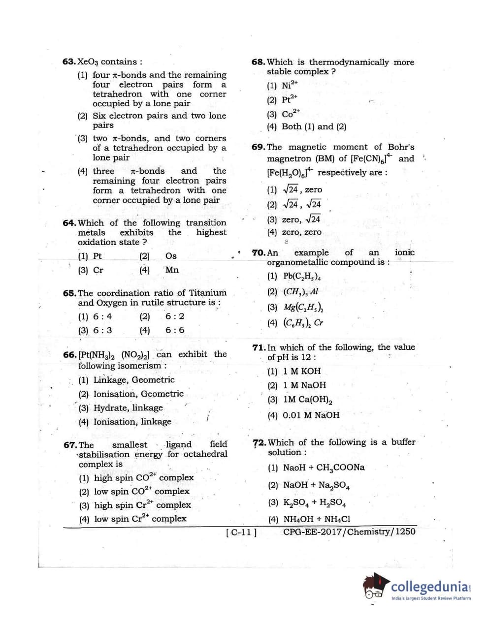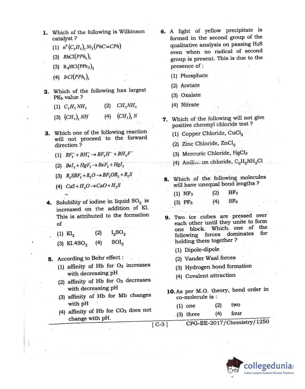 MDUCEE 2017 Chemistry Set C Question Paper with Answer Key PDFs