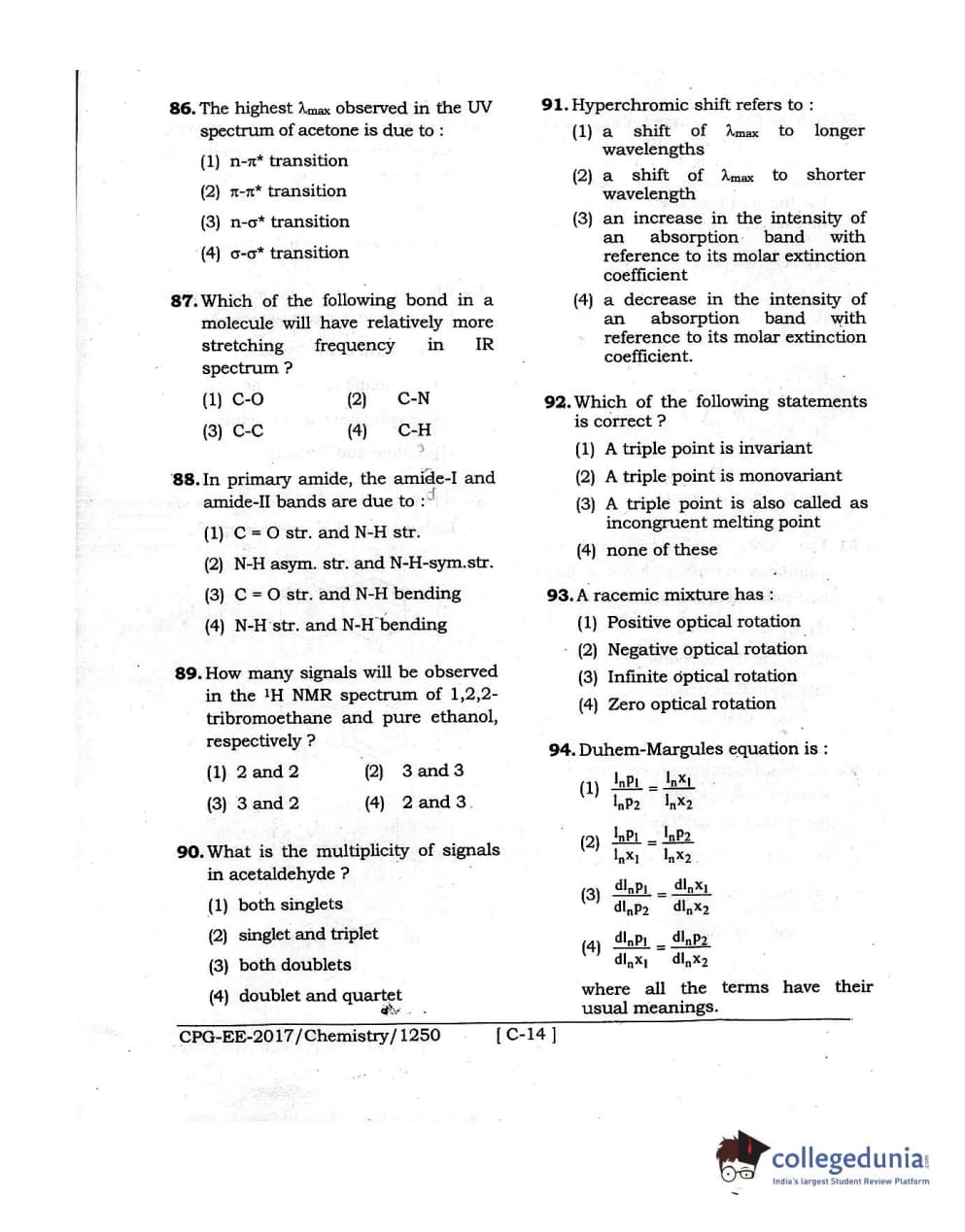 MDUCEE 2017 Chemistry Set C Question paper with answer key pdf is available for download. The exam was successfully organized by Maharishi Dayanand University. The question paper comprised a total of 100 questions.