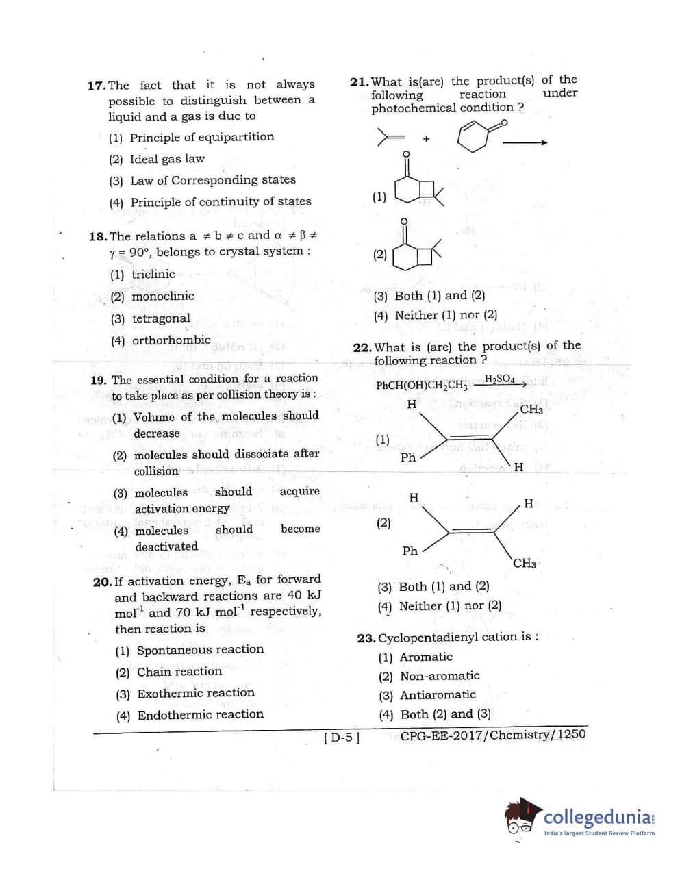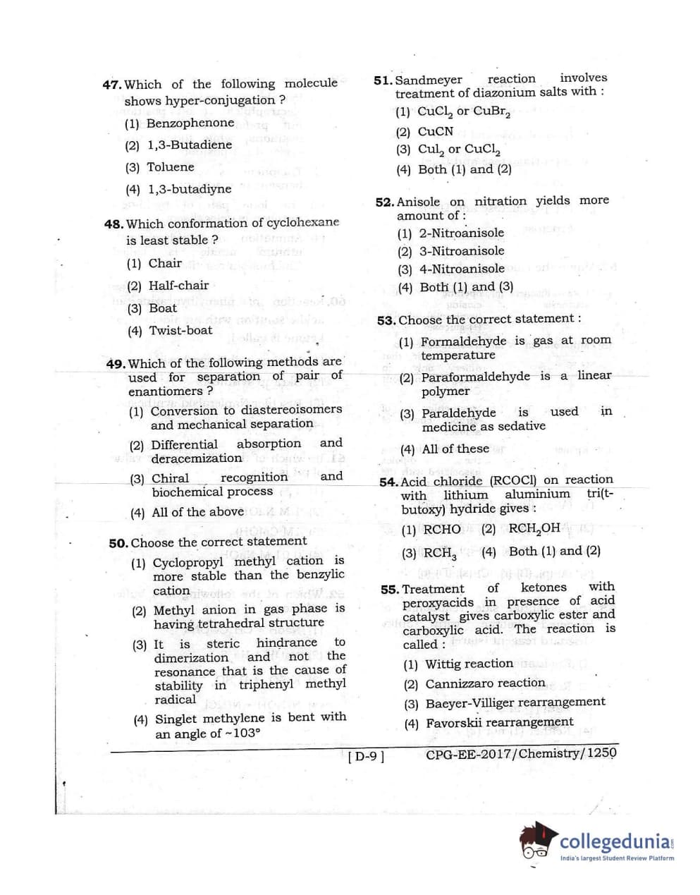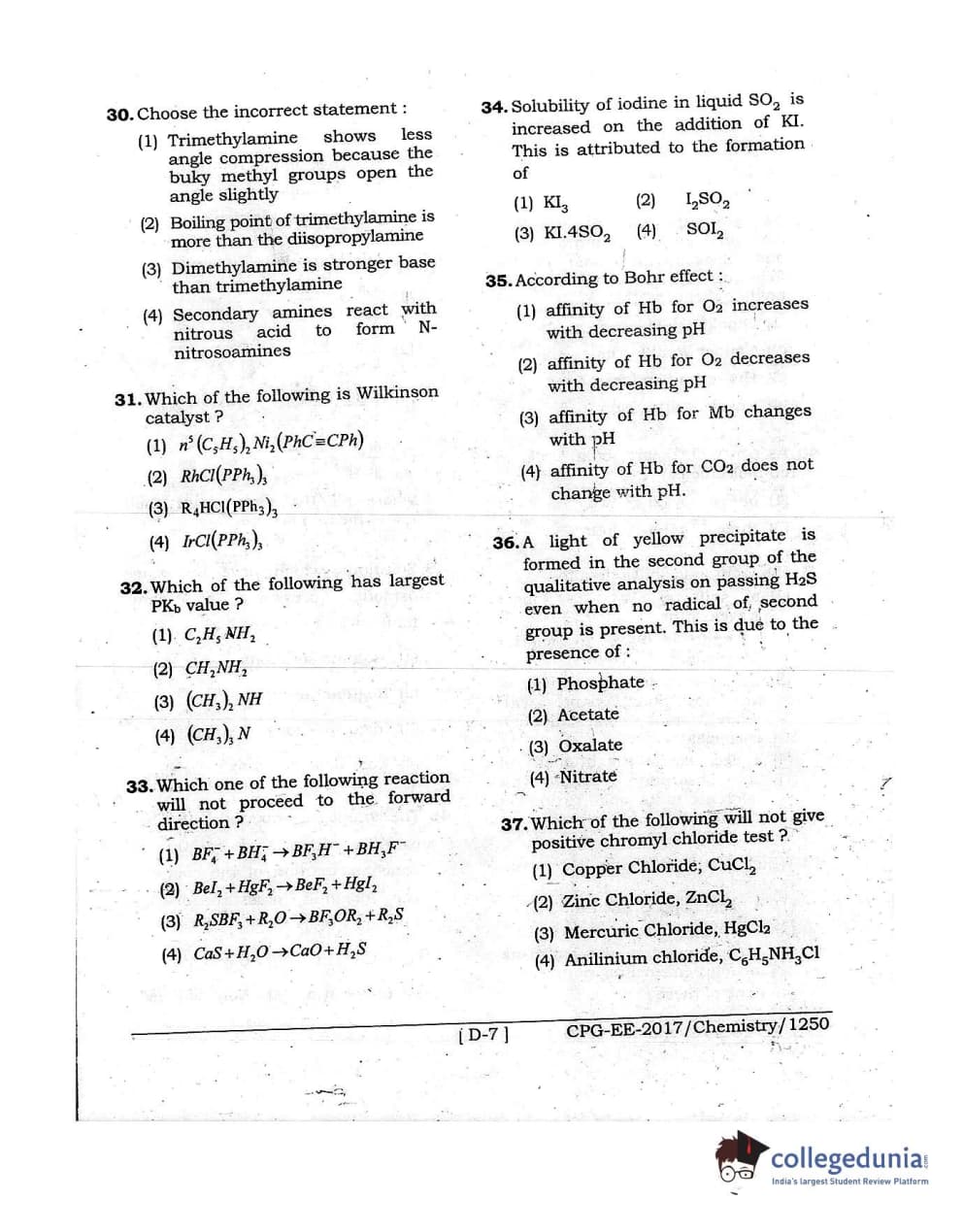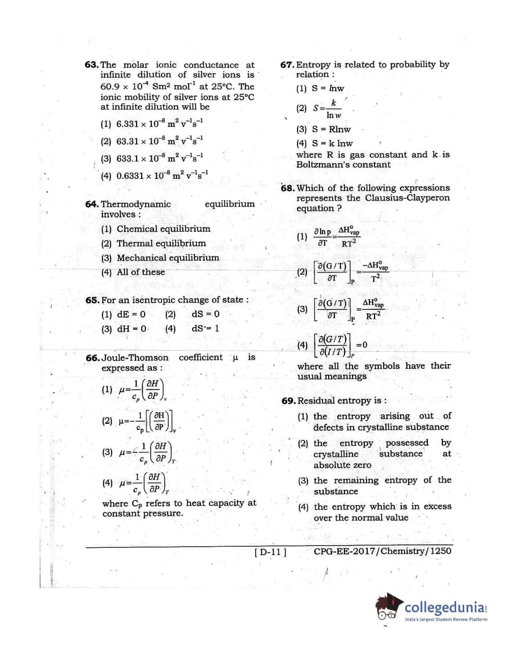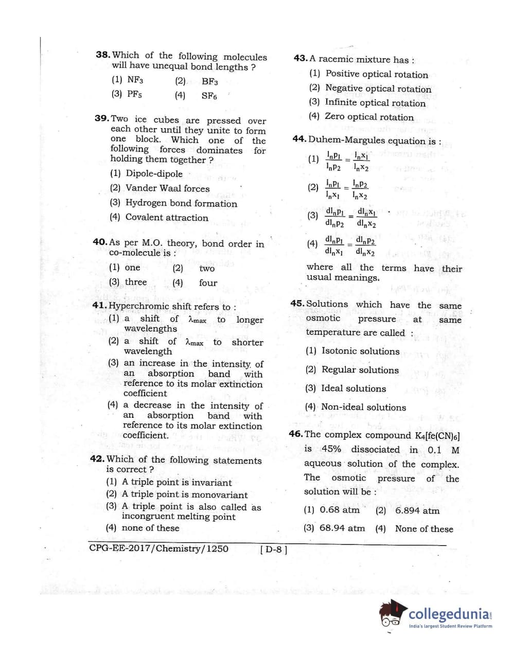 MDUCEE 2017 Chemistry Set D Question Paper with Answer Key PDFs
