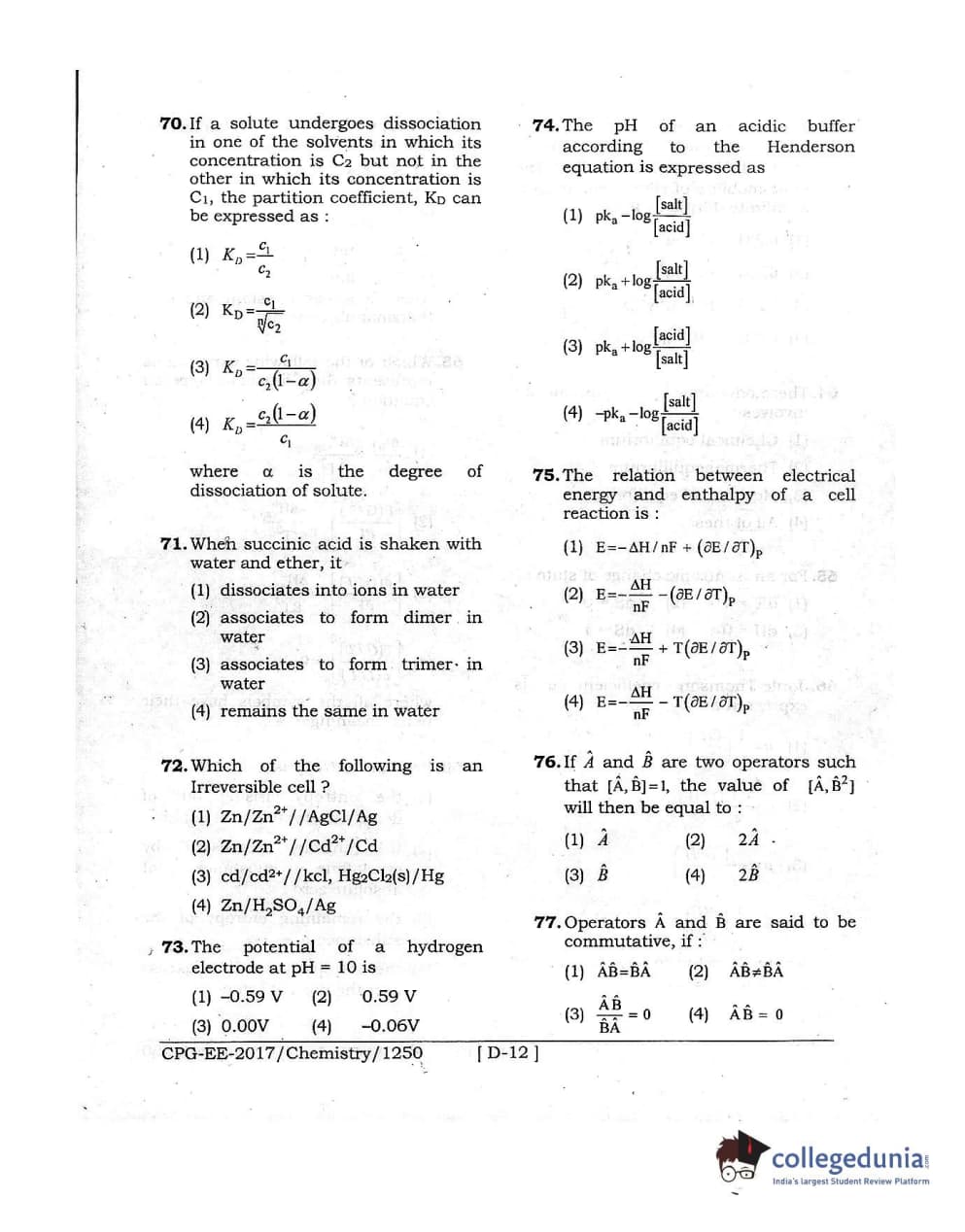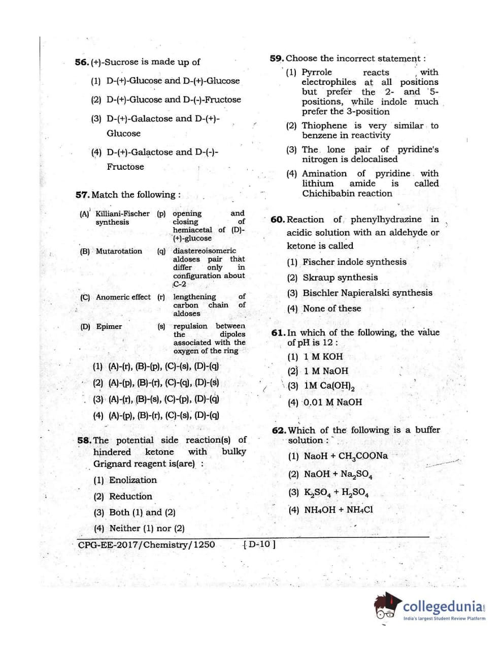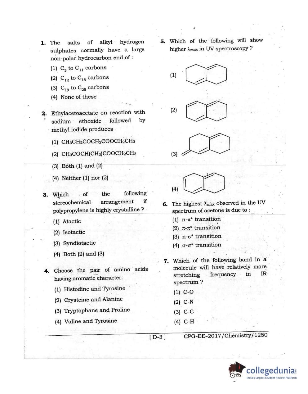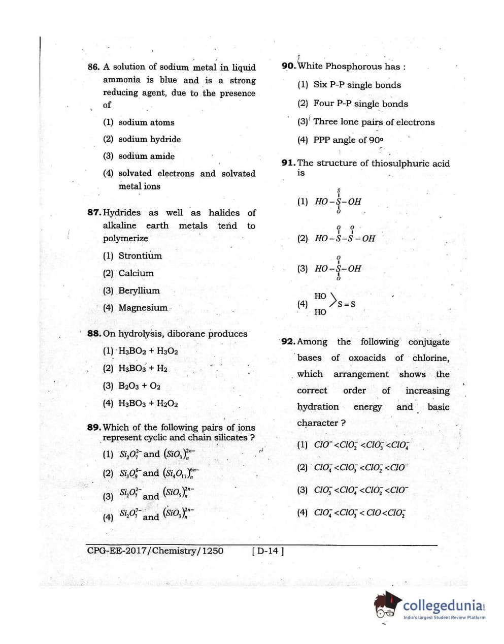 MDUCEE 2017 Chemistry Set D Question Paper with Answer Key PDFs
