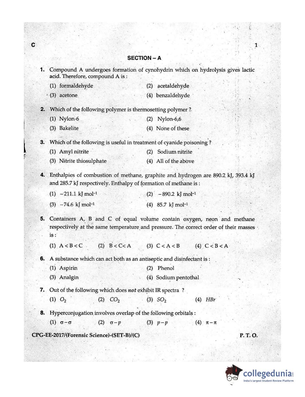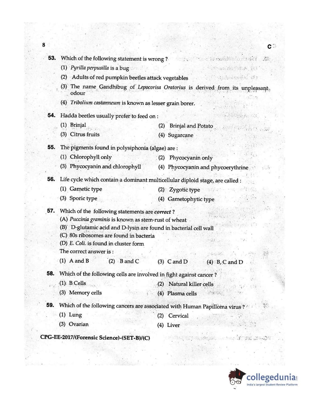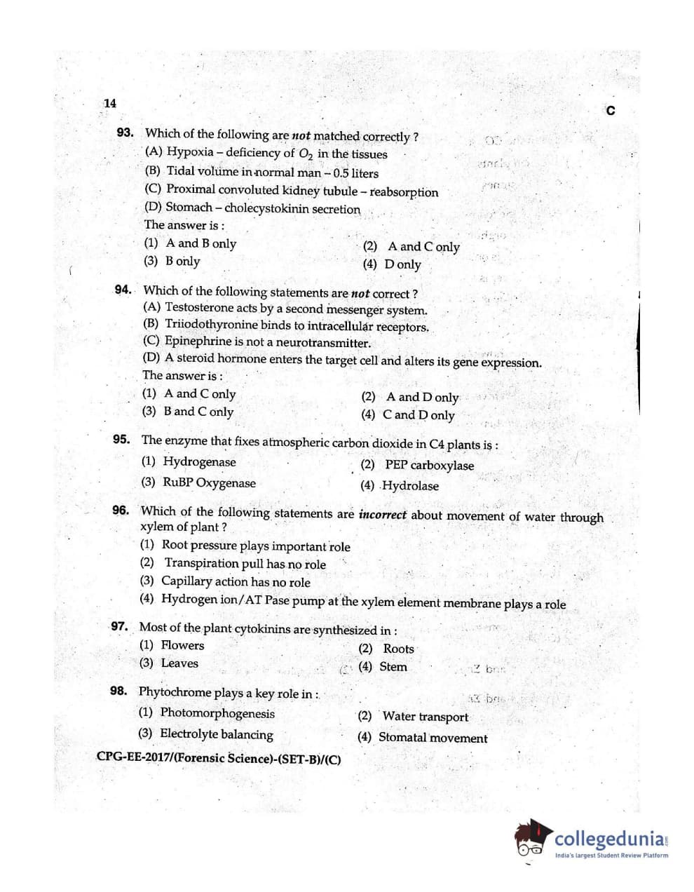 | MDUCEE 2017 Forensic Science Set C Question Paper PDF | MDUCEE 2017 Forensic Science Set C Answer Key PDF |
