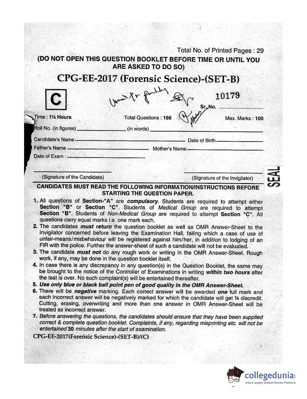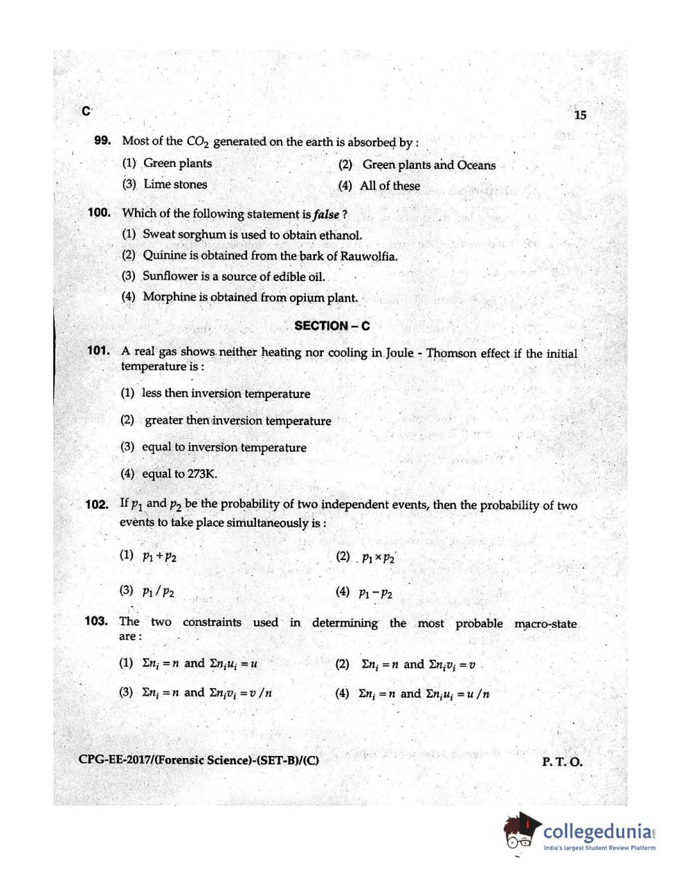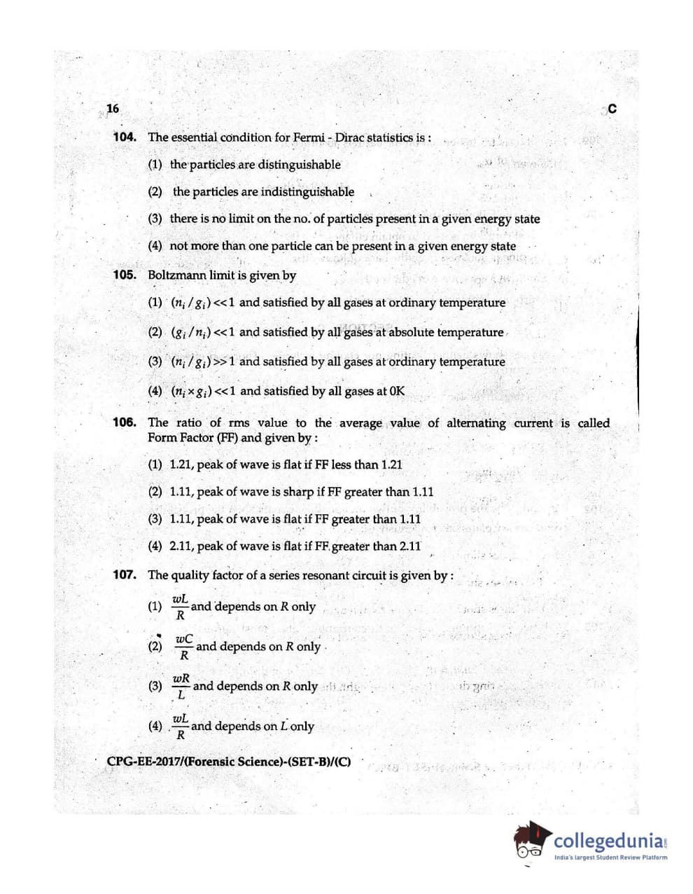 | MDUCEE 2017 Forensic Science Set C Question Paper PDF | MDUCEE 2017 Forensic Science Set C Answer Key PDF |