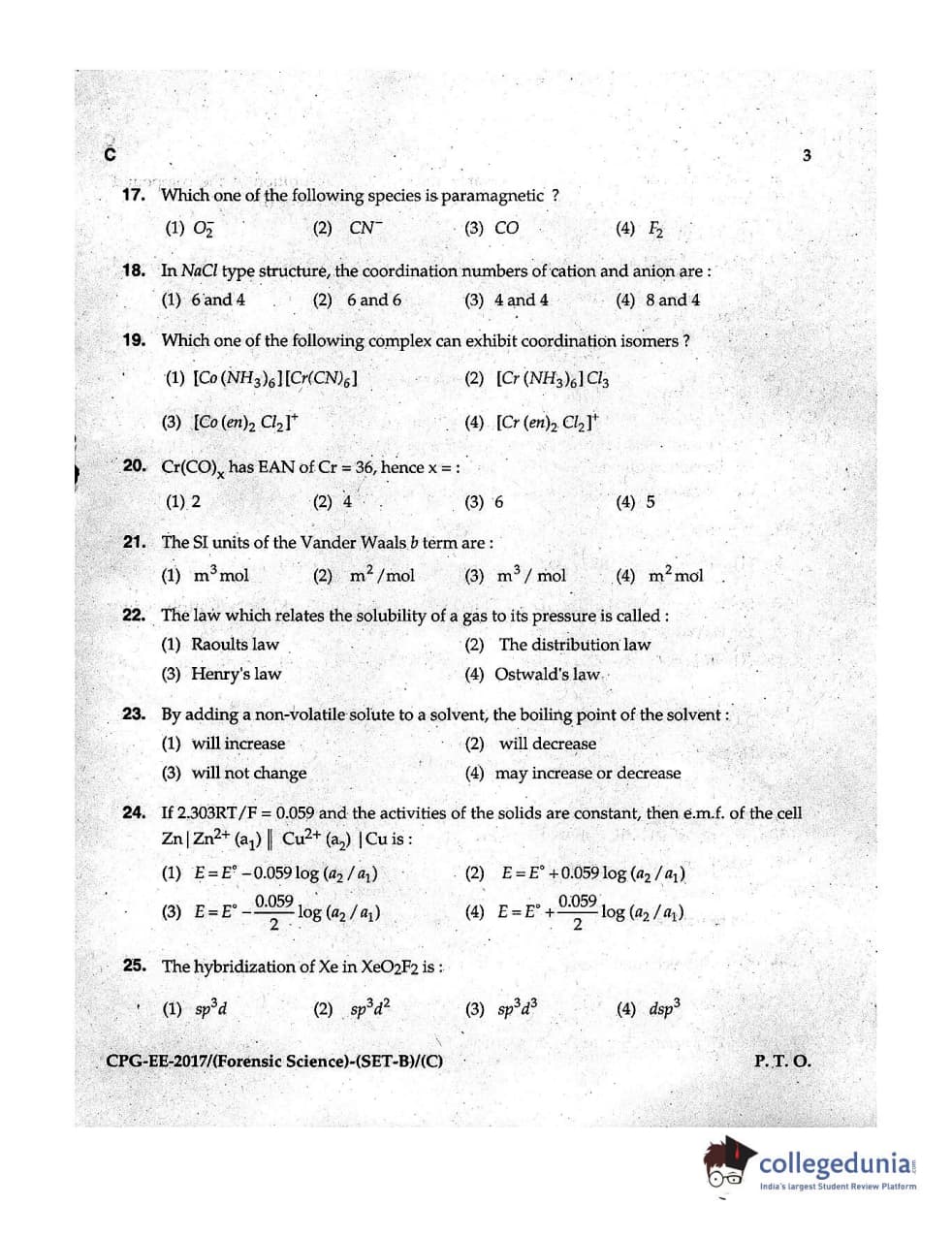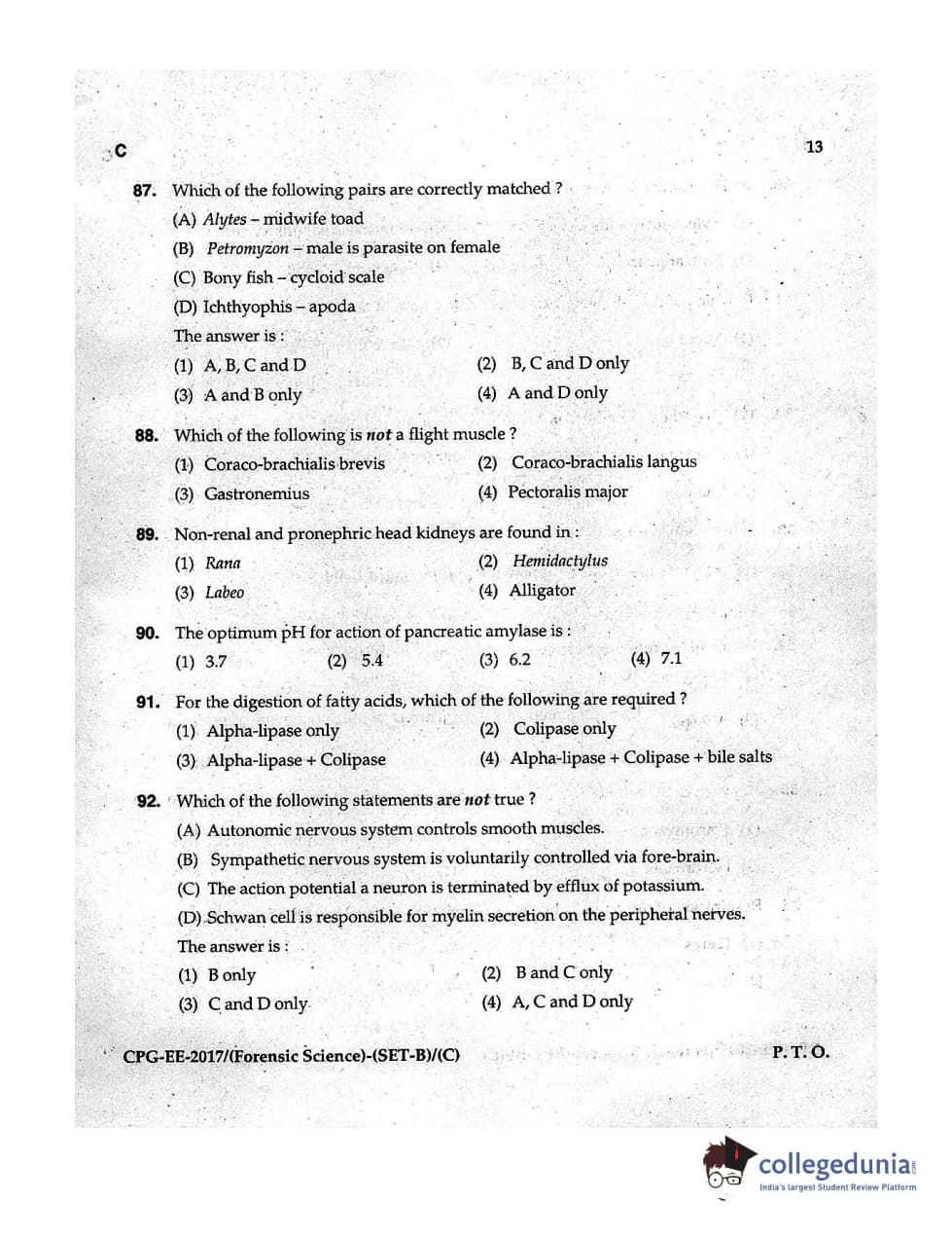 MDUCEE 2017 Forensic Science Set C Question Paper with Answer Key PDFs